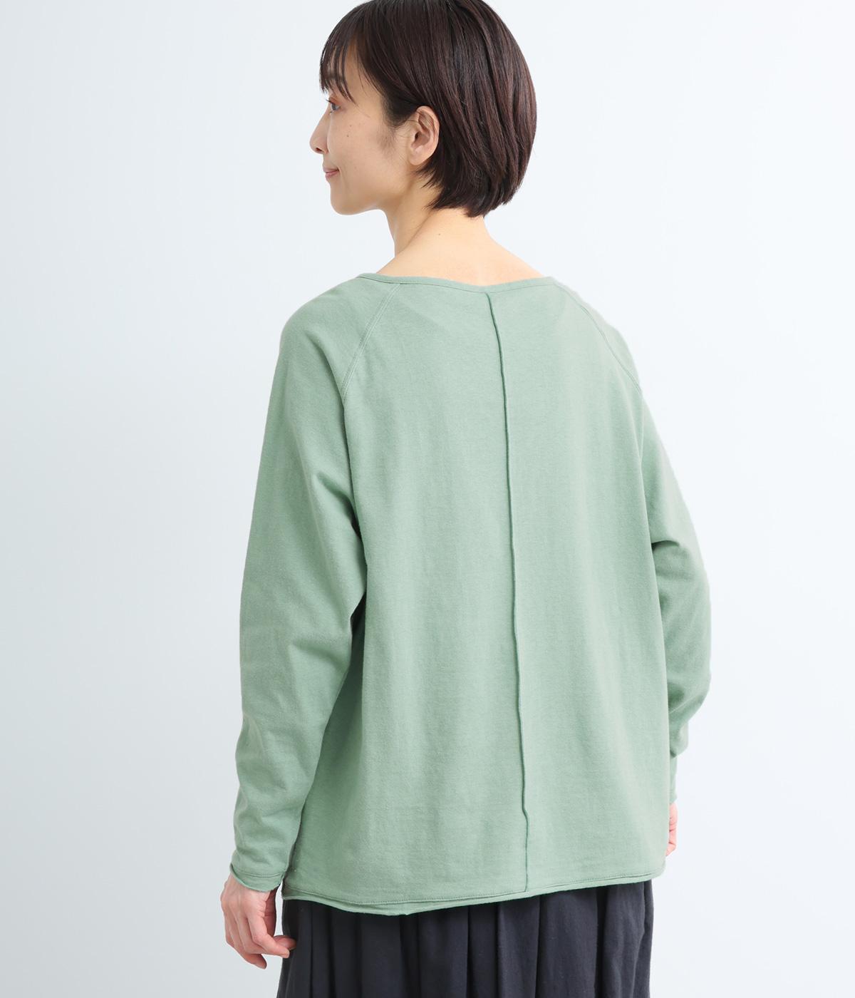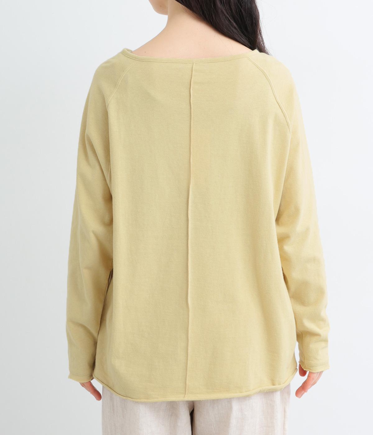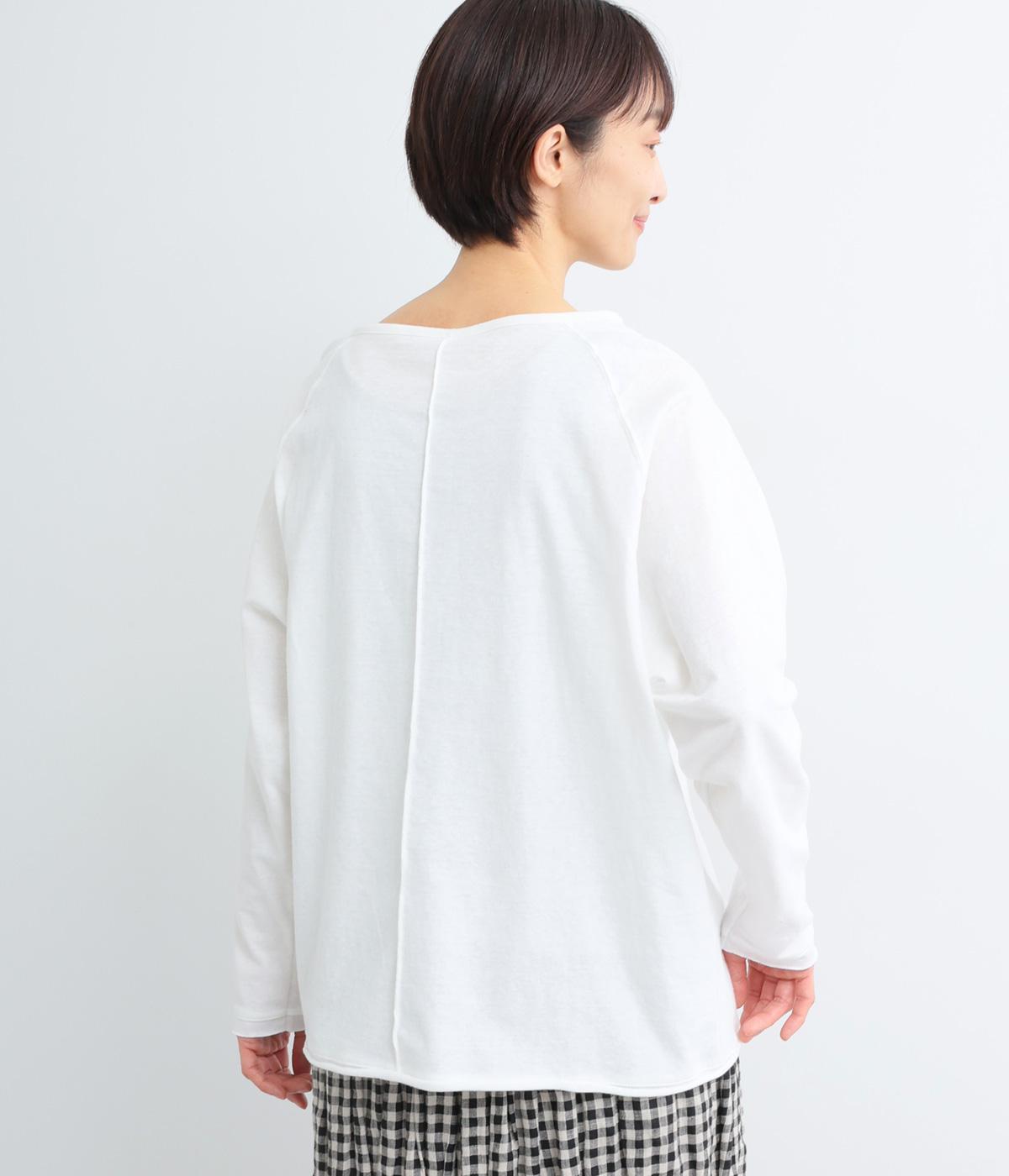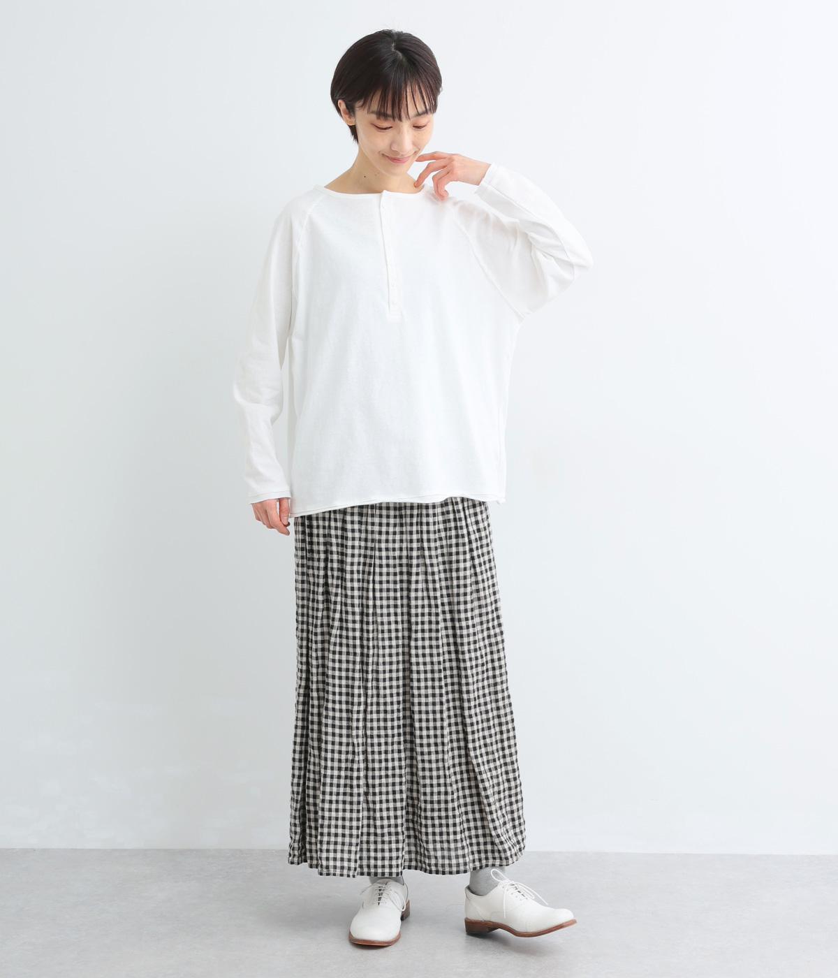 カジュアルな印象のヘンリーネックTシャツを、ニュアンスのある素材で仕立てました。肩まわりを華奢に見せるラグランスリーブがラフな風合いを中和し、大人の装いになじみます。背中の切り替えラインもさりげなくアクセントを添えています。