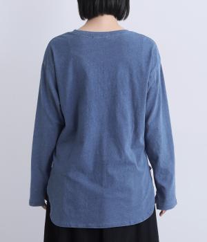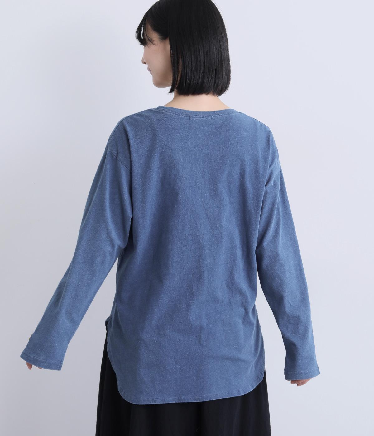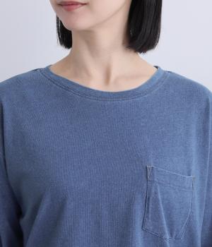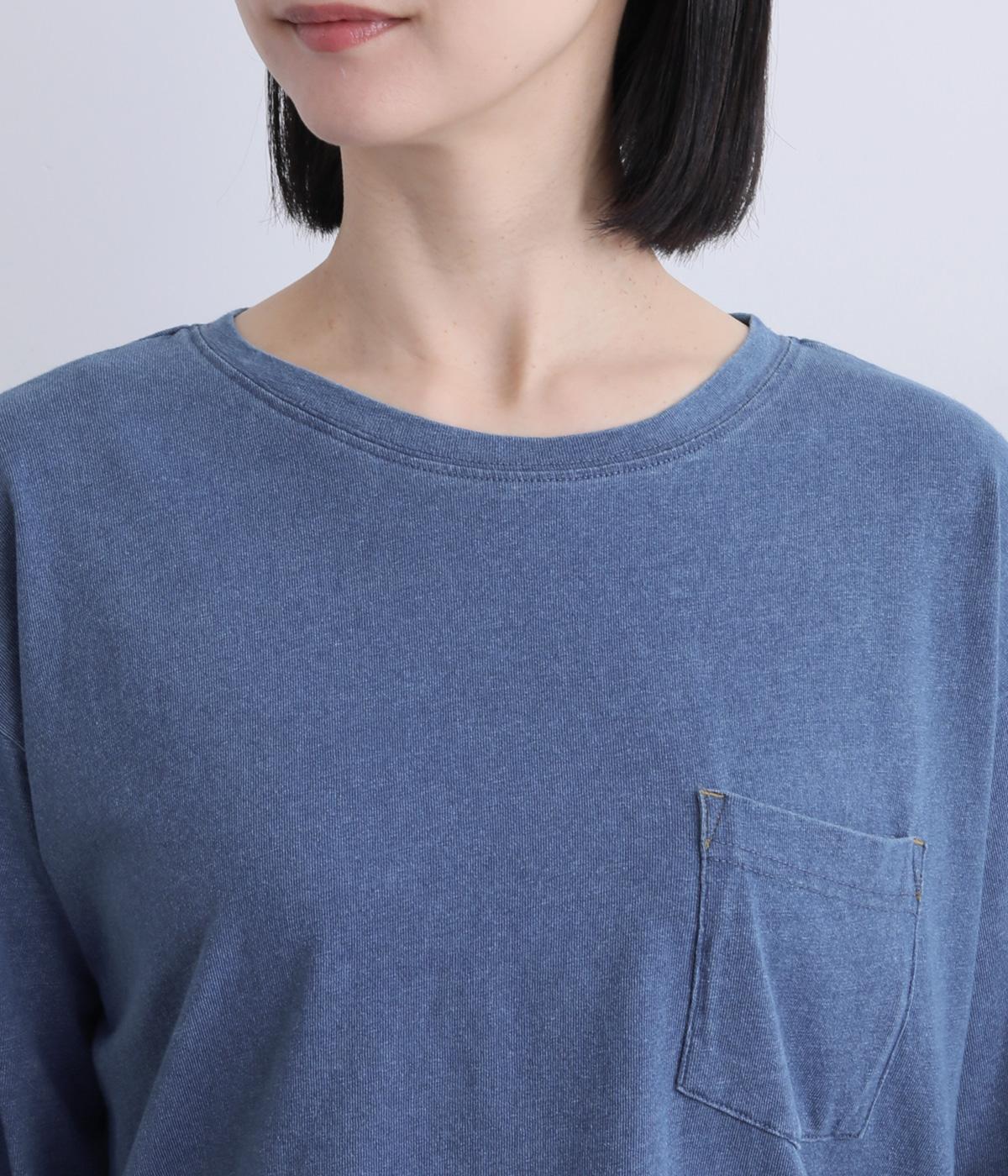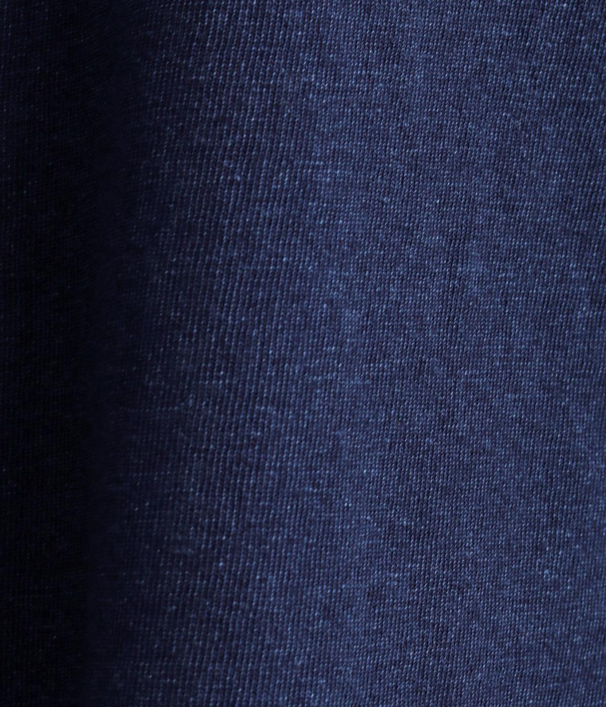 ソフトでやわらかく肌あたり抜群なコットン天竺。インディゴ染めをほどこすことで深みが増し、色落ちによるエイジングも魅力のひとつ。