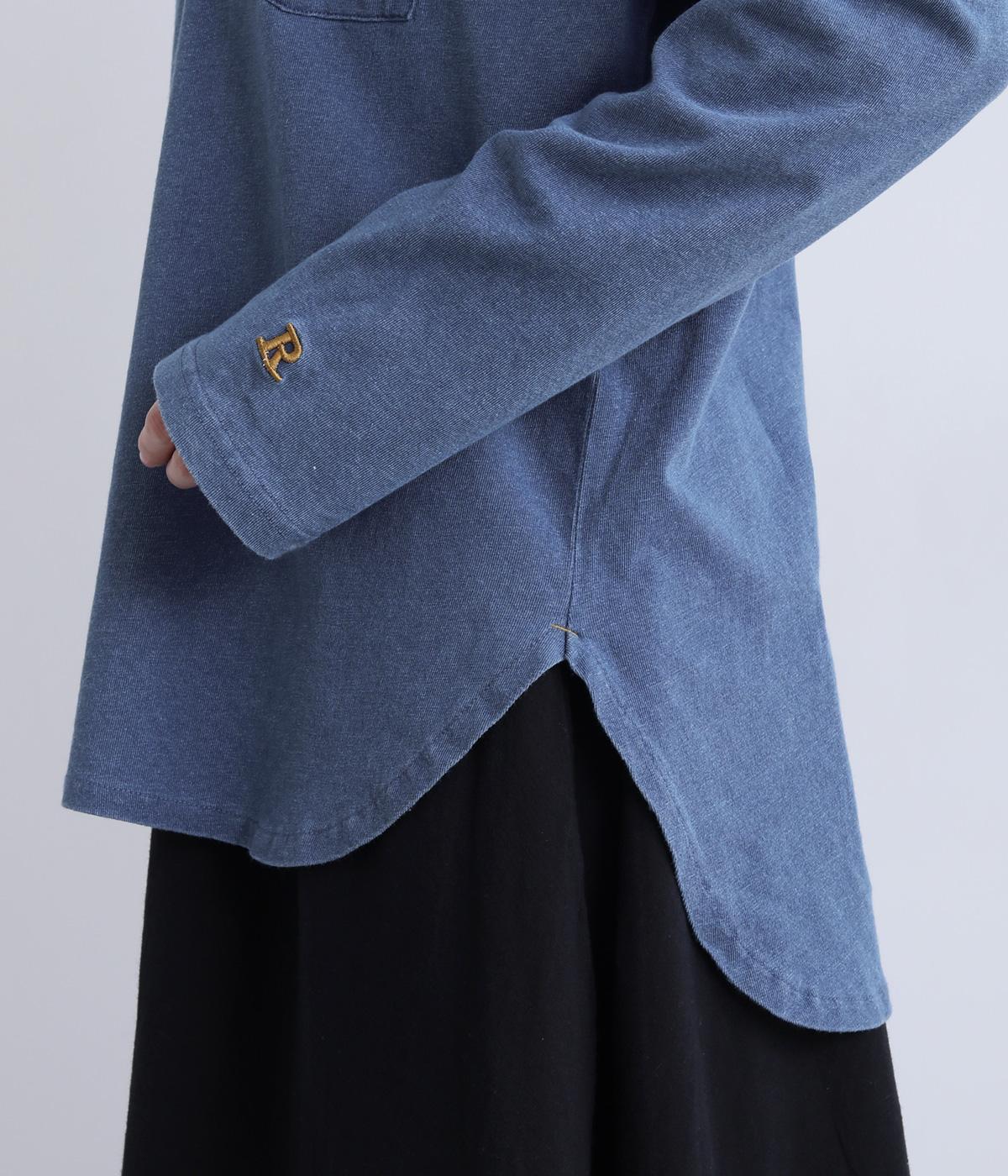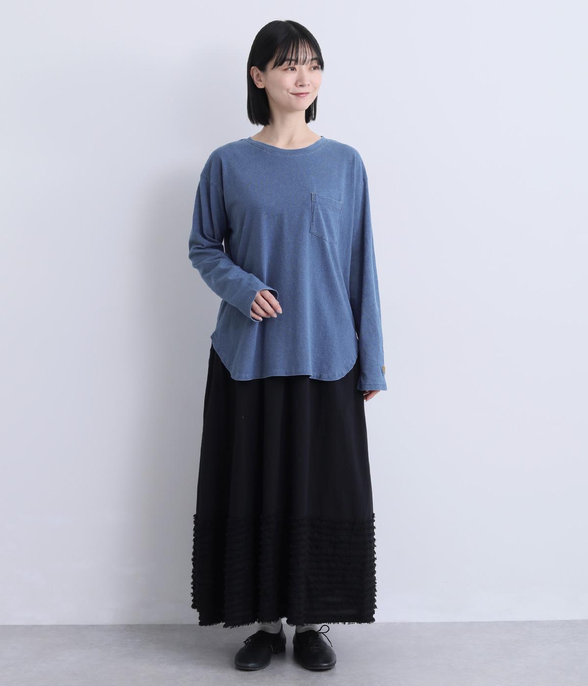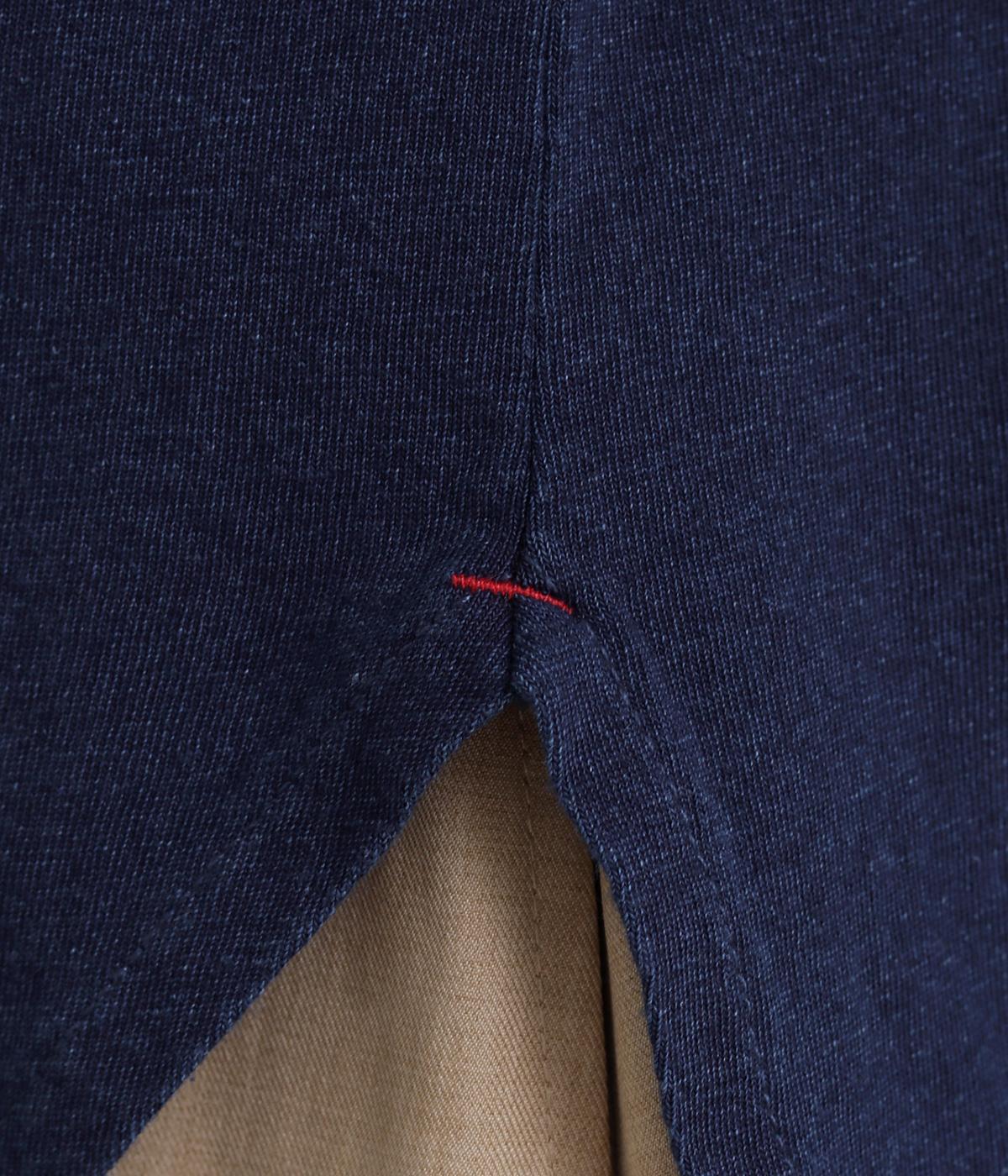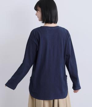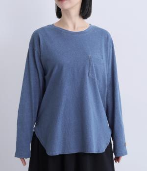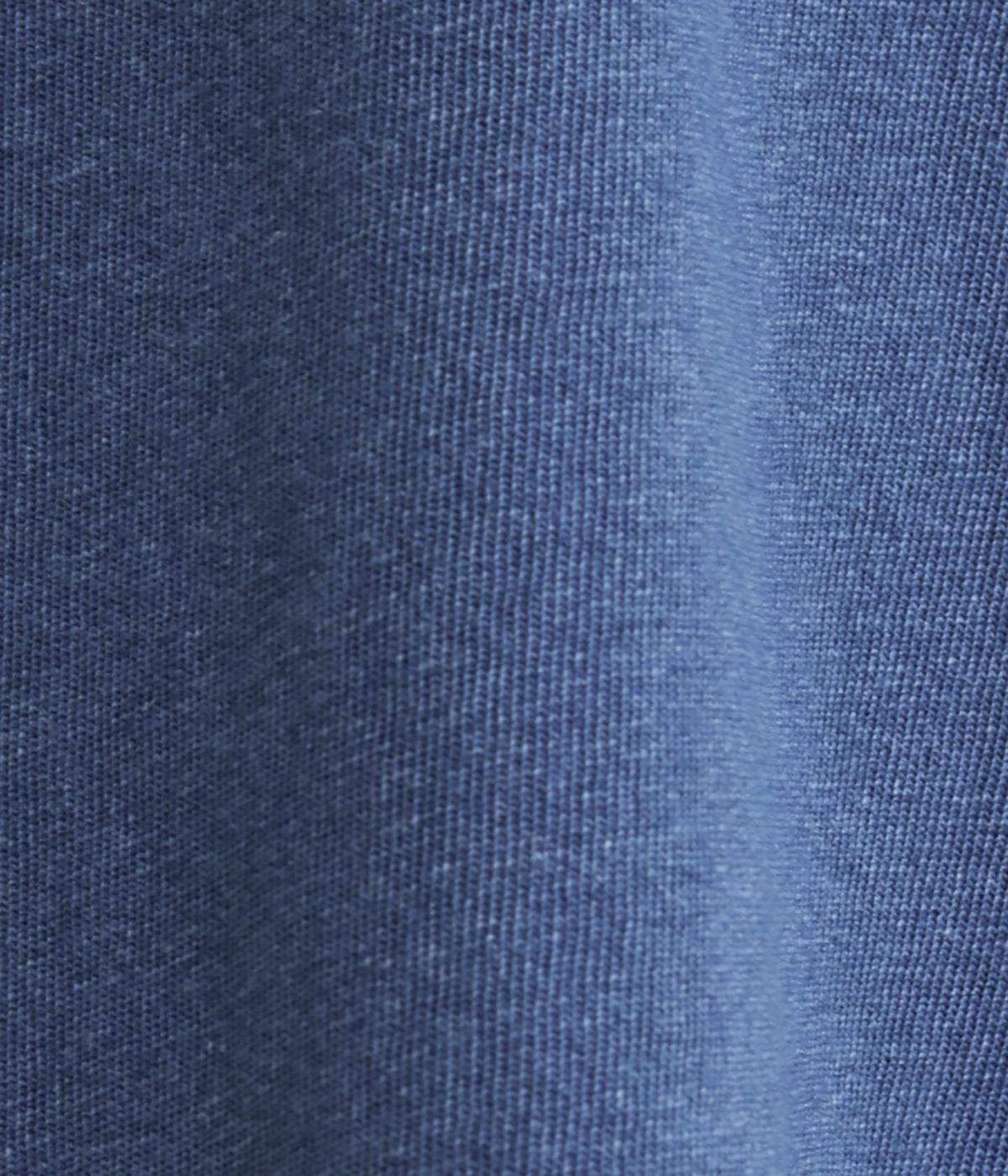 ソフトでやわらかく肌あたり抜群なコットン天竺。インディゴ染めをほどこすことで深みが増し、色落ちによるエイジングも魅力のひとつ。
