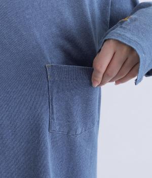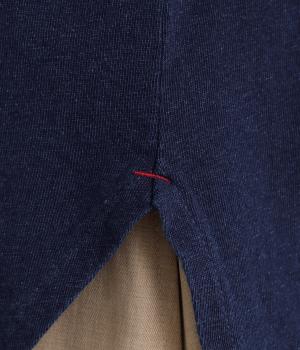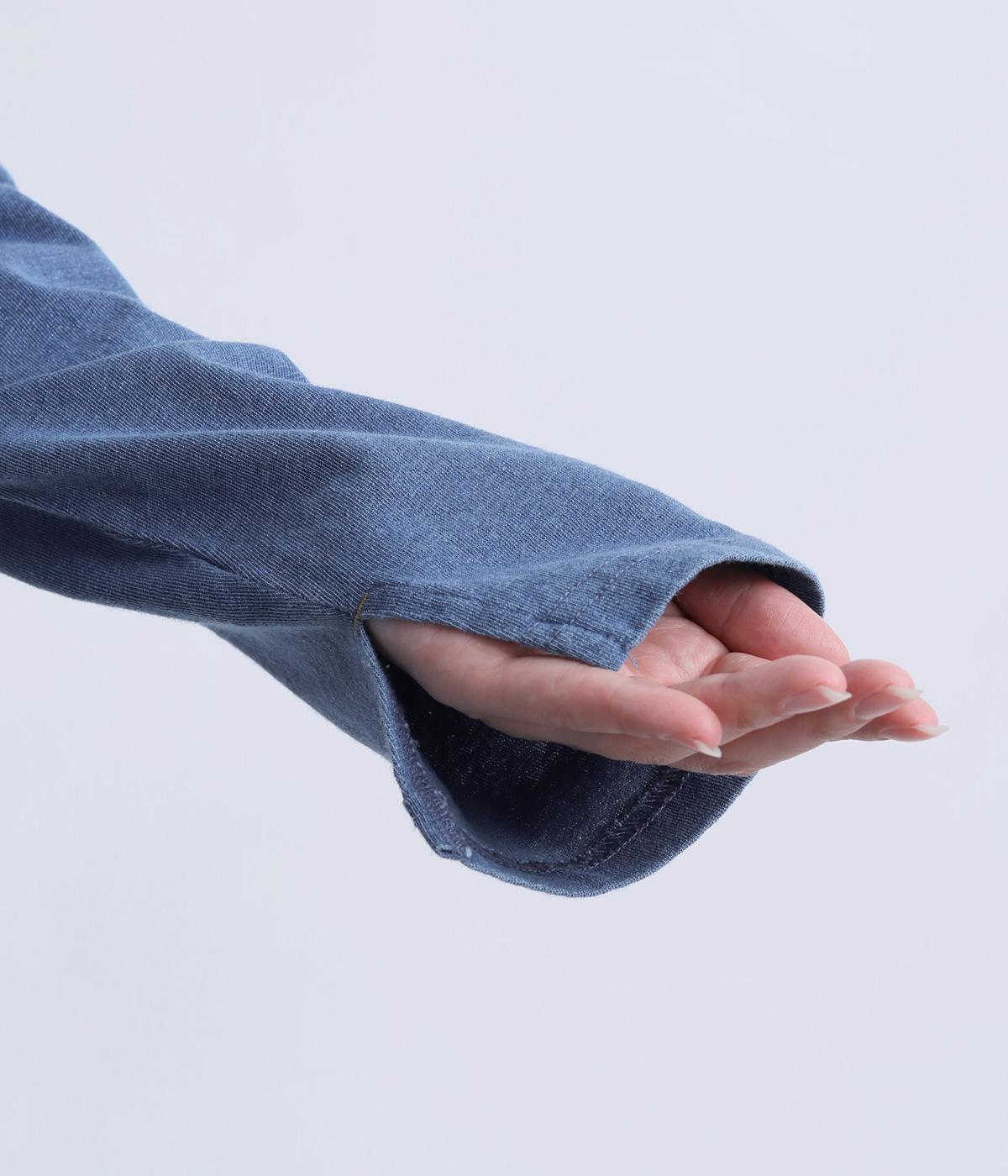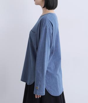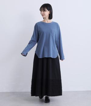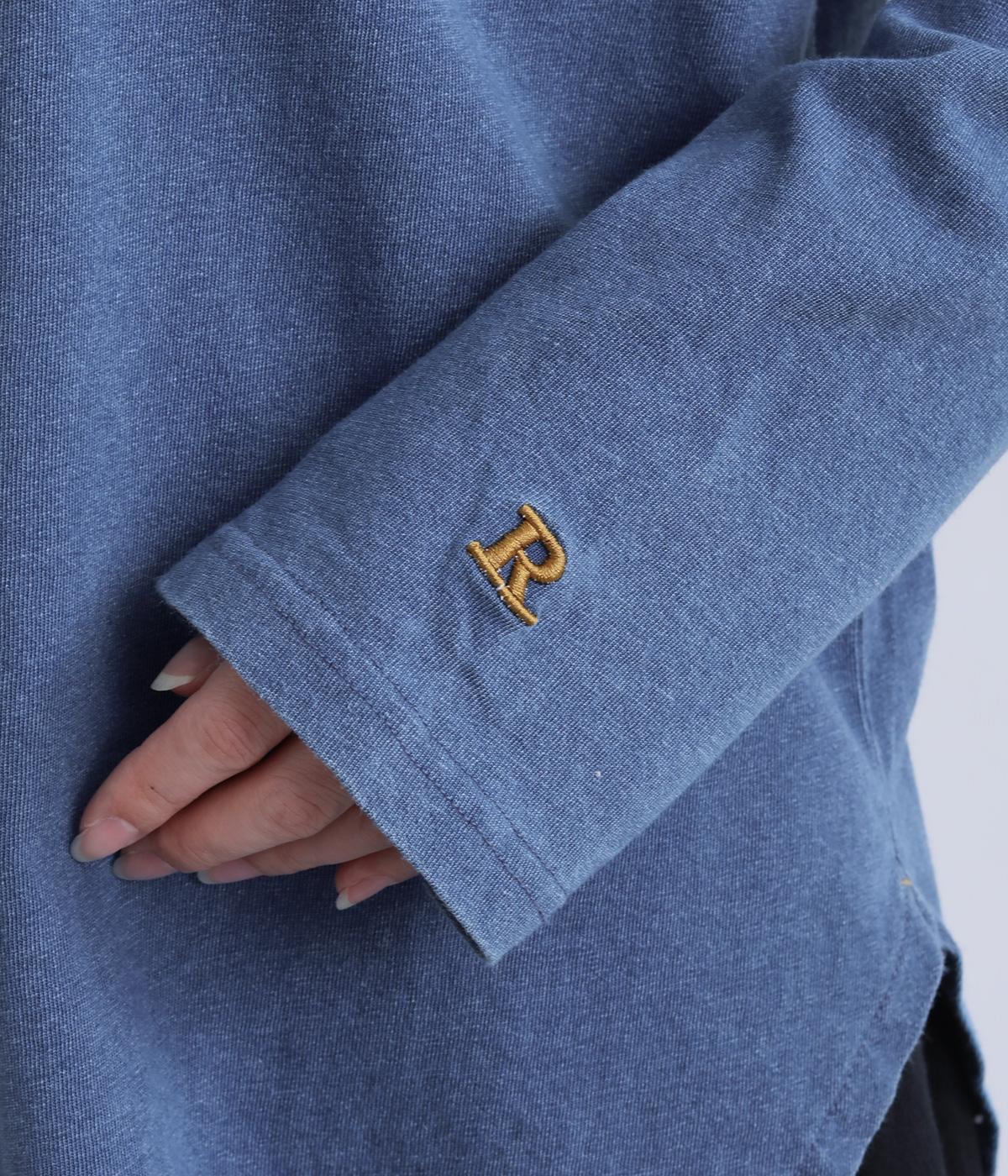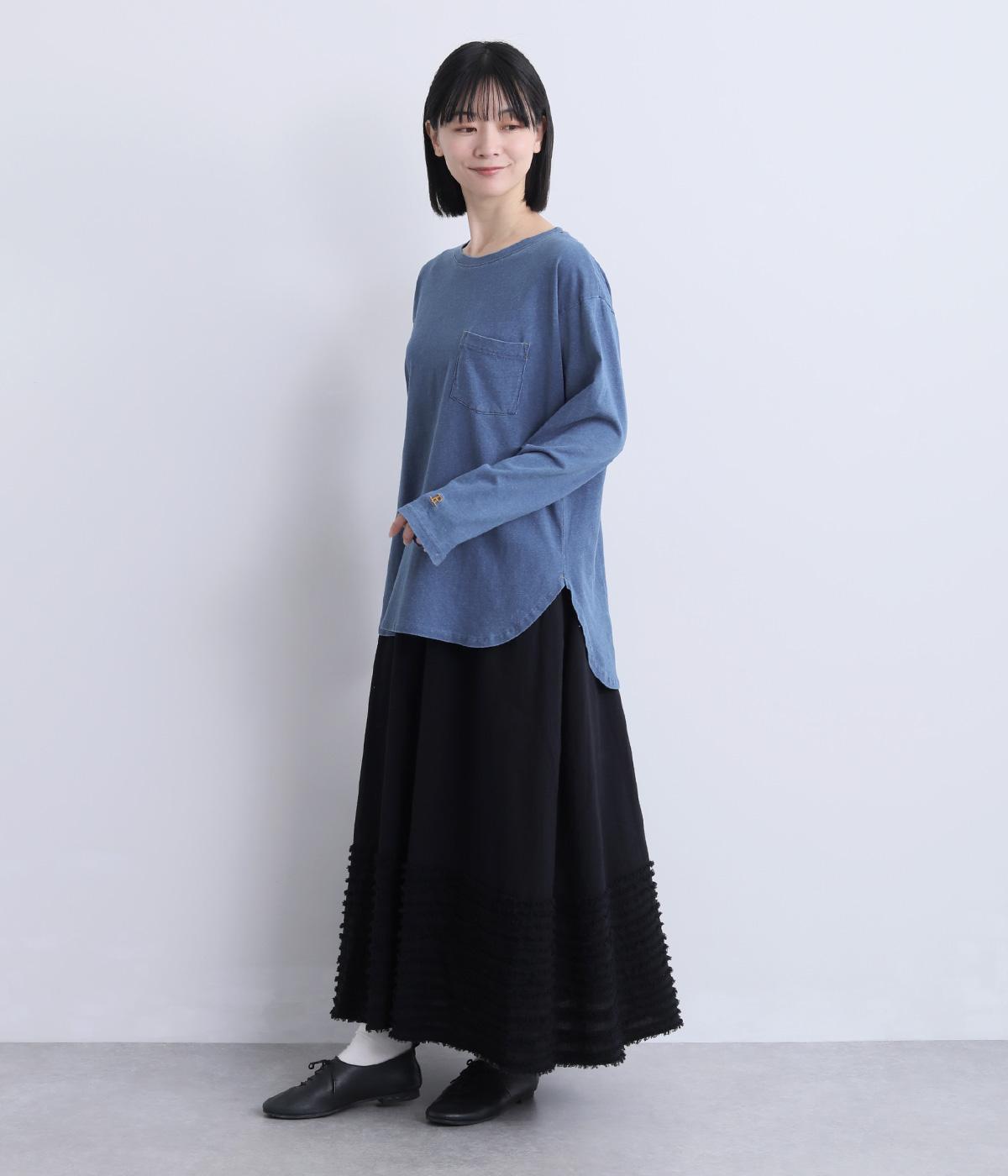 ソフトでやわらかく肌あたり抜群なコットン天竺。インディゴ染めをほどこすことで深みが増し、色落ちによるエイジングも魅力のひとつ。