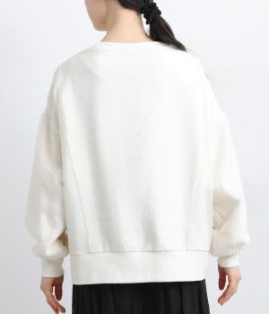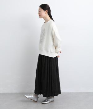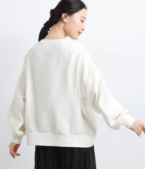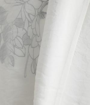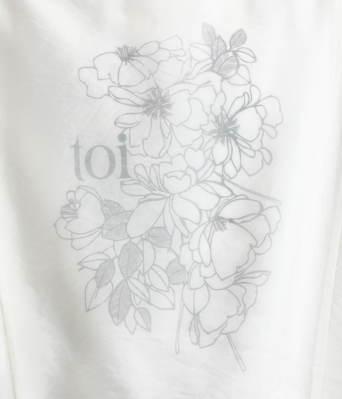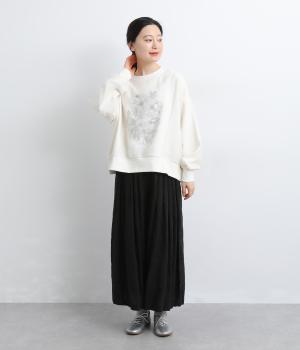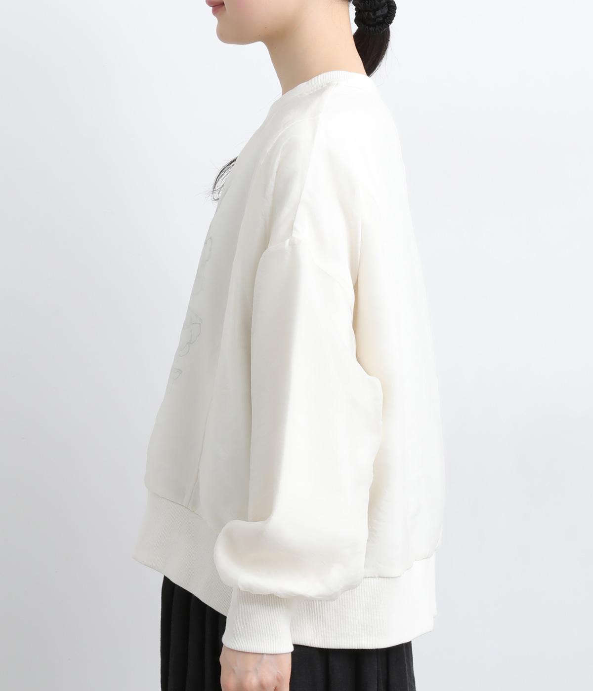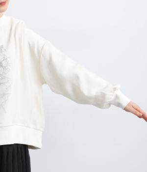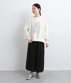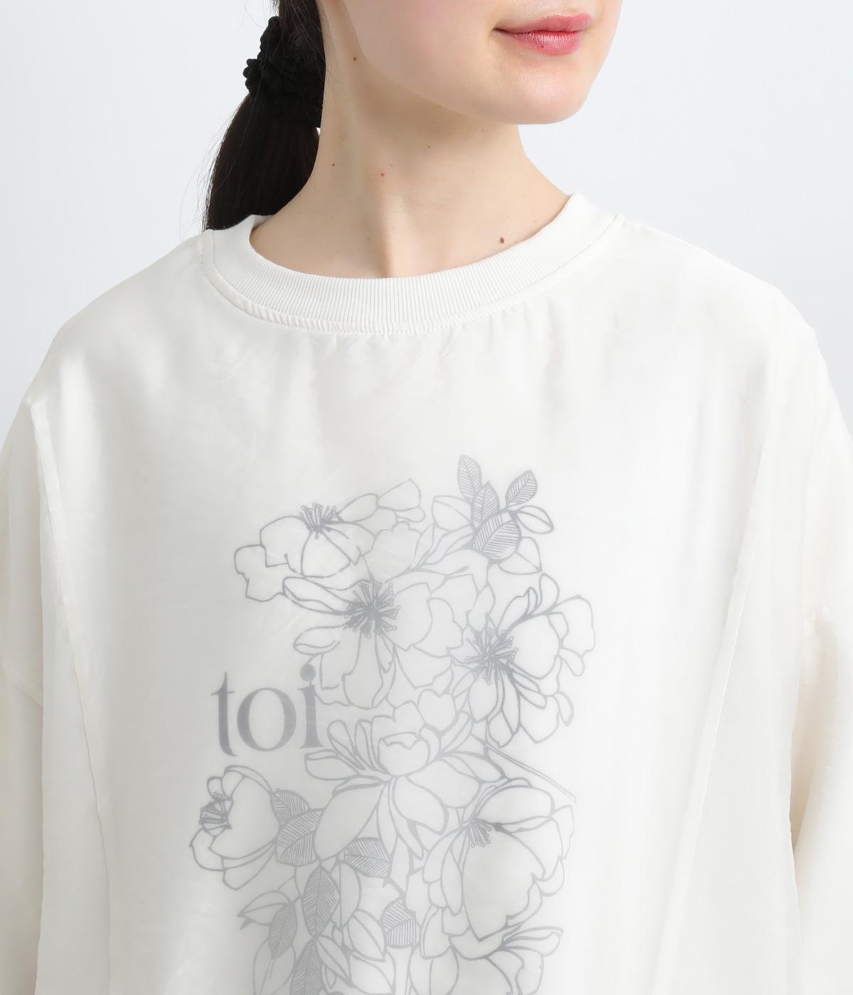 カジュアルスタイルの定番カットソープルオーバーにオーガンジーを重ね、幻想的で女性らしさの光る一枚にアップデート。花束プリントが淡くかすんで可憐さがより際立ちます。ベーシックなシルエットもスタイリングしやすいポイント。