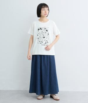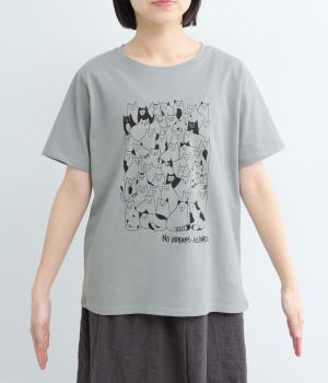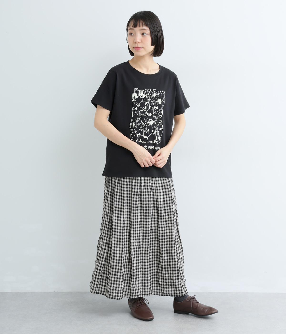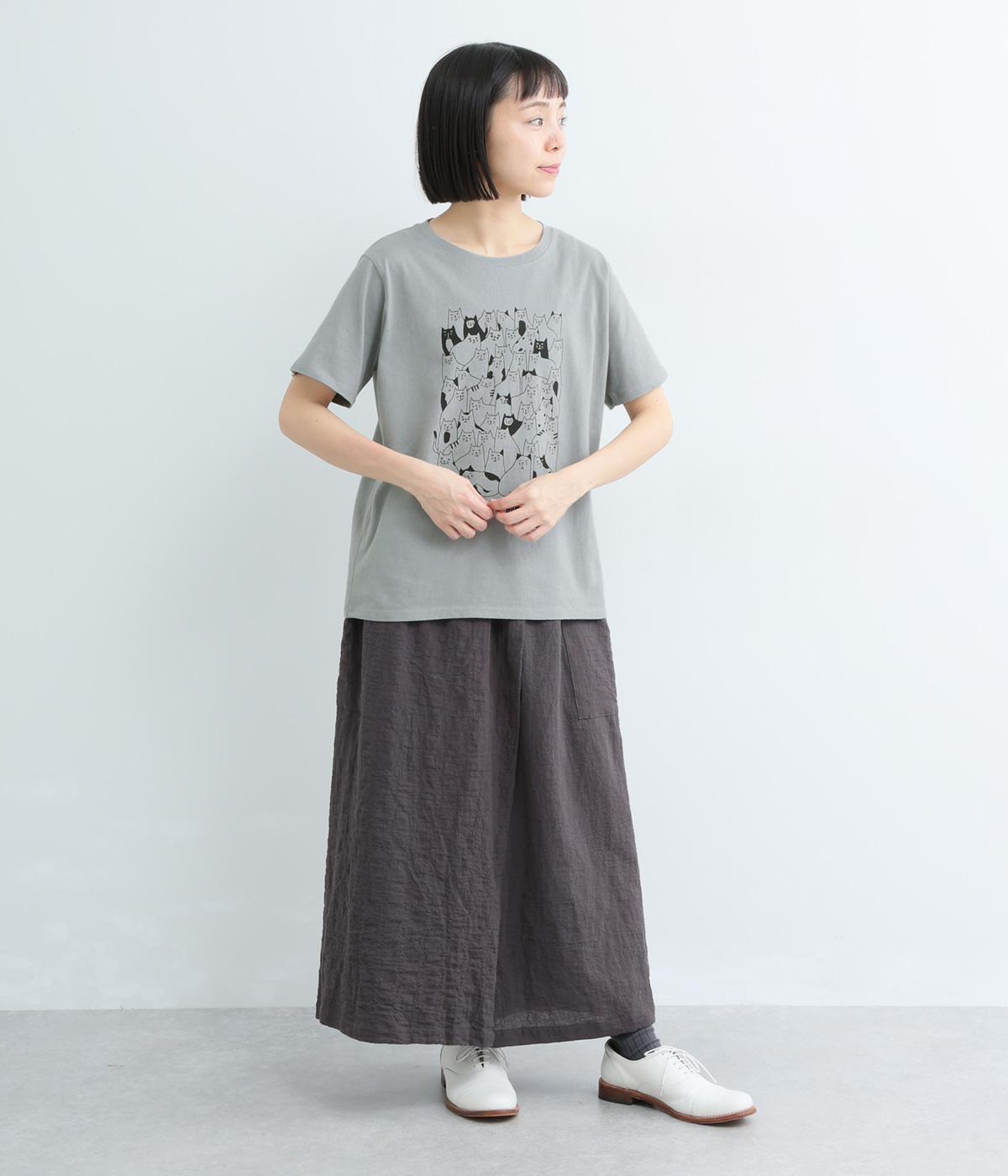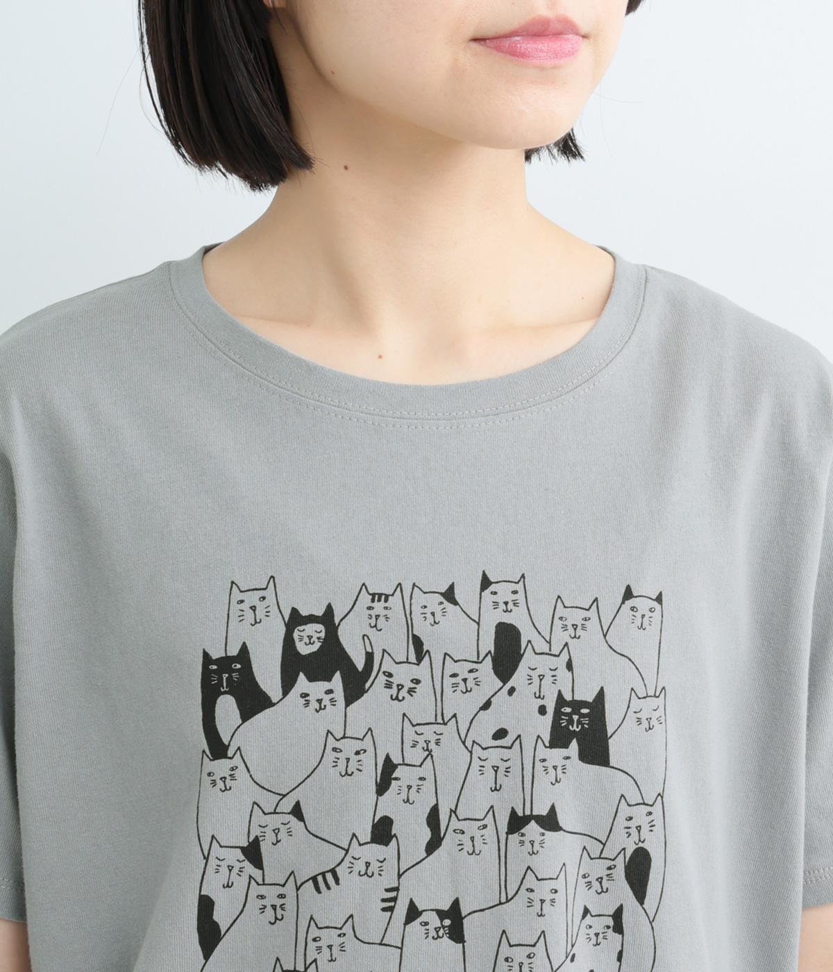 フロントいっぱいに並んだ、さまざまな表情のねこたちが目を引くプリントTシャツ。にぎやかなモチーフが、装いにほどよい遊び心を添えてくれます。ベーシックなクルーネックとゆとりのあるシルエットで、リラックスした着心地に。大人のカジュアルスタイルに似合う一枚です。