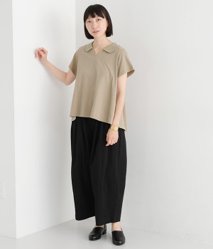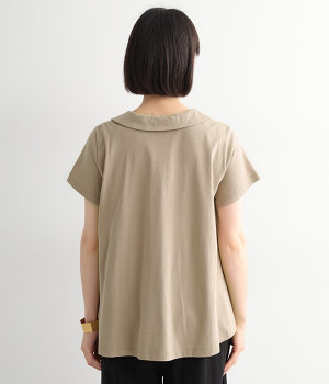 やわらかくなめらかなタッチの天竺コットンを使用したプルオーバーです。丸襟のやさしい雰囲気とふわりと広がるAラインが、大人のさりげないかわいらしさを演出します。ほどよい開きのネックラインはインナーを少しのぞかせても◎。なだらかな裾ラインは前後差が付いており、ギャザーの入ったスカートやパンツとゆるっと合わせても素敵です。シンプルで品のいいコンパクトなシルエットで、カジュアルにもきれいめにも対応できます。