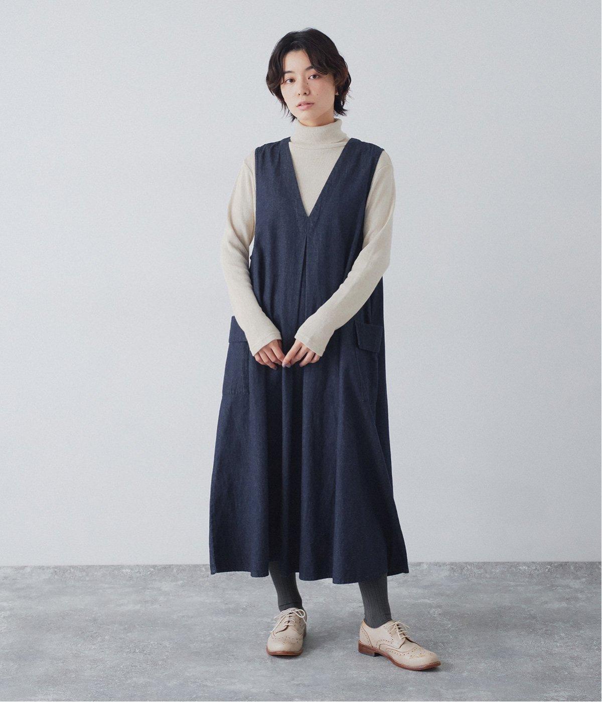 ワンピースのインナーとして合わせ、さりげなく色を効かせた上級スタイル。ほどよい厚みの生地で重ねてももたつかず、きれいなフォルムで着られます。