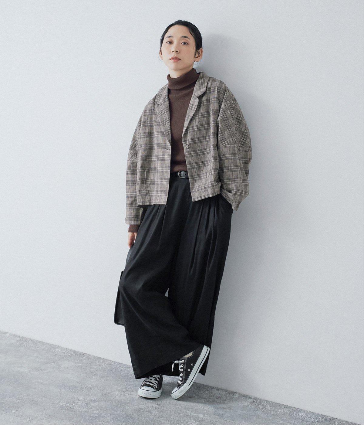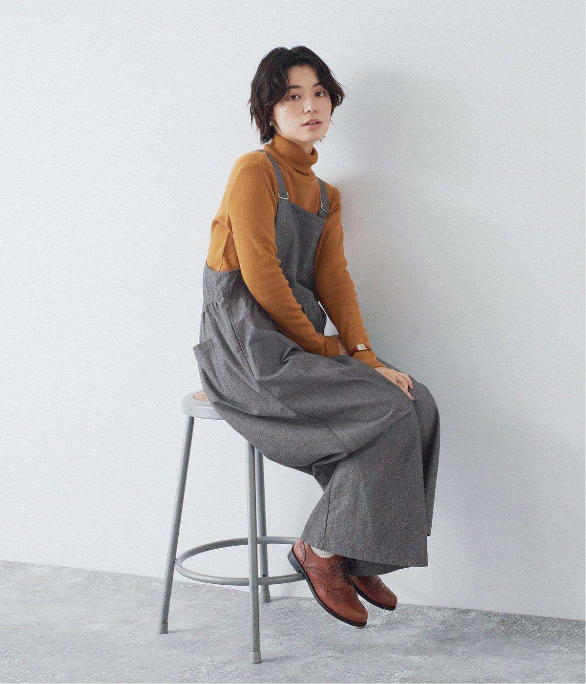 同系色でまとめたマニッシュなコーディネート。羽織りやベストとのレイヤードにも最適で、秋口から真冬まで長く活躍します。