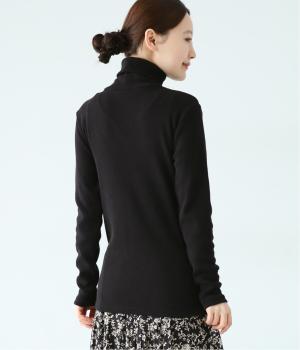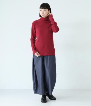 天然素材の綿麻で仕立てたタートルネック。適度な通気性と吸湿性を備え、ちくちく感のないやわらかな肌触り。静電気も起こりにくく、毎日手に取りたくなる一枚です。