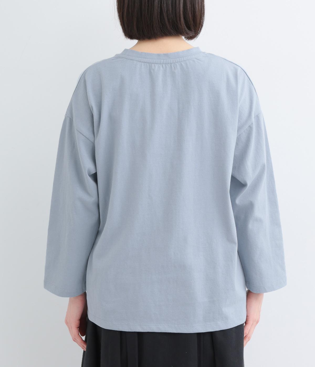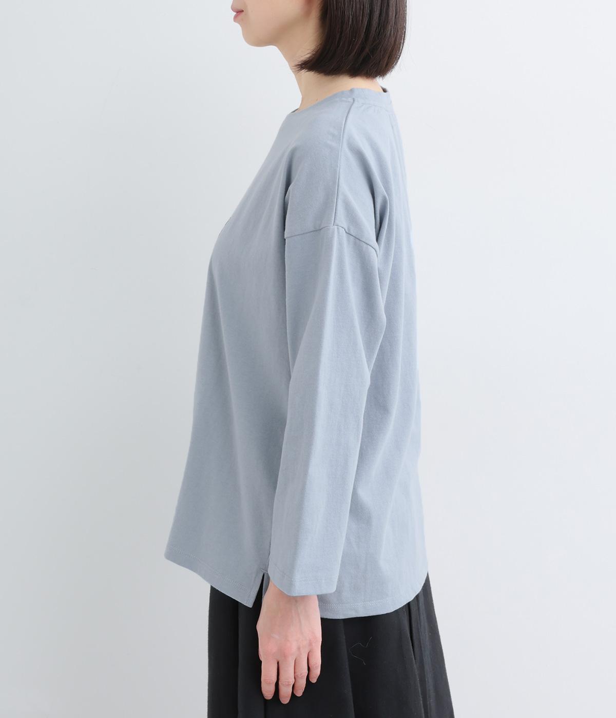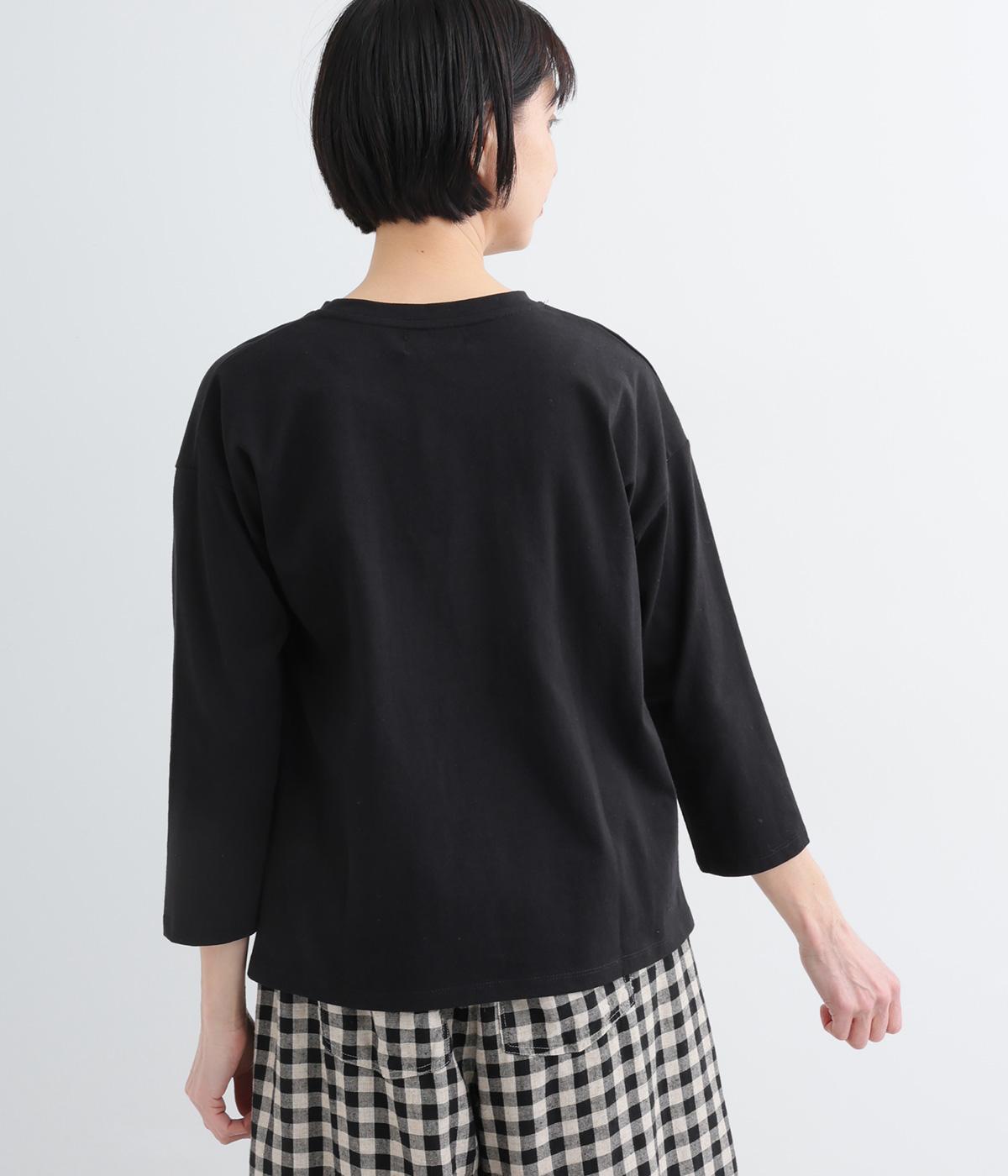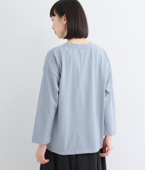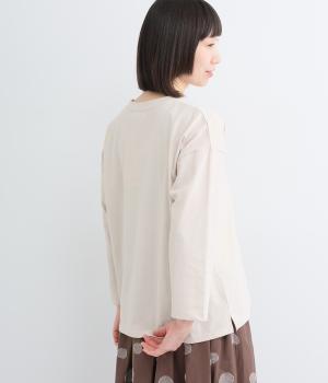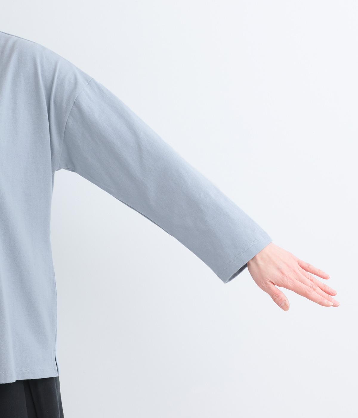 素肌にやさしいコットン天竺生地を使用しています。ほどよい厚みで、ふんわりとソフトな肌ざわりです。デイリー使いにぴったりで、ロングシーズン着用できる素材感です。
