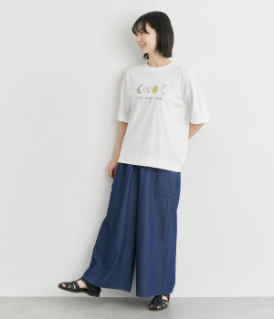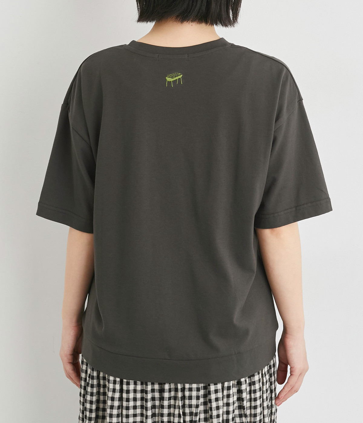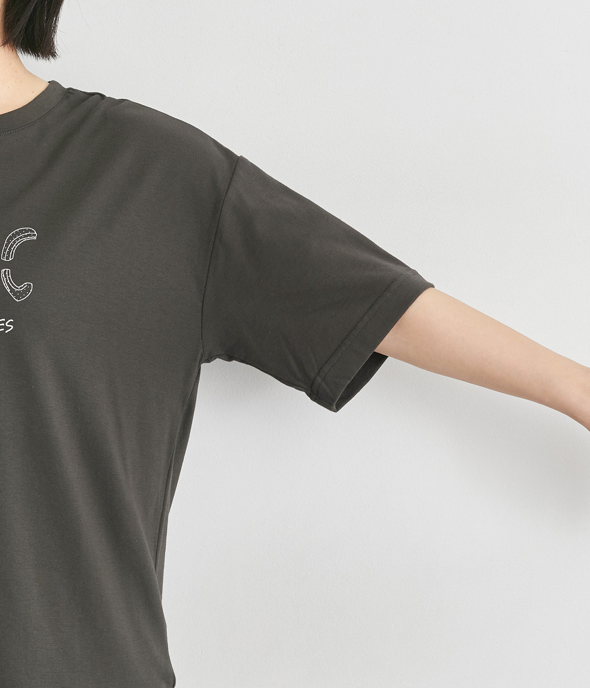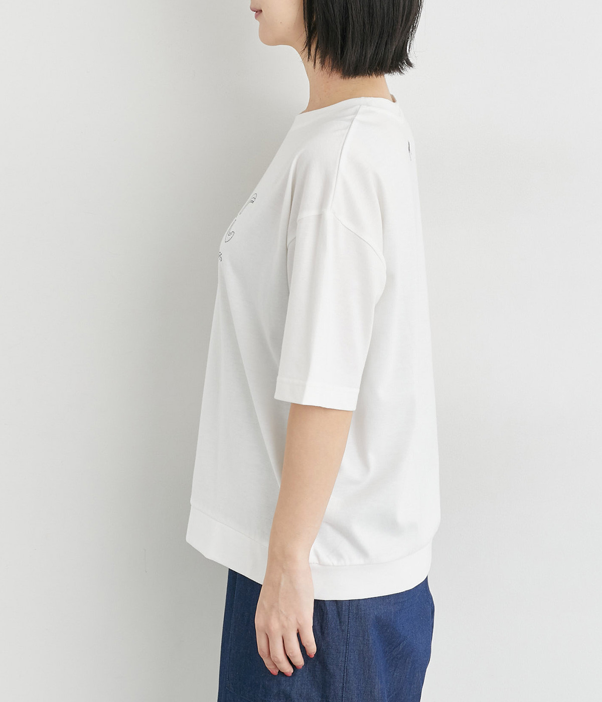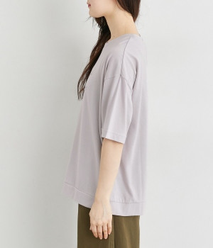 コットンにポリエステルを混ぜてより軽やかに仕上げた天竺生地を使用しています。やわらかで伸びも良く、快適な着用感を得られます。