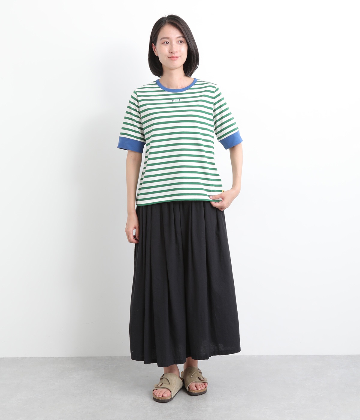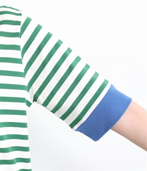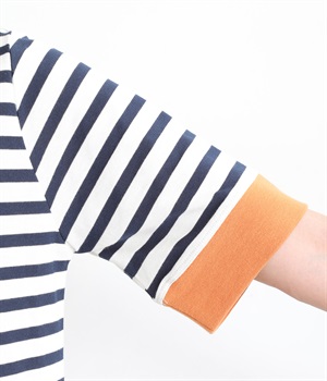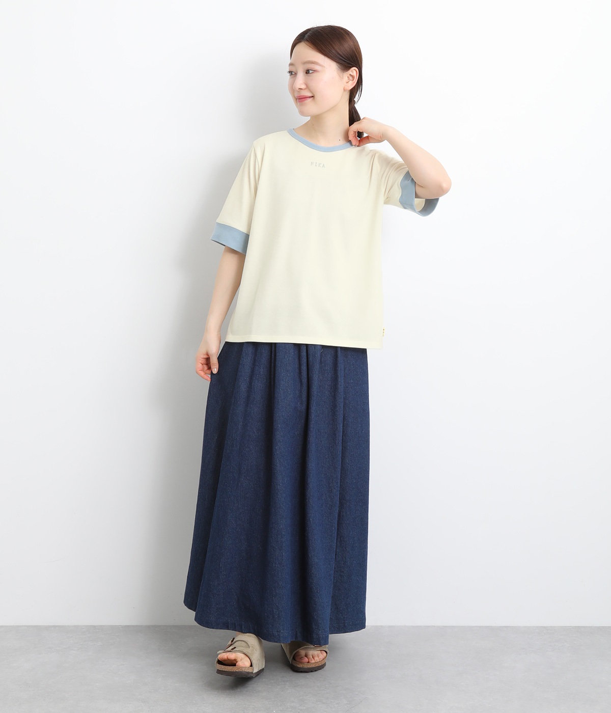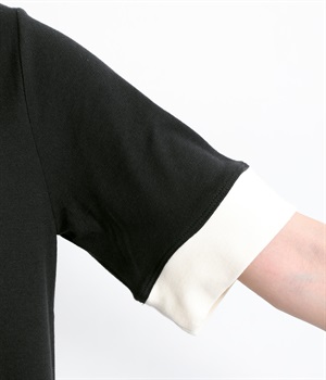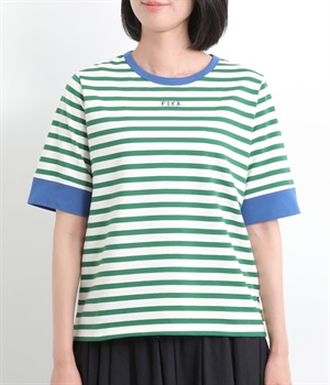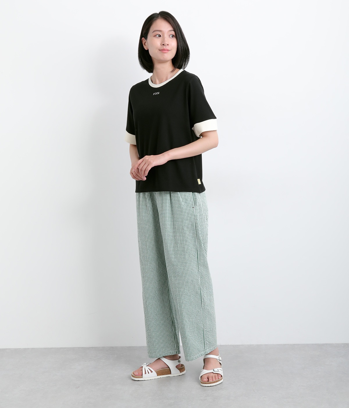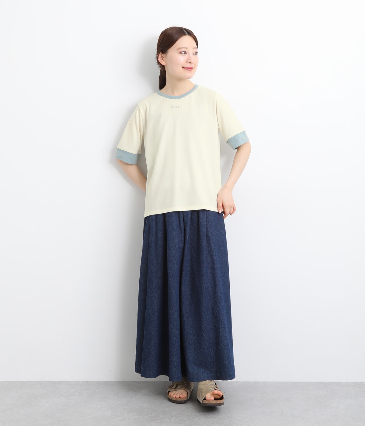 襟ぐりと袖口の配色デザインがきいているリンガーTシャツです。色を合わせた胸元のワンポイント刺しゅうも◎。ボックスシルエットでカジュアルに着やすく、どこかレトロ感のあるカラーリングでお洒落な着こなしに。