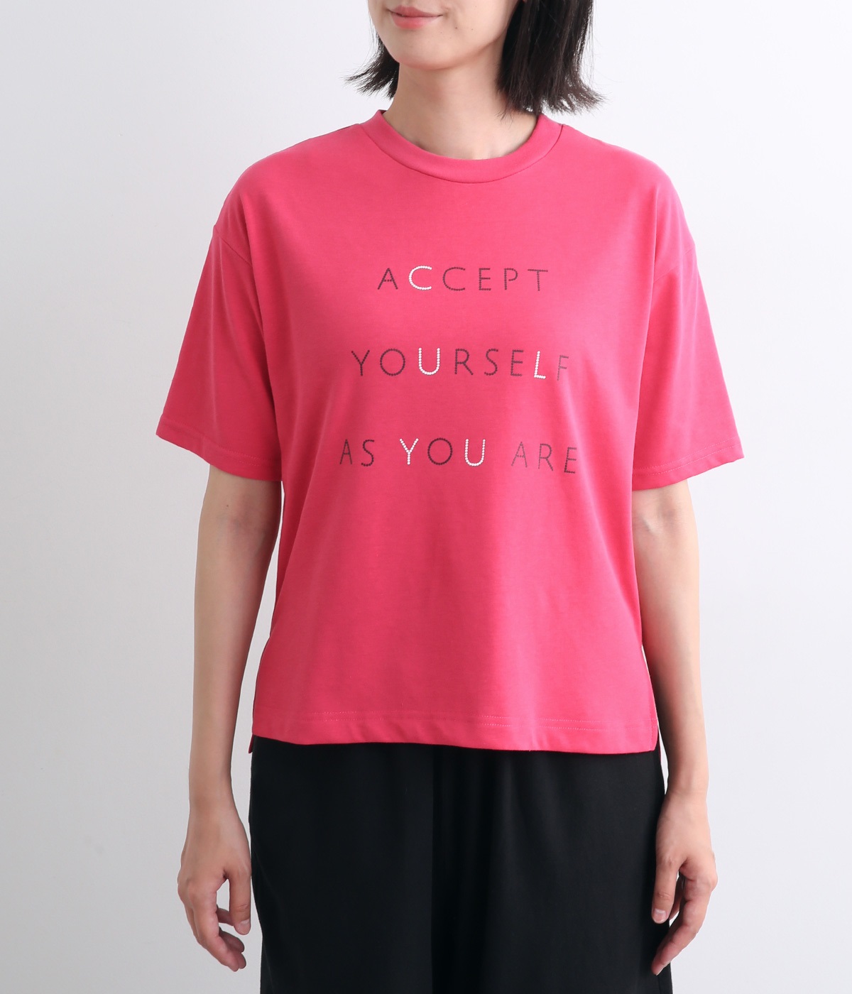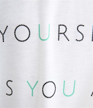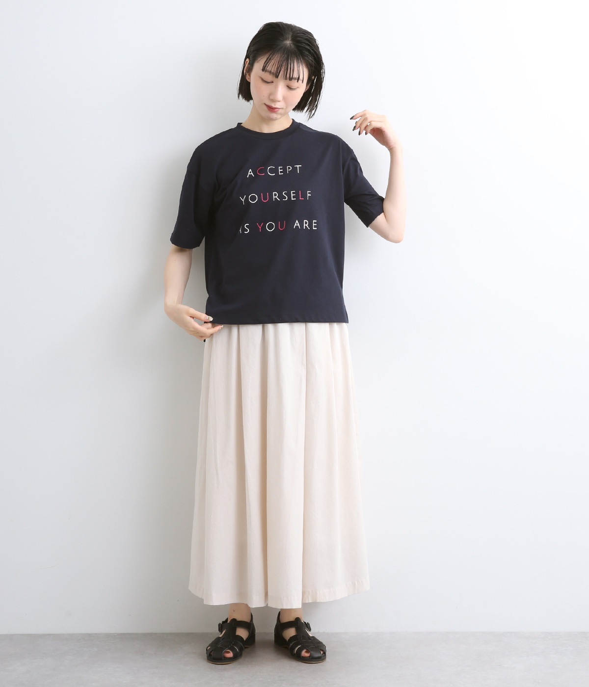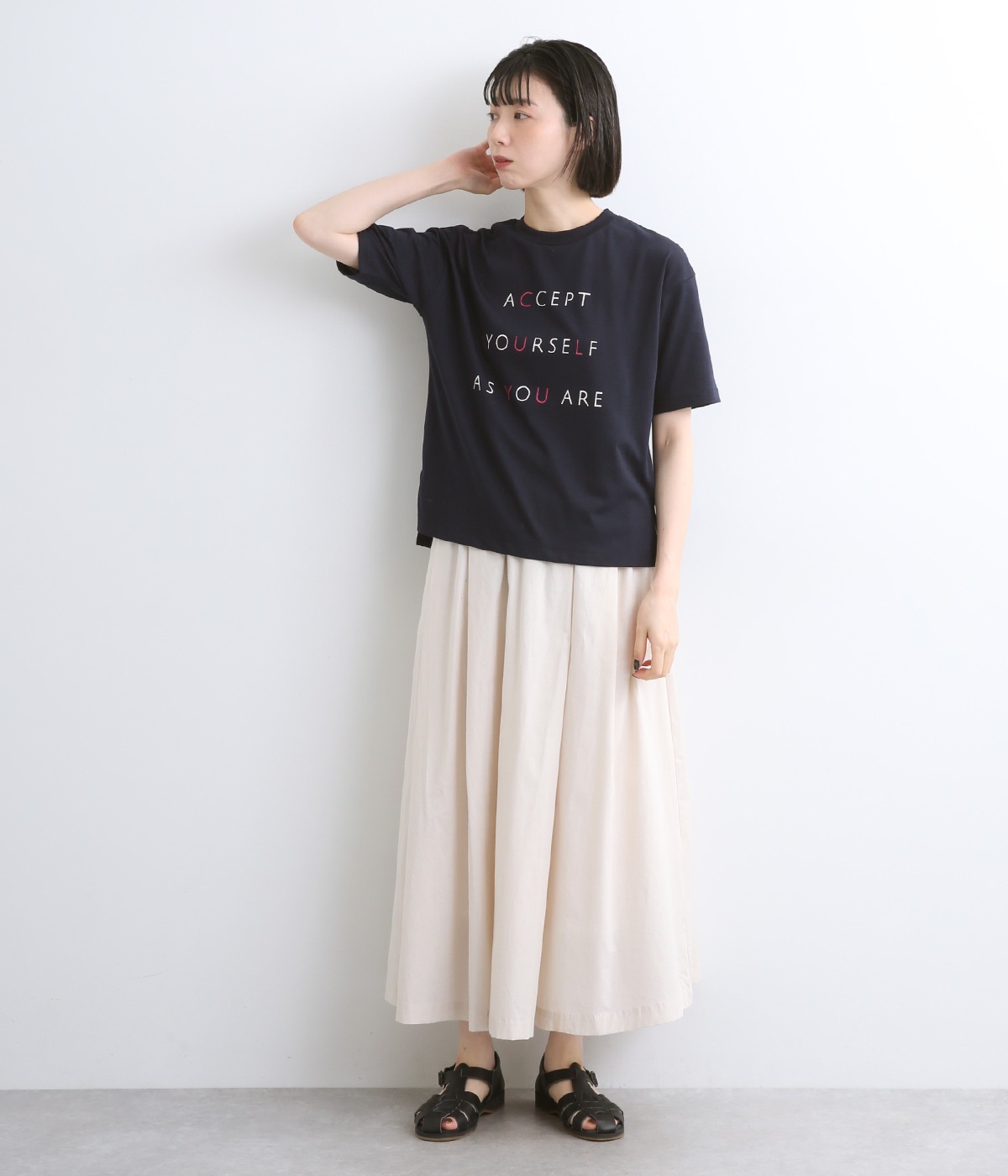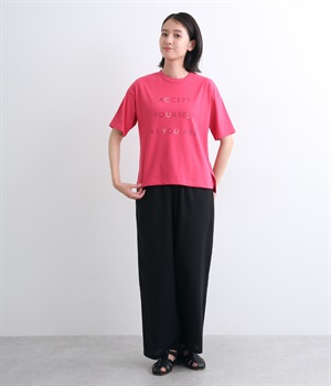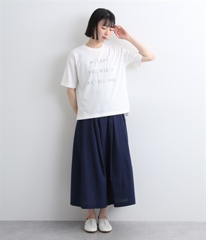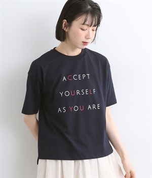 ところどころに色をきかせたレタープリントが特徴的な一枚。ゆったりとしたボックスシルエットがカジュアルテイストで、デイリースタイルに取り入れやすい仕立て。サイドスリットを入れてボトム合わせもすっきり見えます。