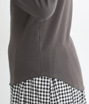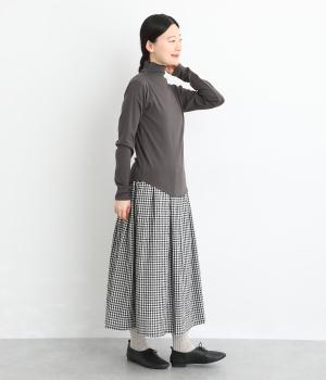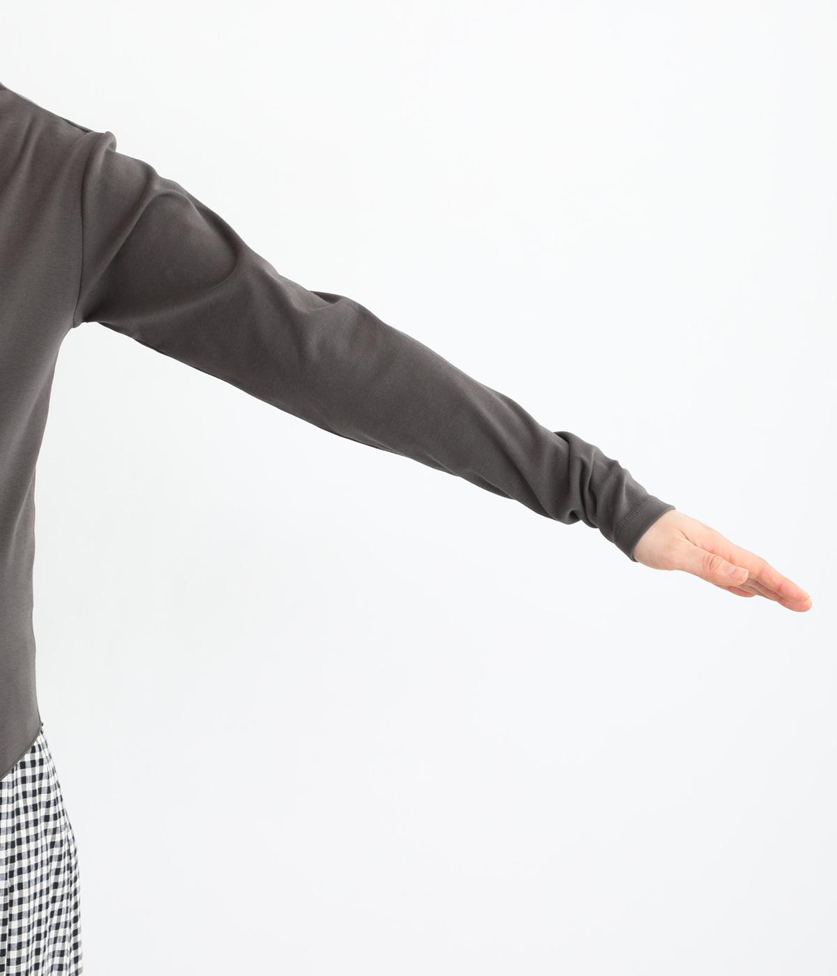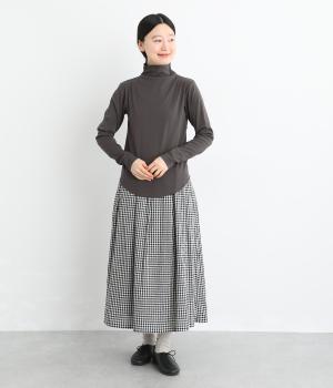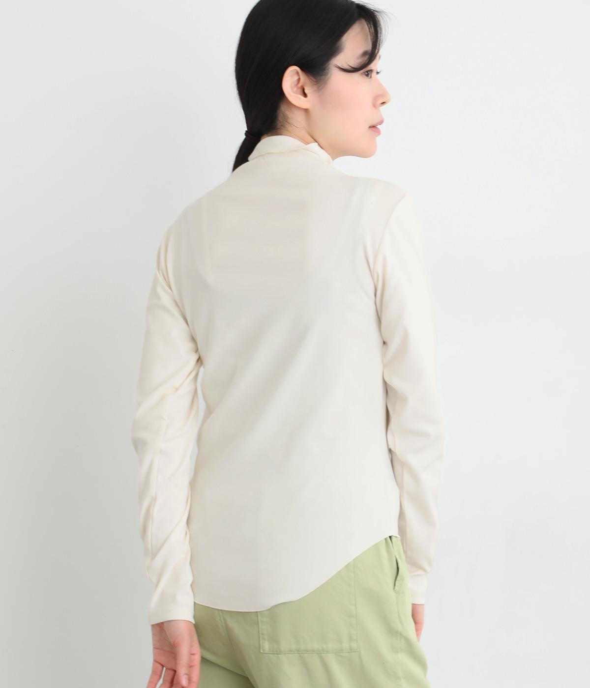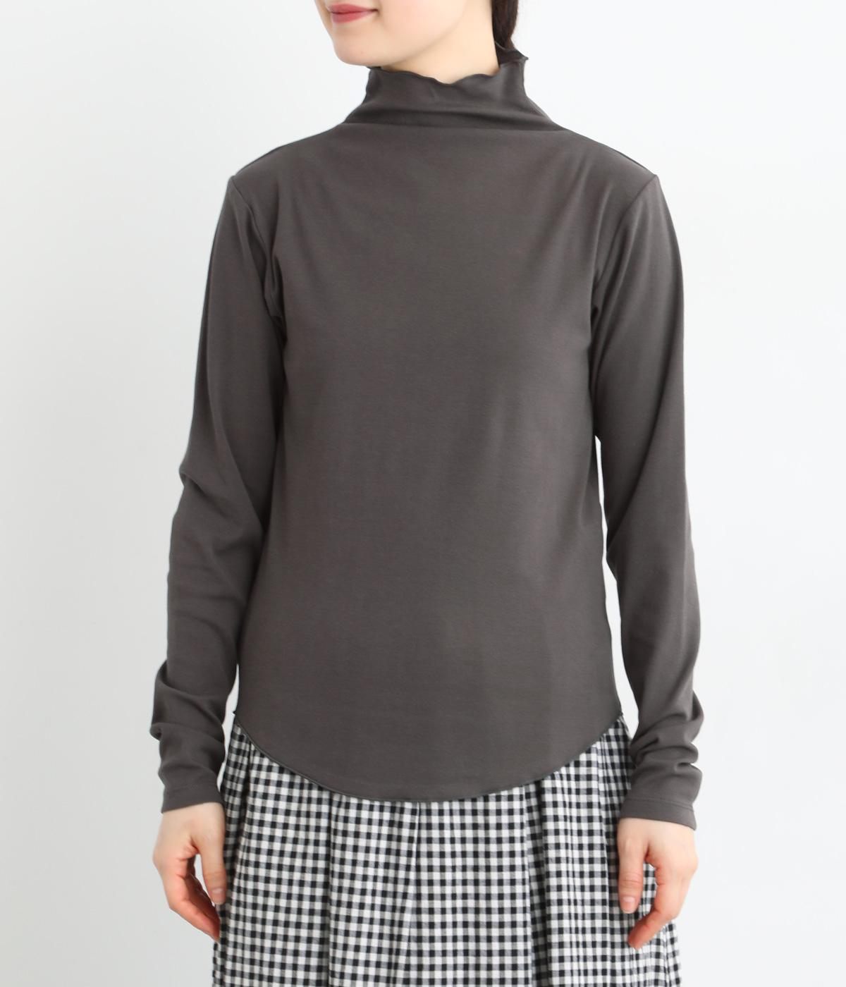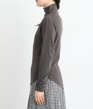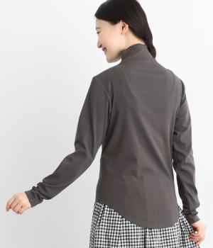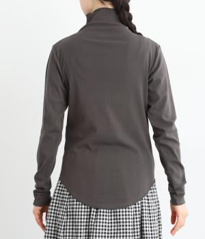 ソフトな生地がネックまわりに美しいドレープをつくるトップス。メロウ仕上げのボトルネックやラウンドした裾のラインがさりげなくかわいらしさを添え、ニットやブラウスとのレイヤードスタイルにもおすすめです。