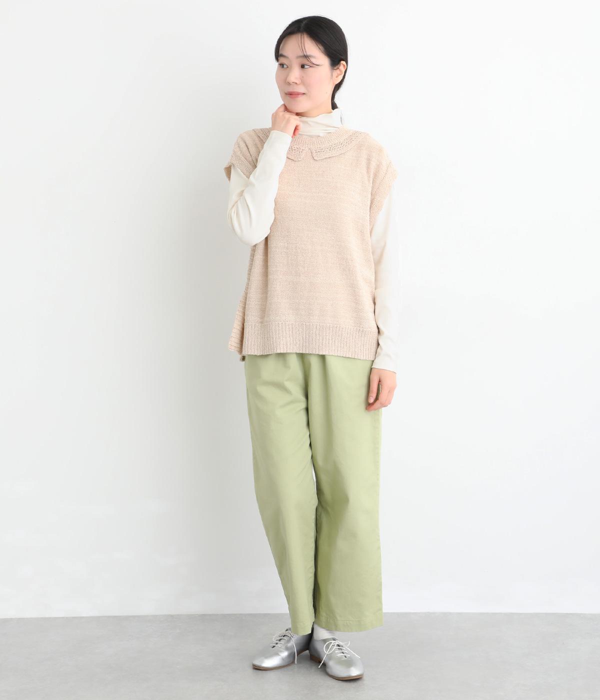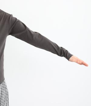 コットンのナチュラルな肌ざわりと、ポリウレタンのフィット感をミックスしたカットソー生地を使用しています。伸縮性に優れ、体にほどよくフィットします。