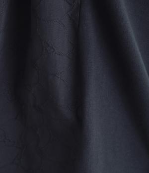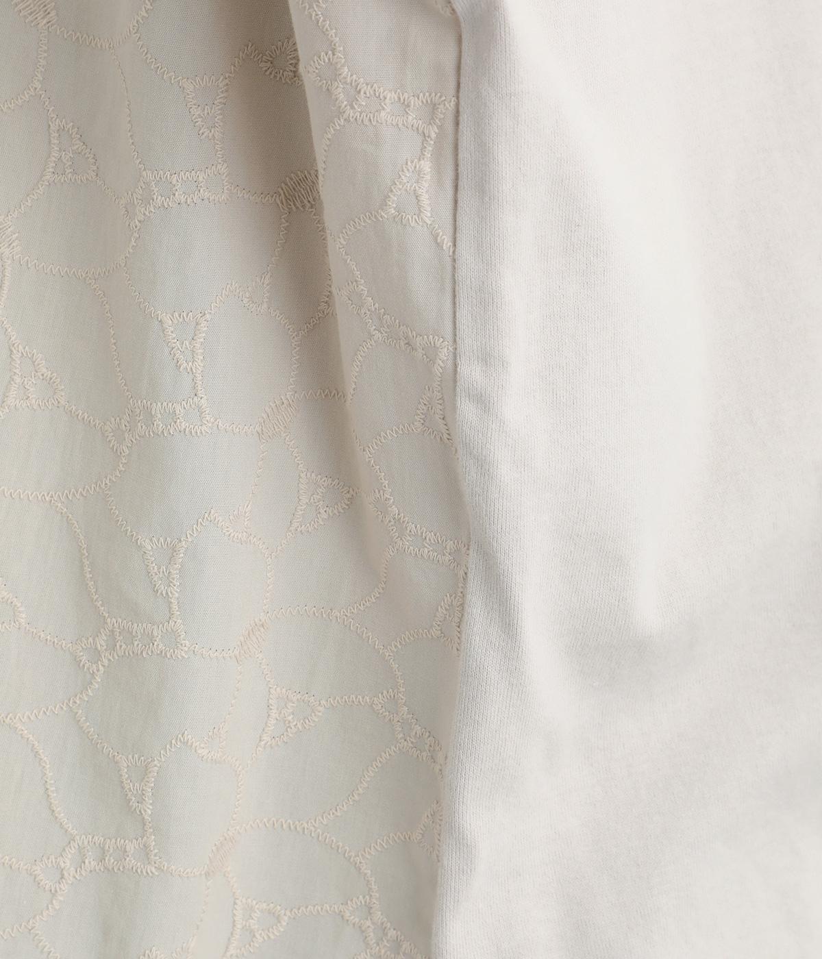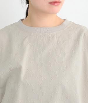 やわらかくしなやかで伸縮性のあるコットン生地に、刺しゅうをほどこしたさらりと快適な布帛を組み合わせました。首まわりはリブ仕様で、心地よくフィットします。