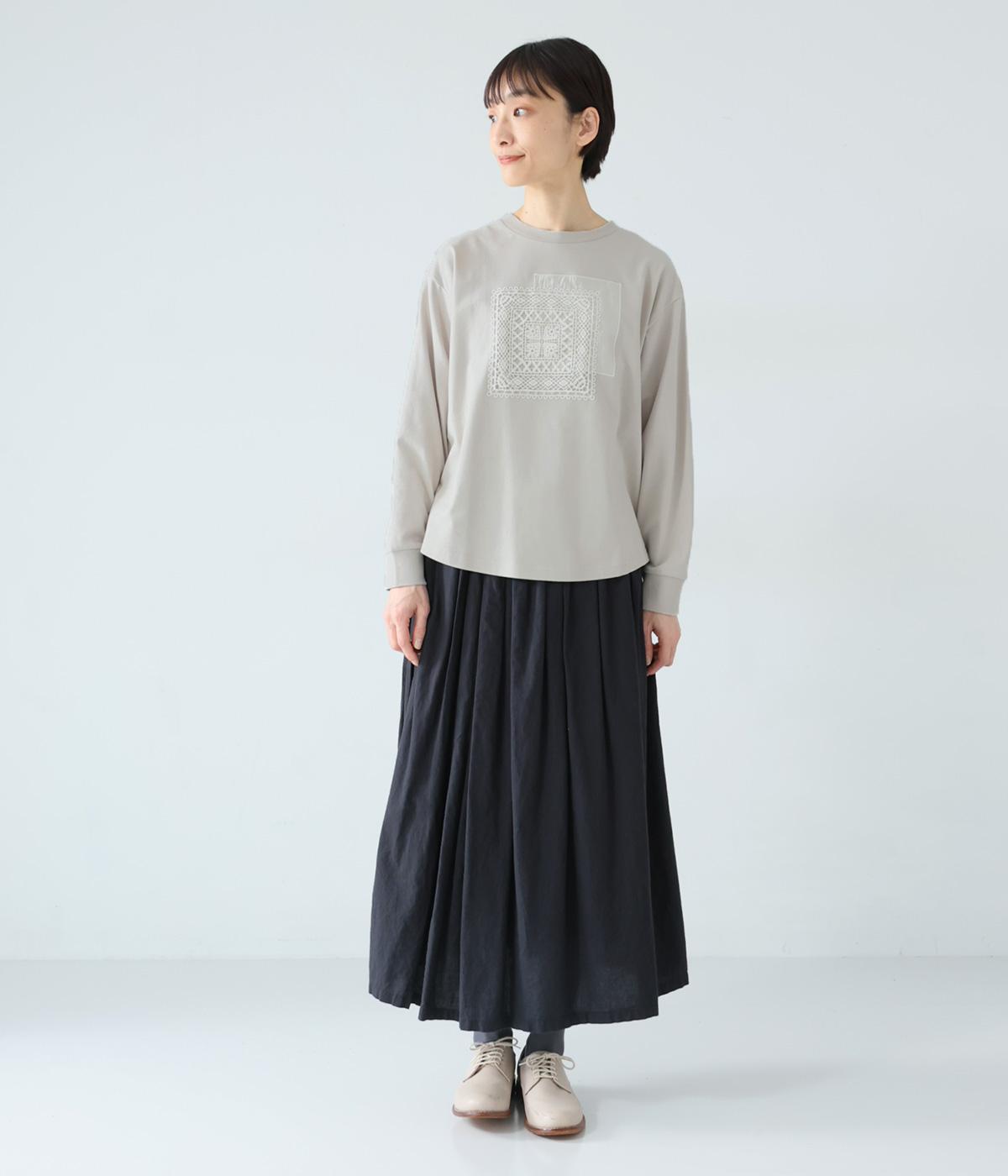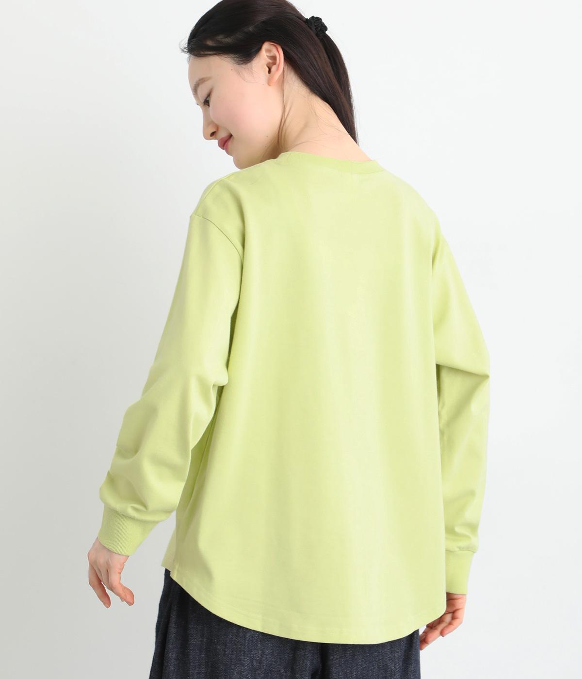 やさしい肌ざわりが魅力のコットン素材を使用しました。通気性と吸湿性が高いので汗をかいても快適です。一枚でもインナーでも使いやすい丁度良い厚みも◎。