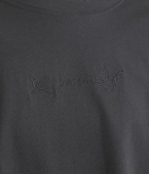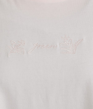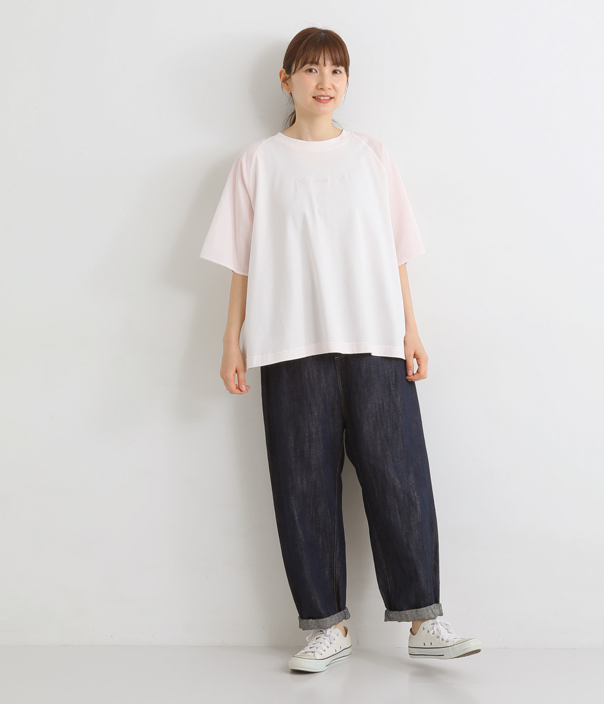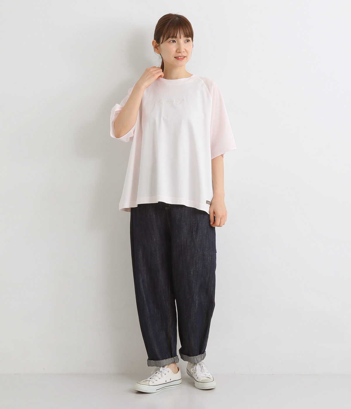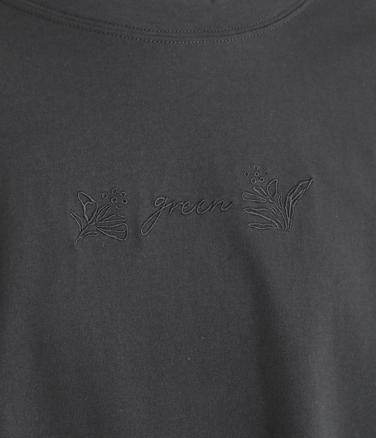 胸元にボディと同色の刺しゅうをデザインし、品よくアクセントをプラス。ラグランスリーブに加えて身幅を広く取り、動きやすい仕上がりに。ふんわりと広がるフレアシルエットがコーディネートにやさしい雰囲気を演出します。