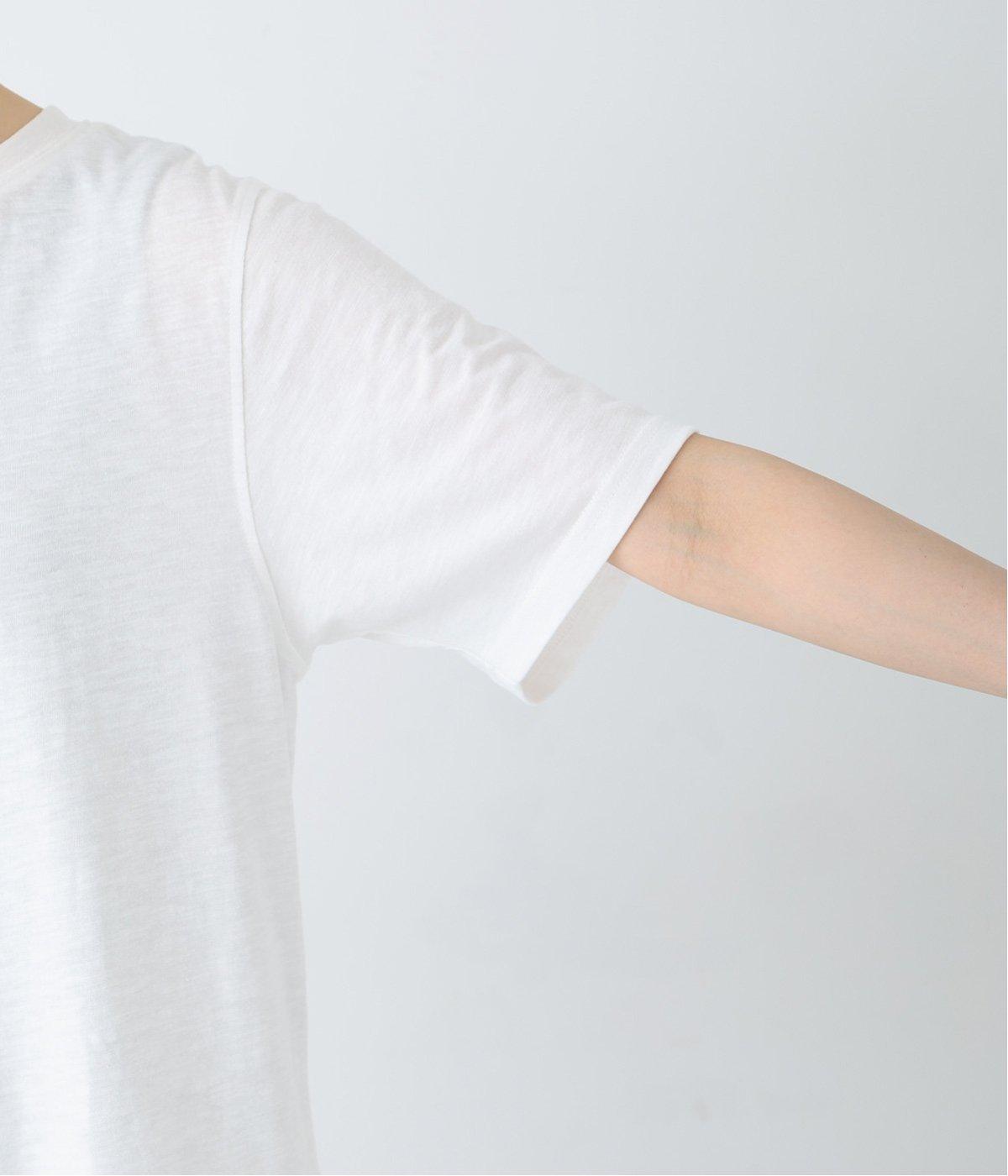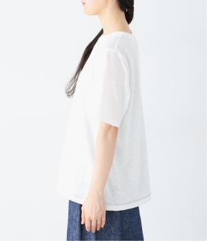 ポリエステルとコットンを混紡した、薄手でとてもやわらかな生地感です。肌に触れるたびに癒されるような心地よさが◎。糸に自然なムラのある、ナチュラルな見た目もポイントです。