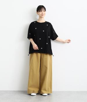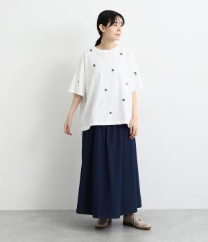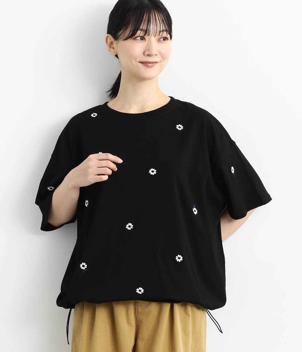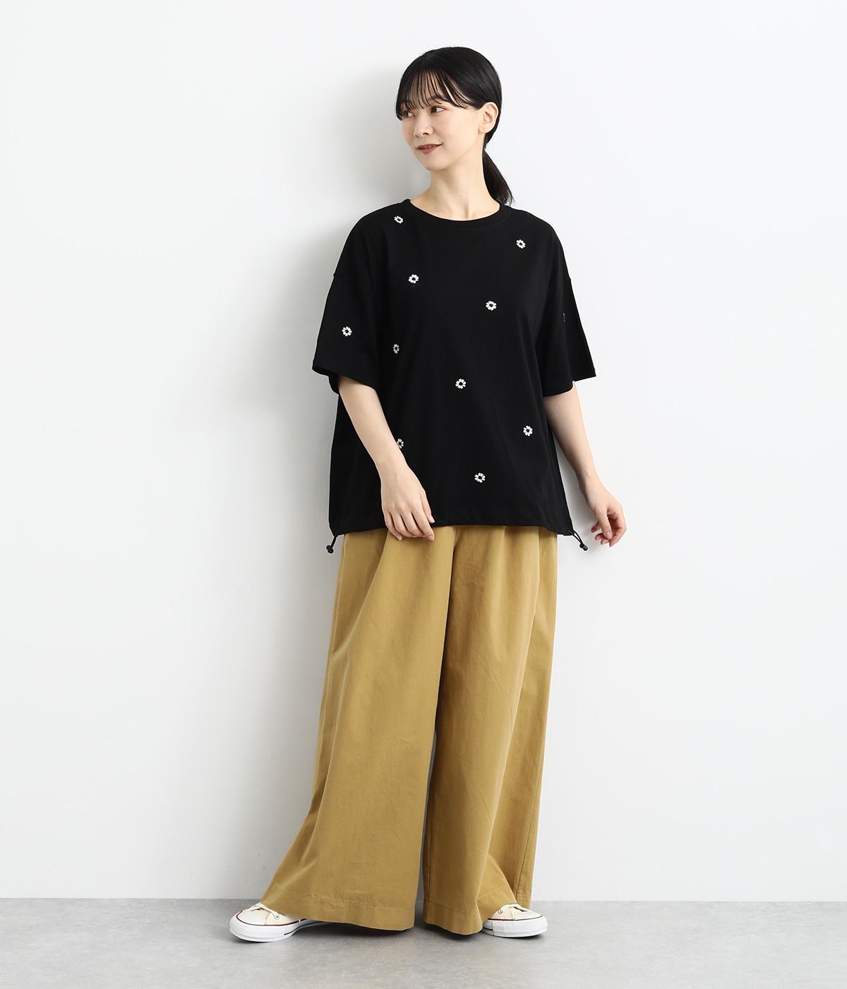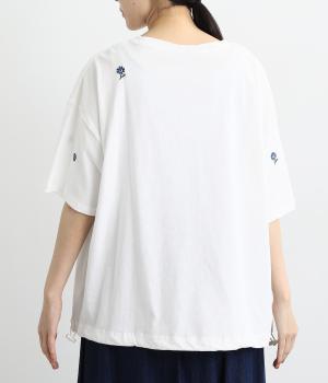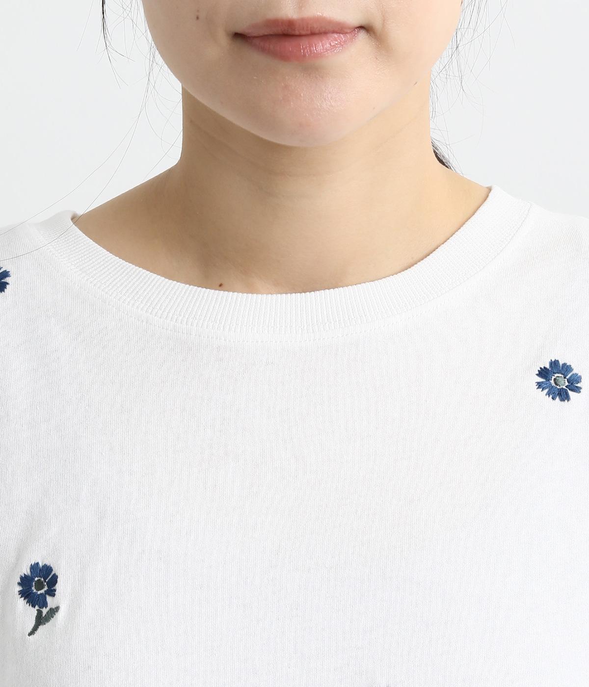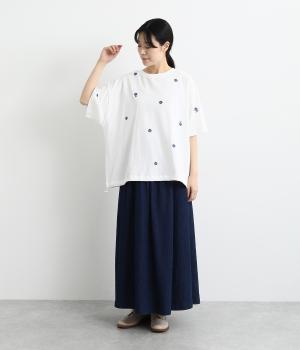 さらっとした肌触りが気持ちいいコットンカットソー。ソフトな風合いながらも肌にまとわりつかず、きれいなシルエットで着こなせます。ランダムに配置した花柄刺しゅうがポイント。