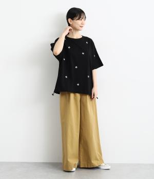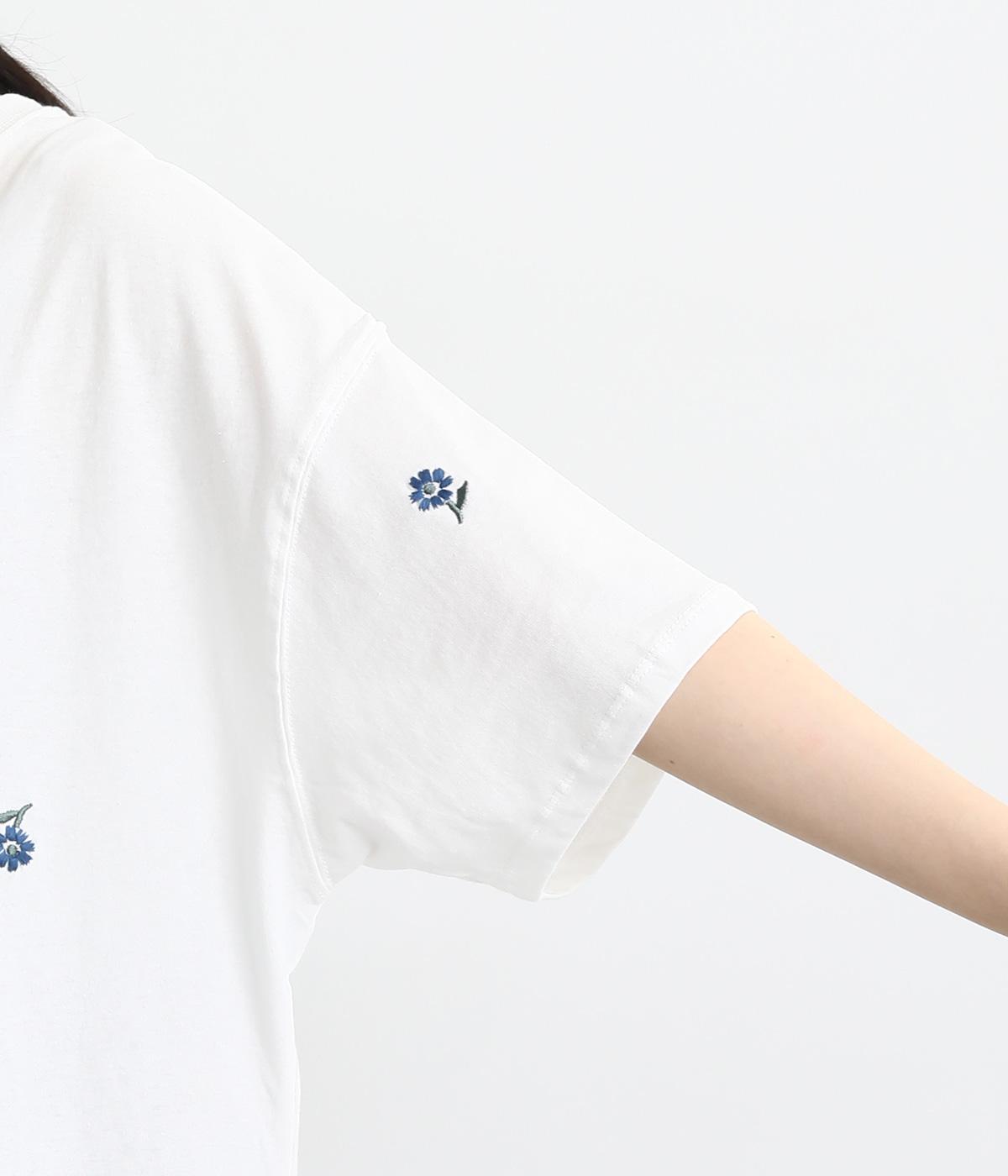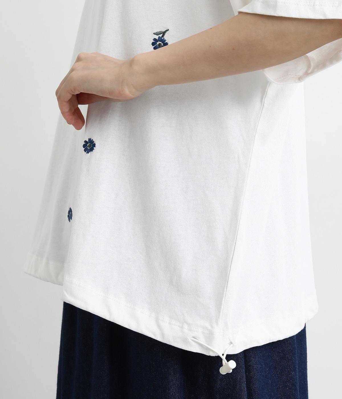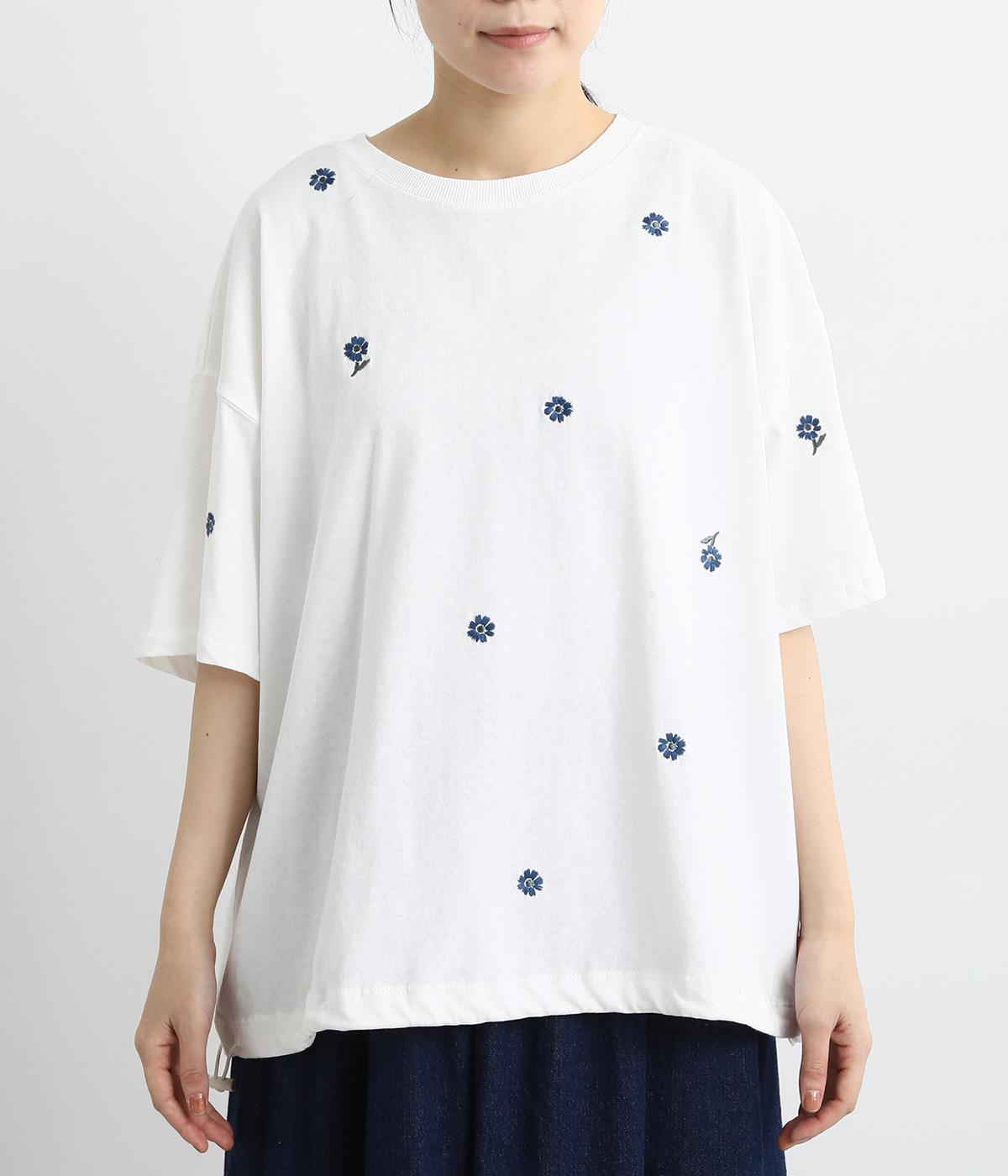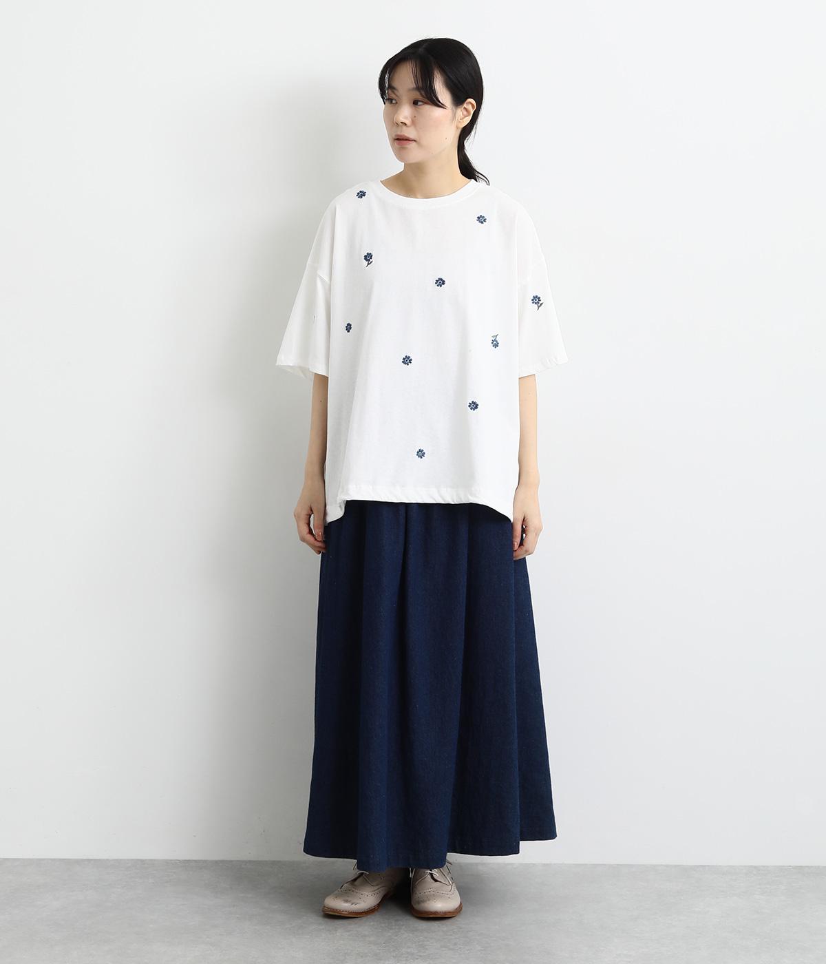 さらっとした肌触りが気持ちいいコットンカットソー。ソフトな風合いながらも肌にまとわりつかず、きれいなシルエットで着こなせます。ランダムに配置した花柄刺しゅうがポイント。