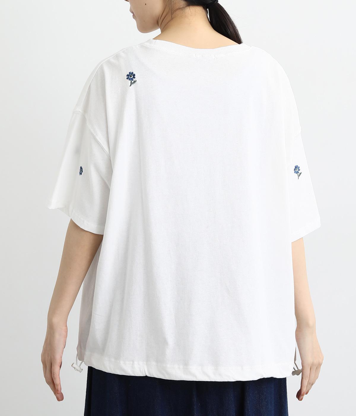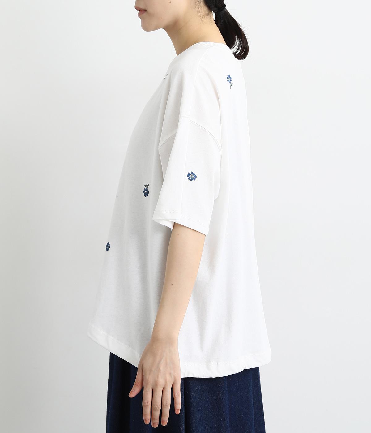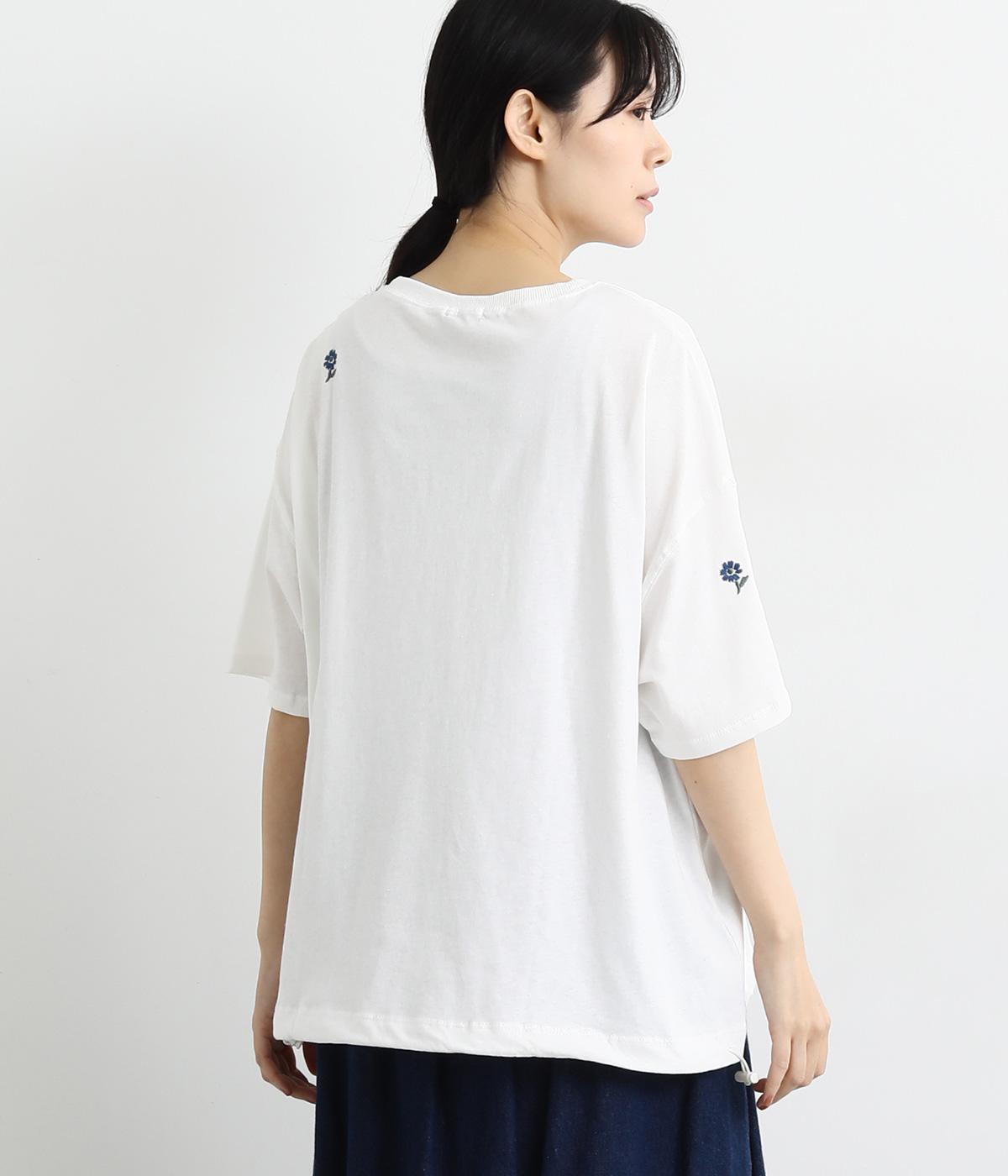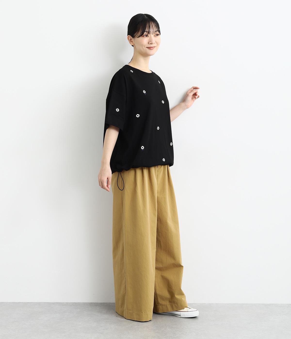 さらっとした肌触りが気持ちいいコットンカットソー。ソフトな風合いながらも肌にまとわりつかず、きれいなシルエットで着こなせます。ランダムに配置した花柄刺しゅうがポイント。