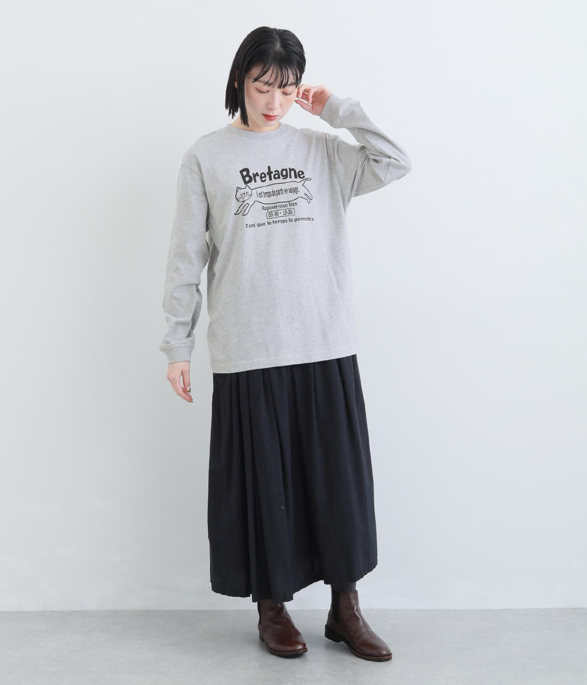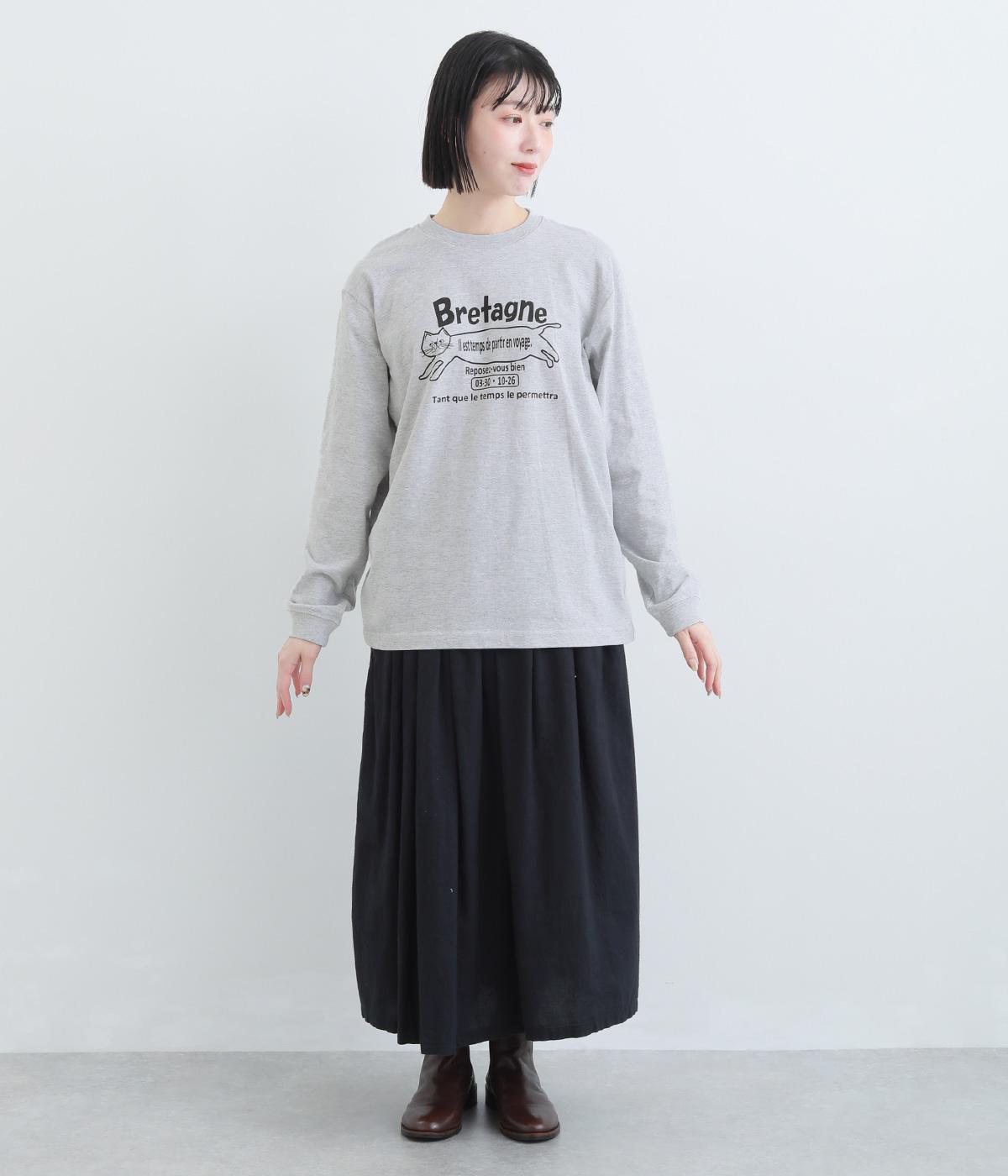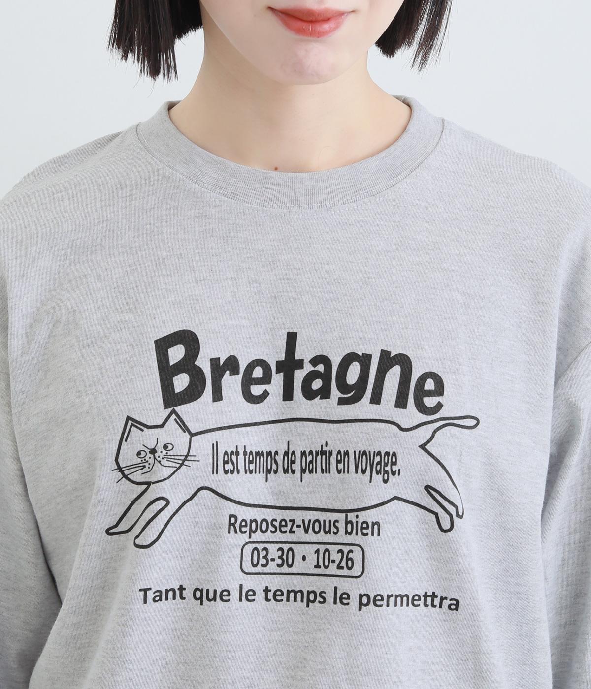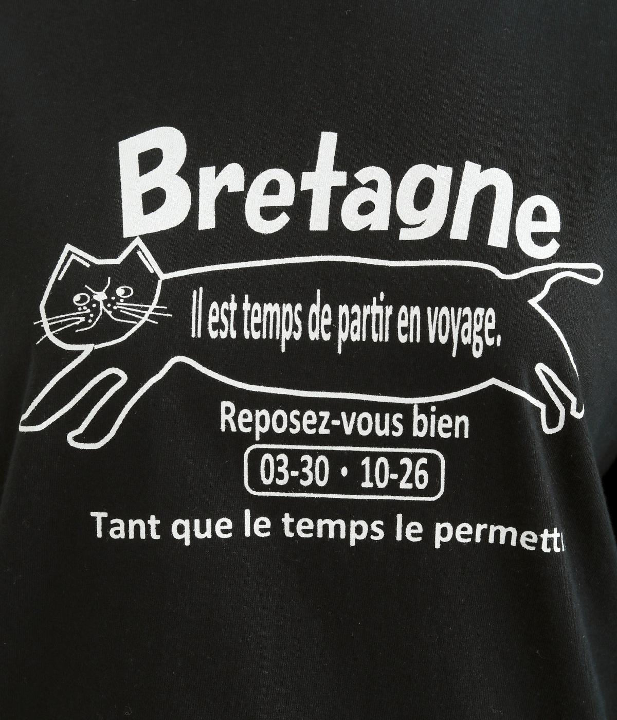 愛嬌のある表情が目をひくネコのイラストに、フランスのブルターニュ地方への旅にいざなうメッセージロゴを合わせました。ストンとした落ち感でリラックスした着心地。スカートにもパンツスタイルにも好相性です。