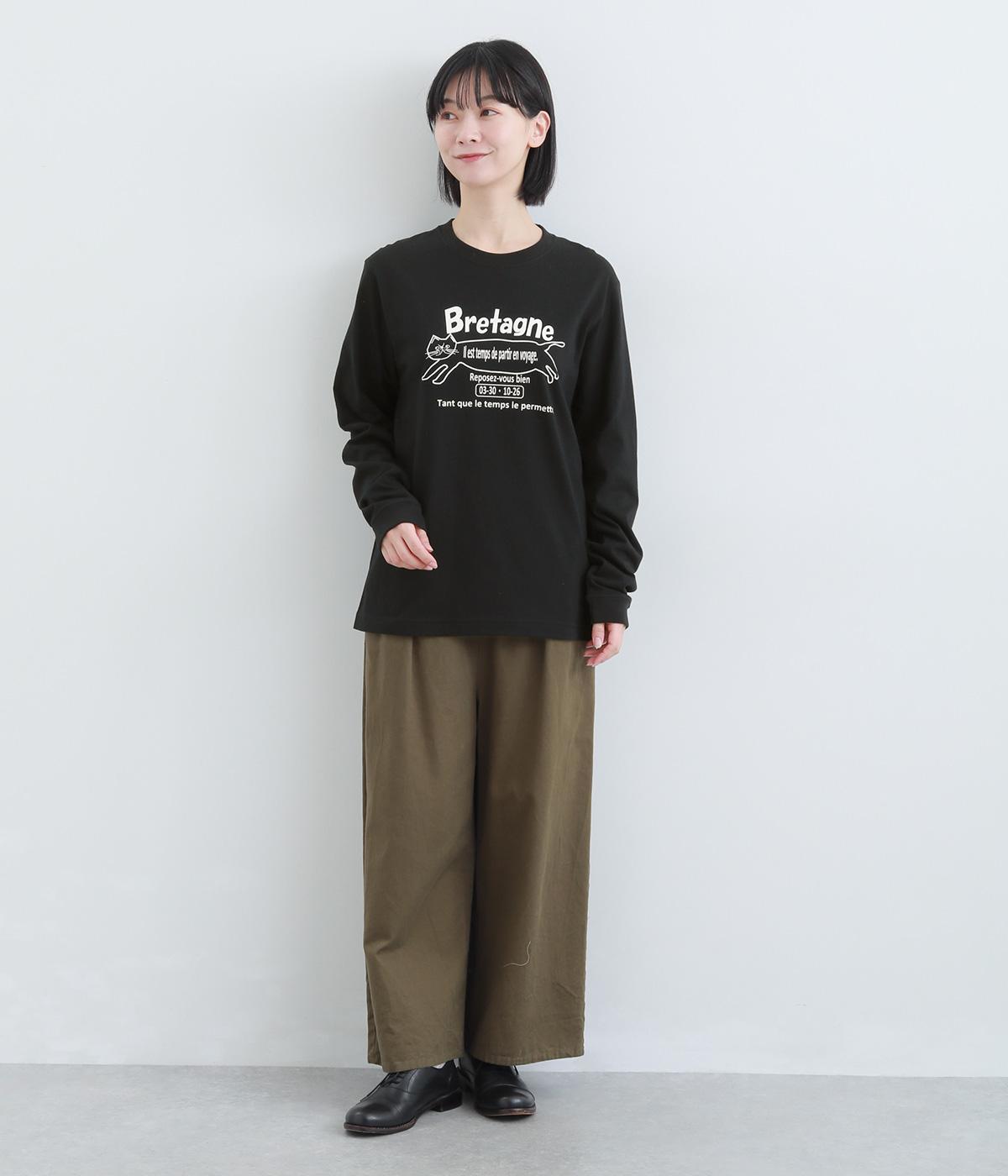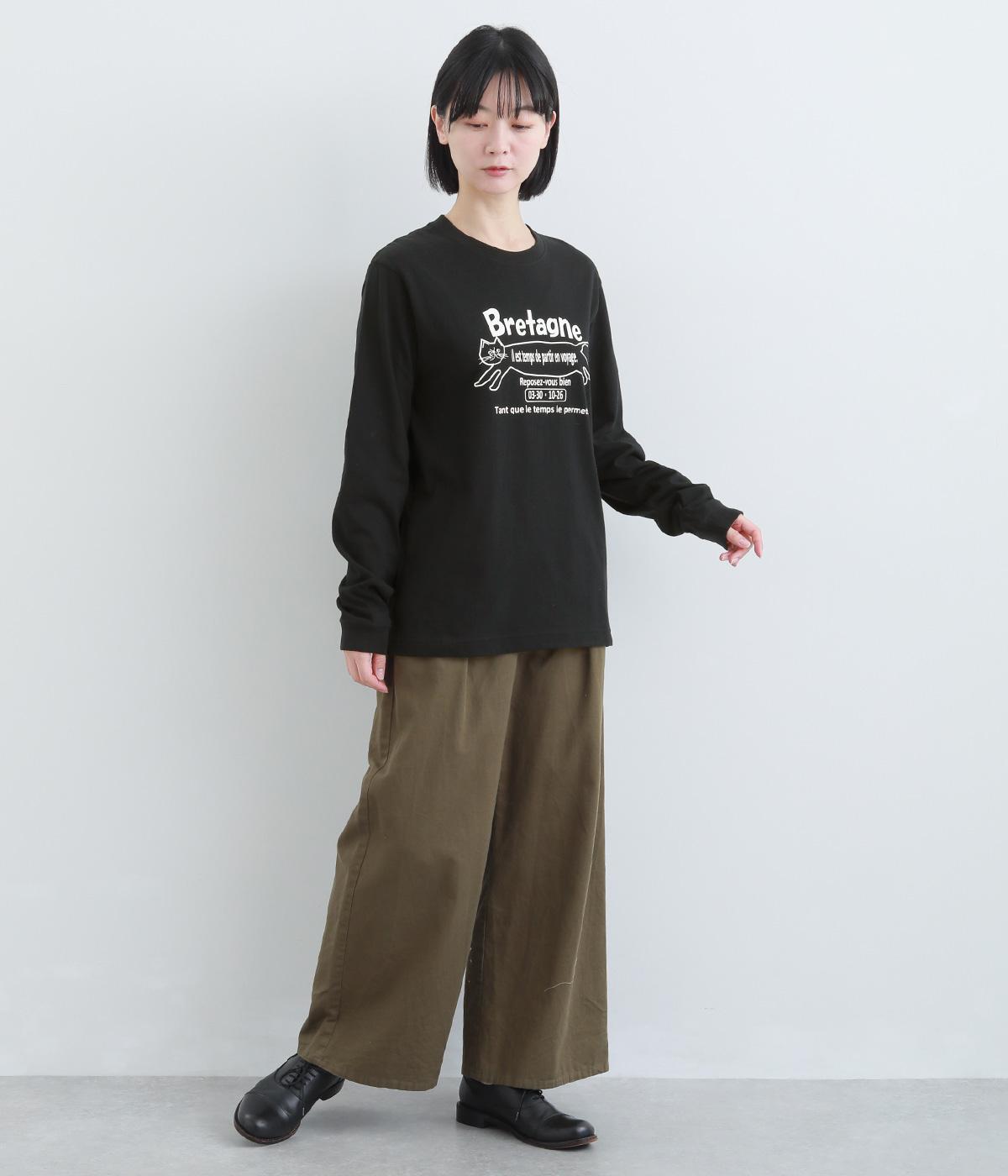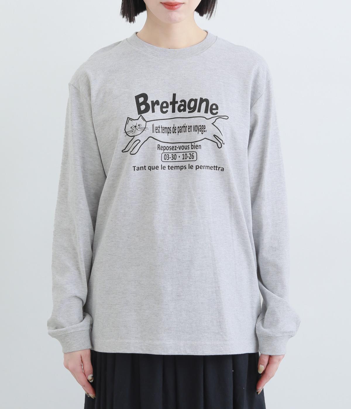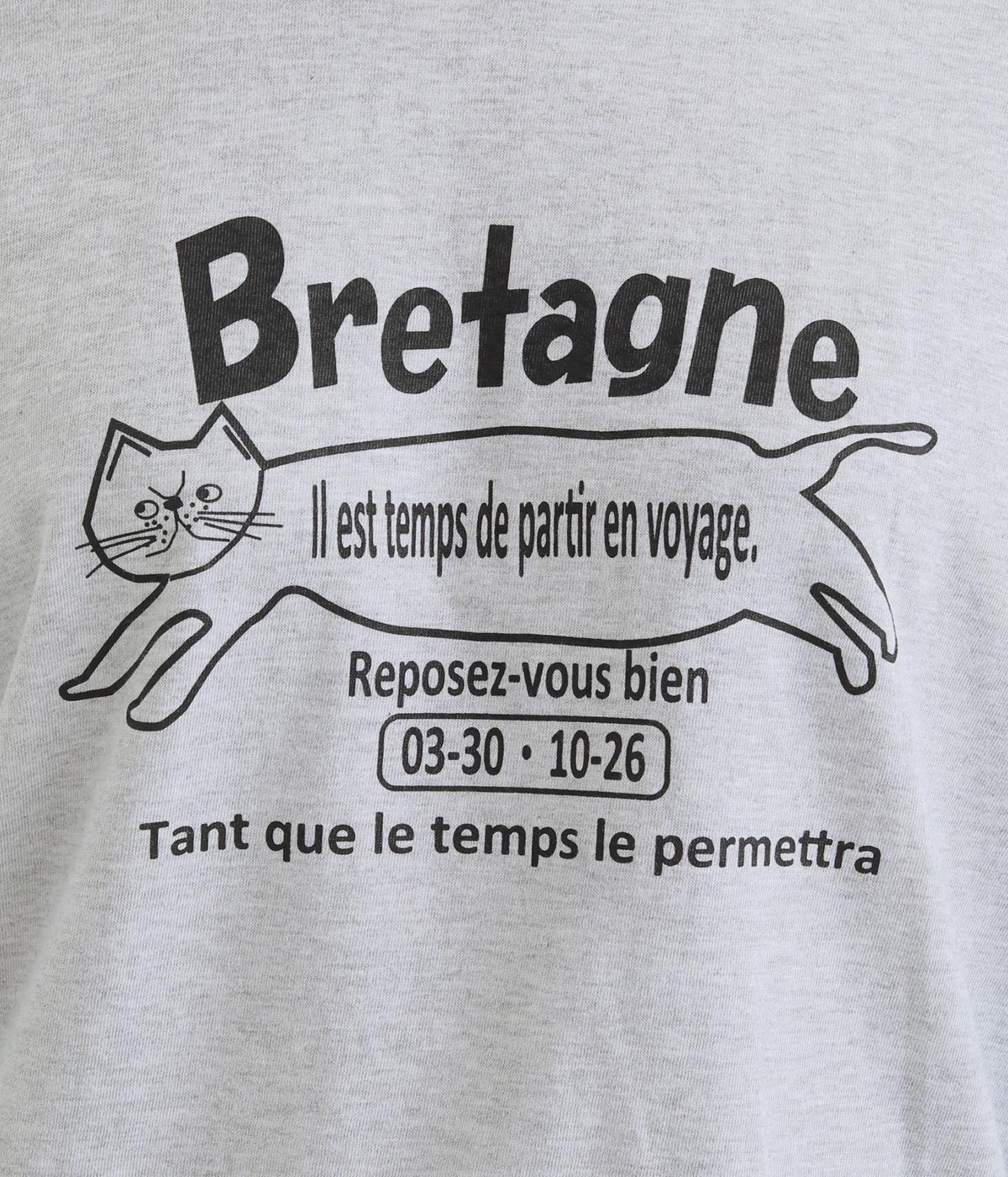 愛嬌のある表情が目をひくネコのイラストに、フランスのブルターニュ地方への旅にいざなうメッセージロゴを合わせました。ストンとした落ち感でリラックスした着心地。スカートにもパンツスタイルにも好相性です。