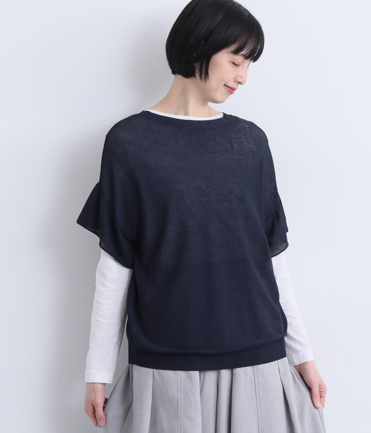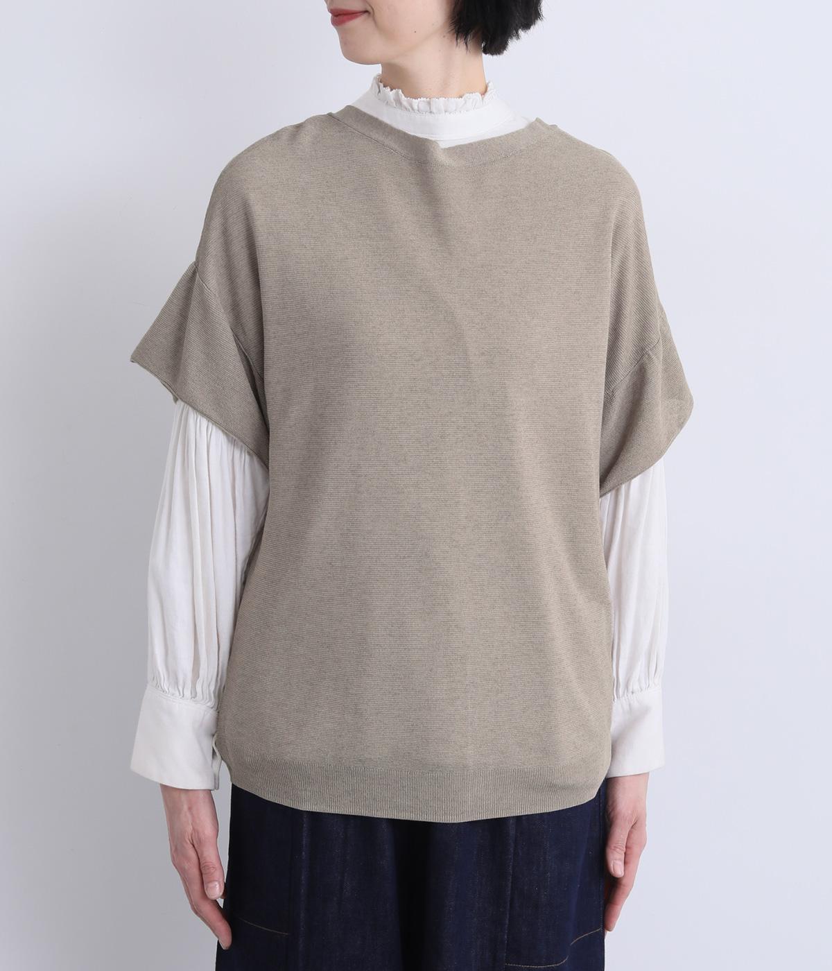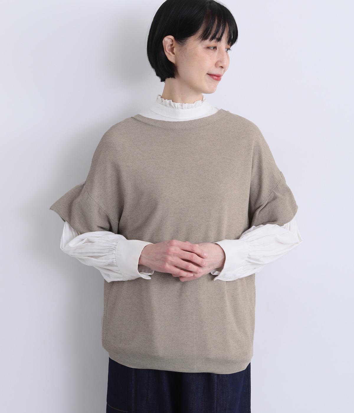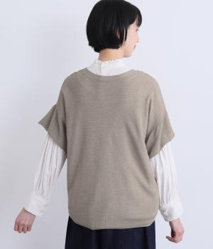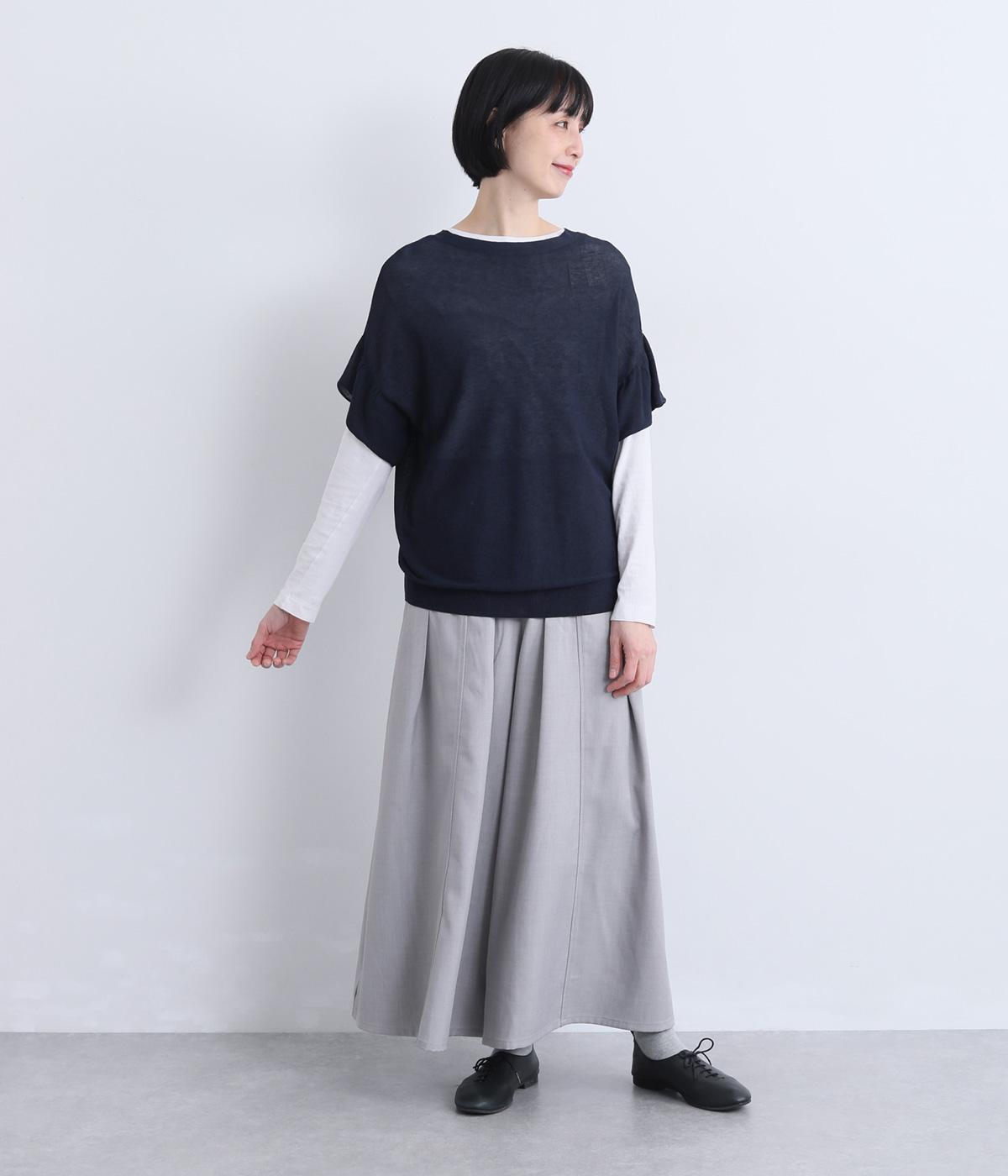 フレアスリーブで女性らしいニュアンスを足したニットプルオーバー。ボタンあきでカーディガンのように羽織ったり、後ろあきにしたり、前後2wayで着こなしの幅も広がります。しなやかな落ち感があり、レイヤードスタイルも品よくまとめてくれる一枚。