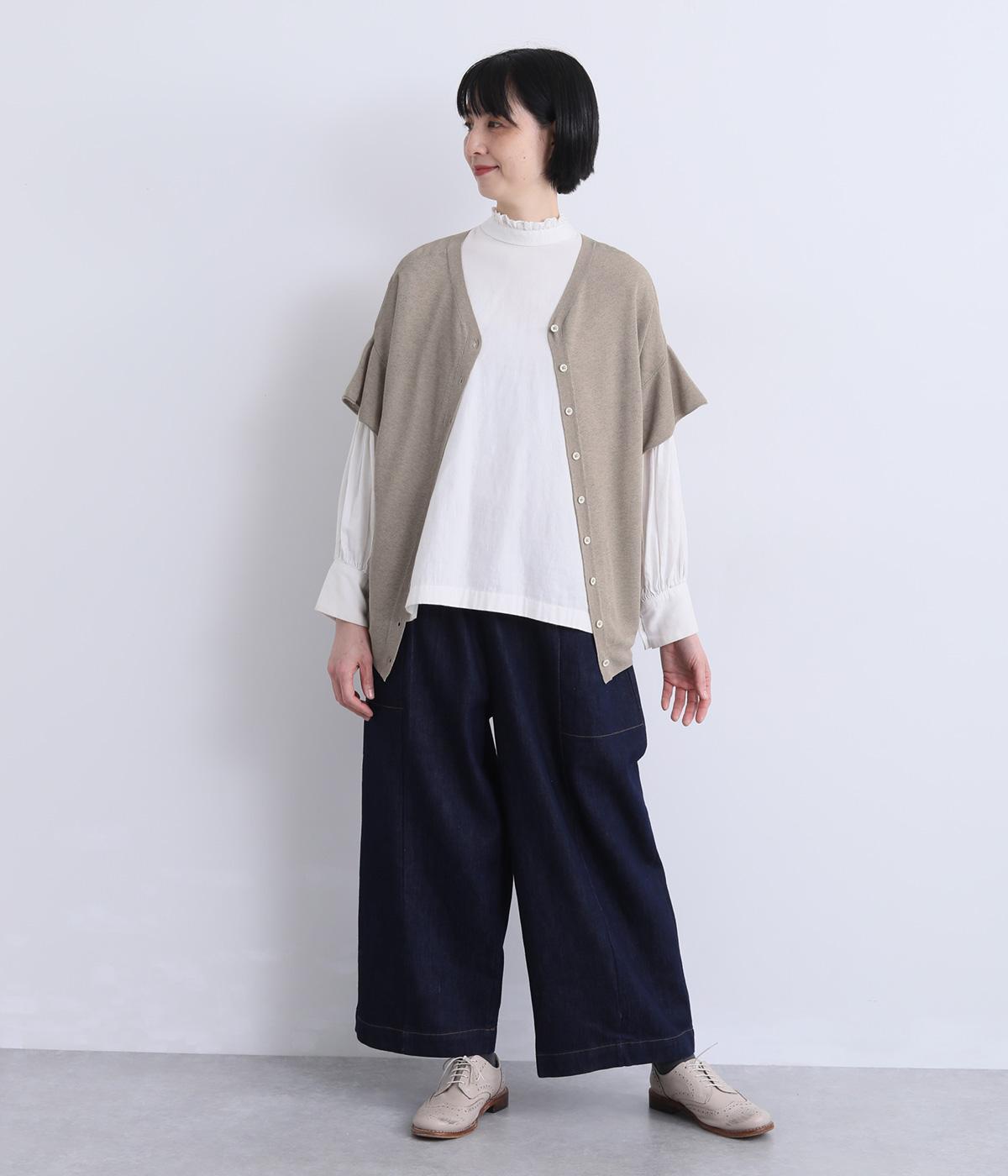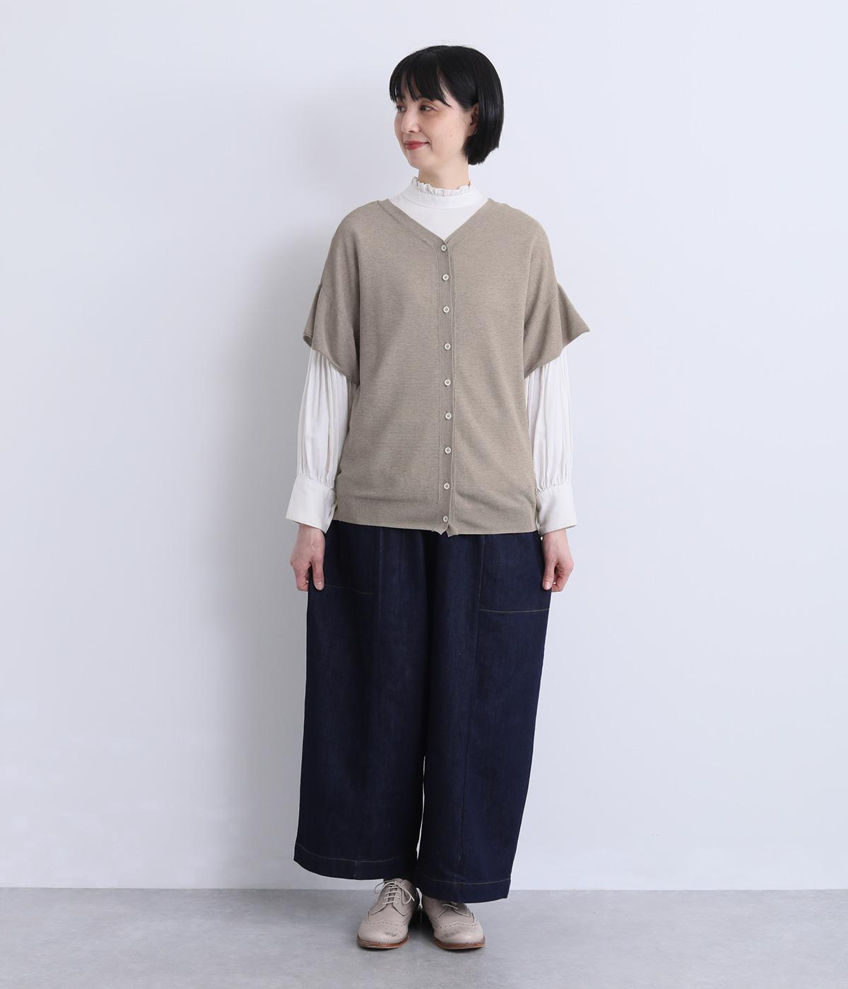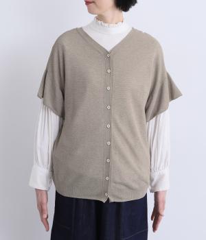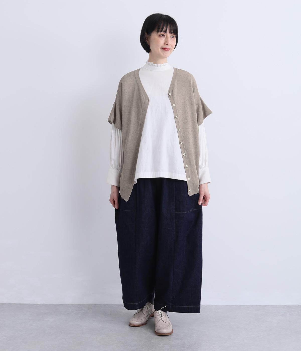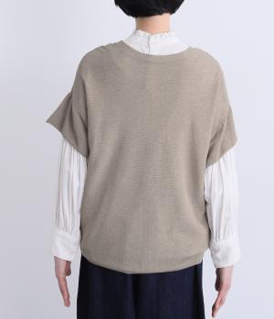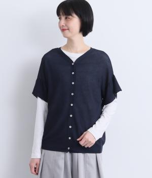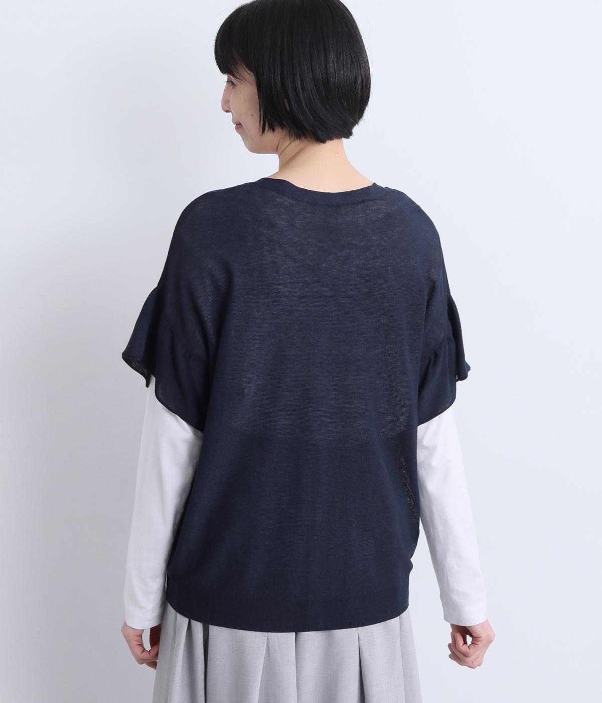 フレアスリーブで女性らしいニュアンスを足したニットプルオーバー。ボタンあきでカーディガンのように羽織ったり、後ろあきにしたり、前後2wayで着こなしの幅も広がります。しなやかな落ち感があり、レイヤードスタイルも品よくまとめてくれる一枚。