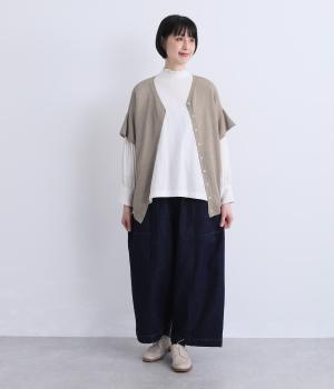 レーヨンをベースにスーピマコットンやウールを混紡したニットを使用。ドライタッチで肌離れが良く、しなやかな落ち感が極上の着心地を叶えます。