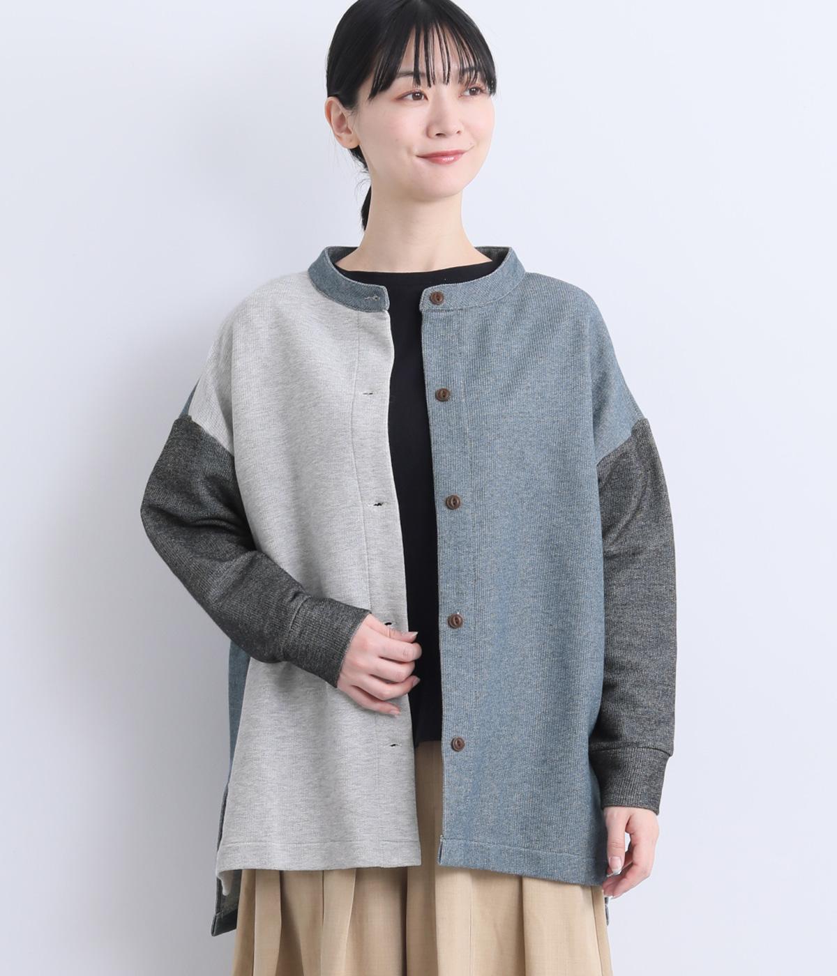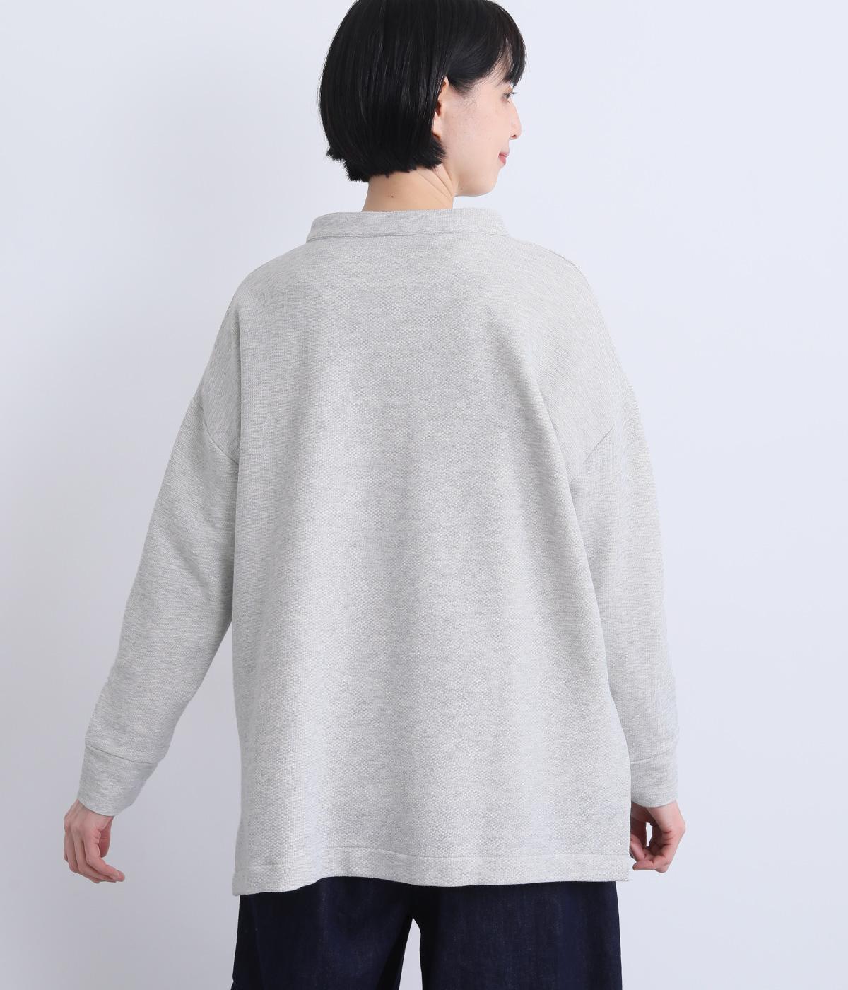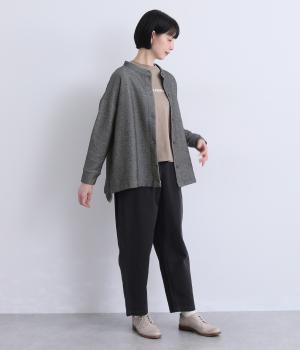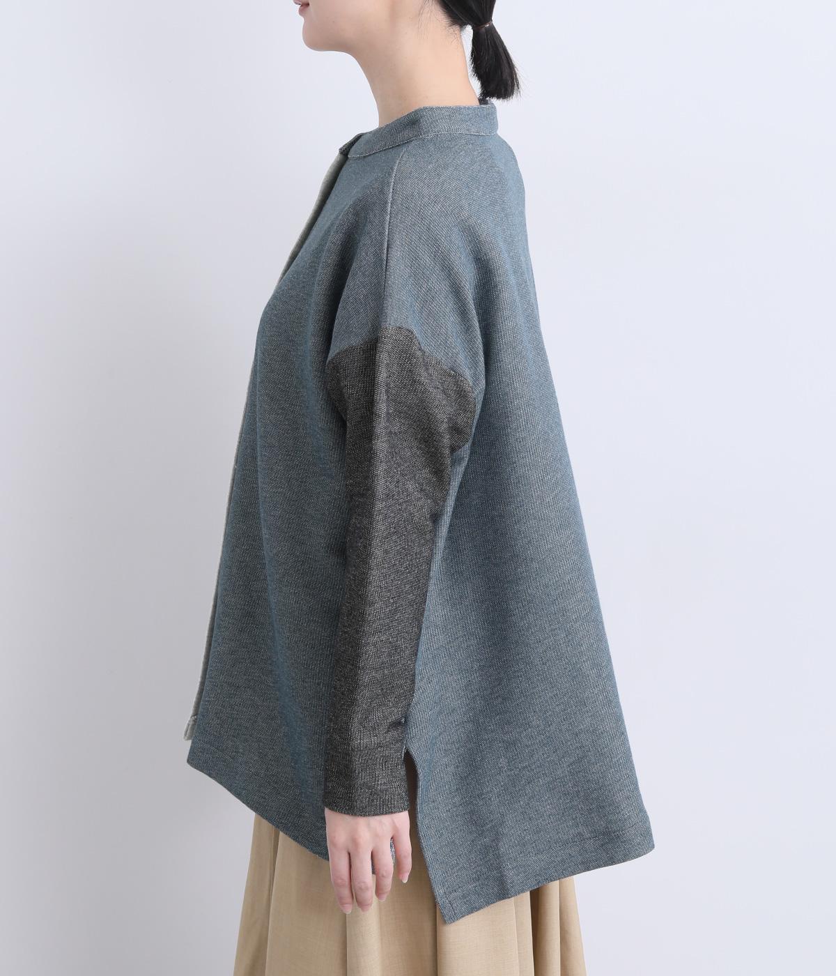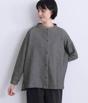 身幅にややゆとりを持たせてラフに羽織りやすいワイドカーディガン。すこし立ち上がったクルーネックが顔まわりに適度な抜け感を与えます。前後差のある着丈にサイドスリット入りでボトム合わせもすっきりと。