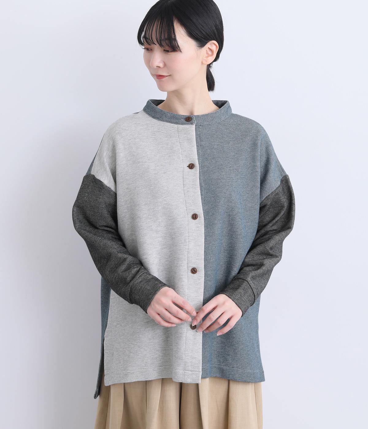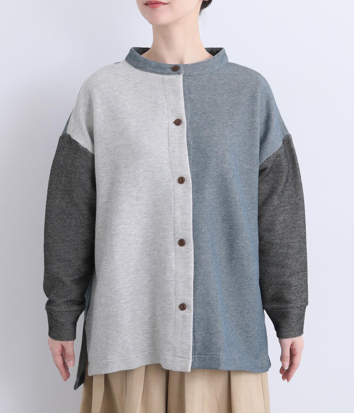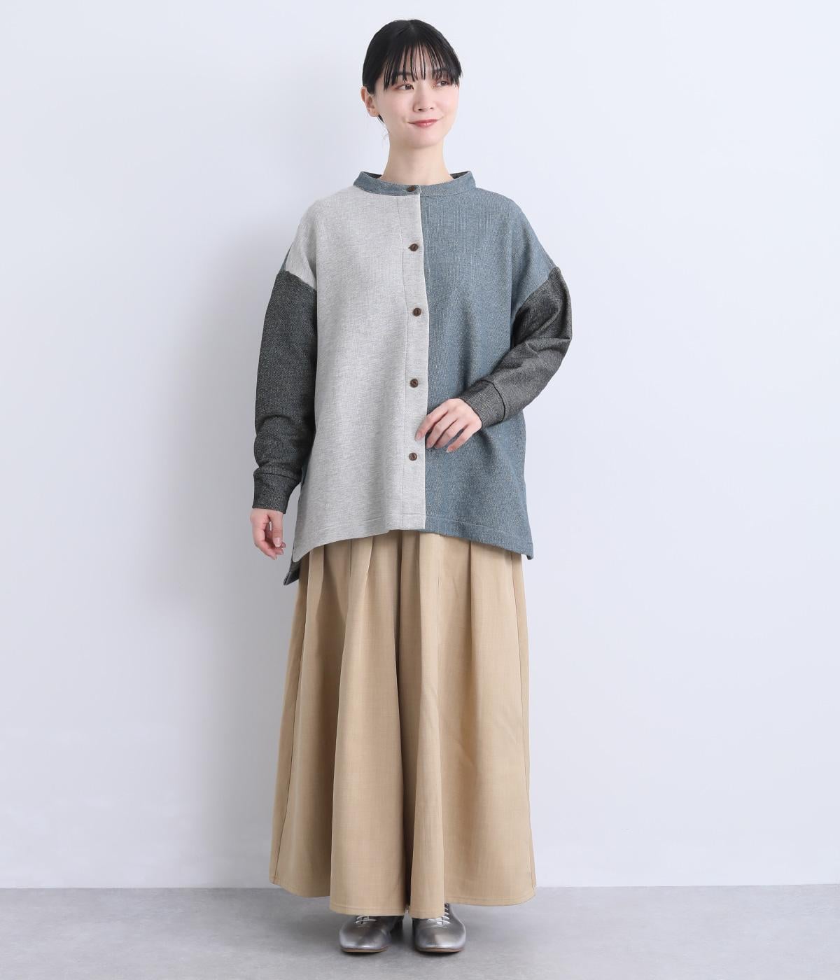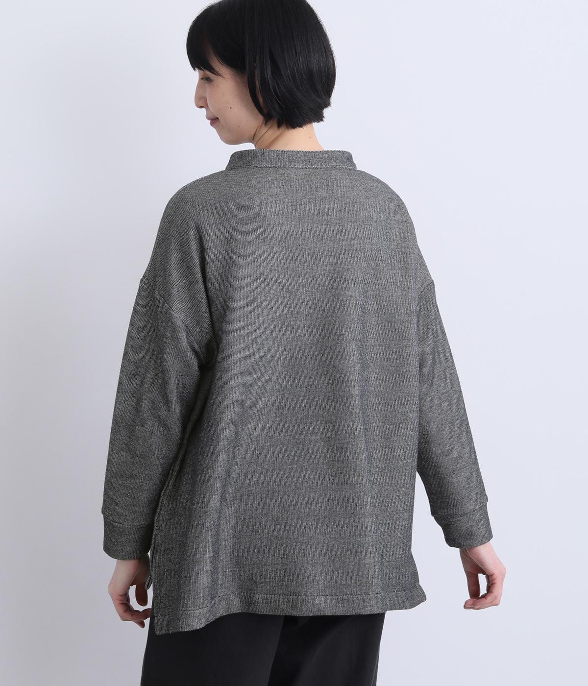 身幅にややゆとりを持たせてラフに羽織りやすいワイドカーディガン。すこし立ち上がったクルーネックが顔まわりに適度な抜け感を与えます。前後差のある着丈にサイドスリット入りでボトム合わせもすっきりと。