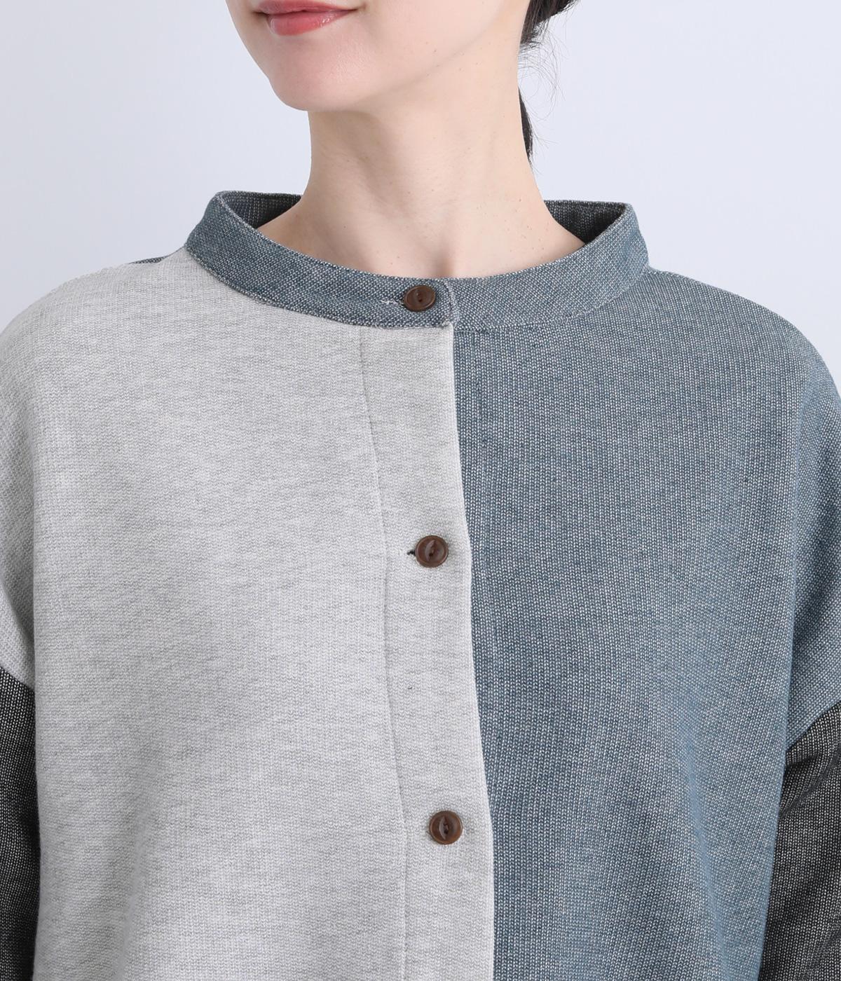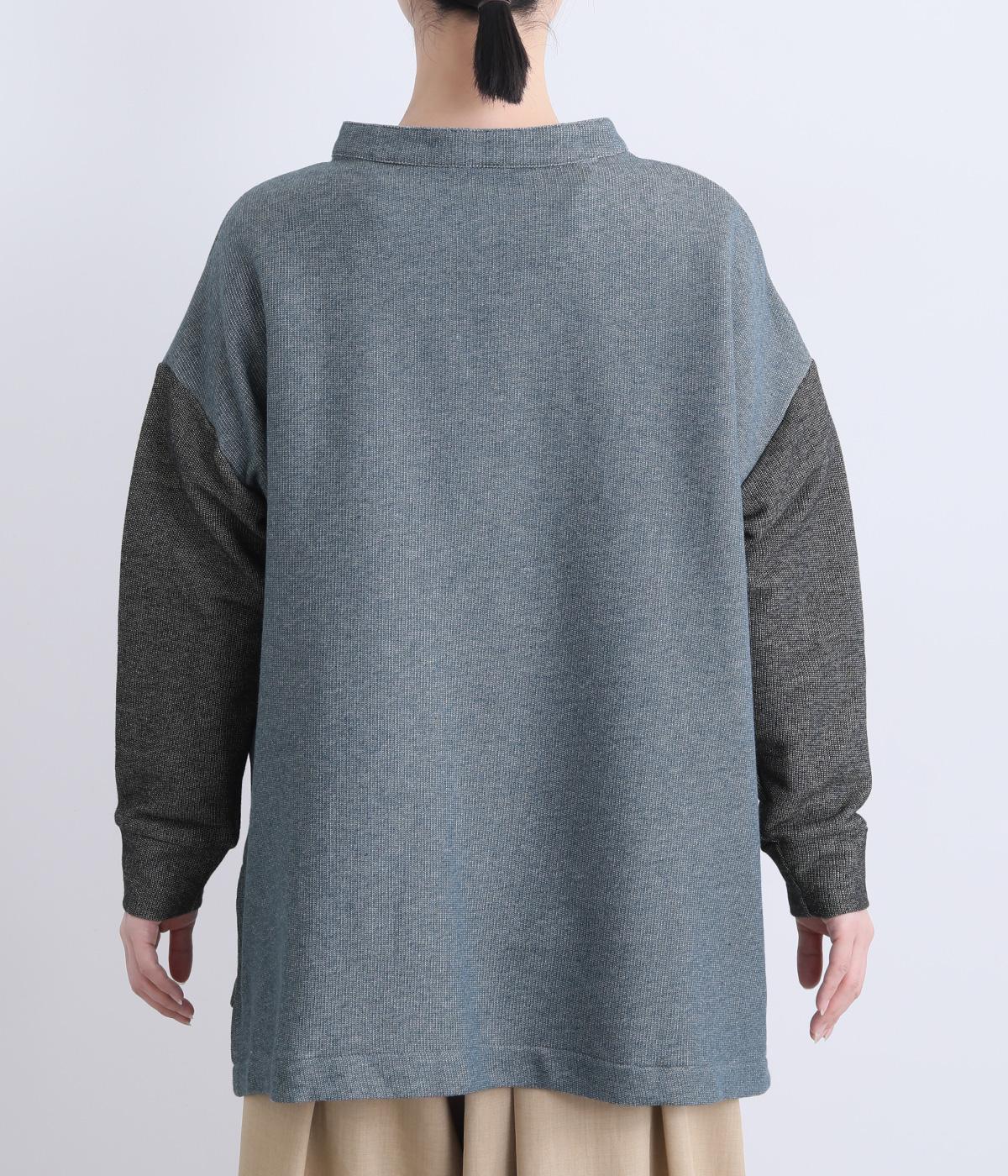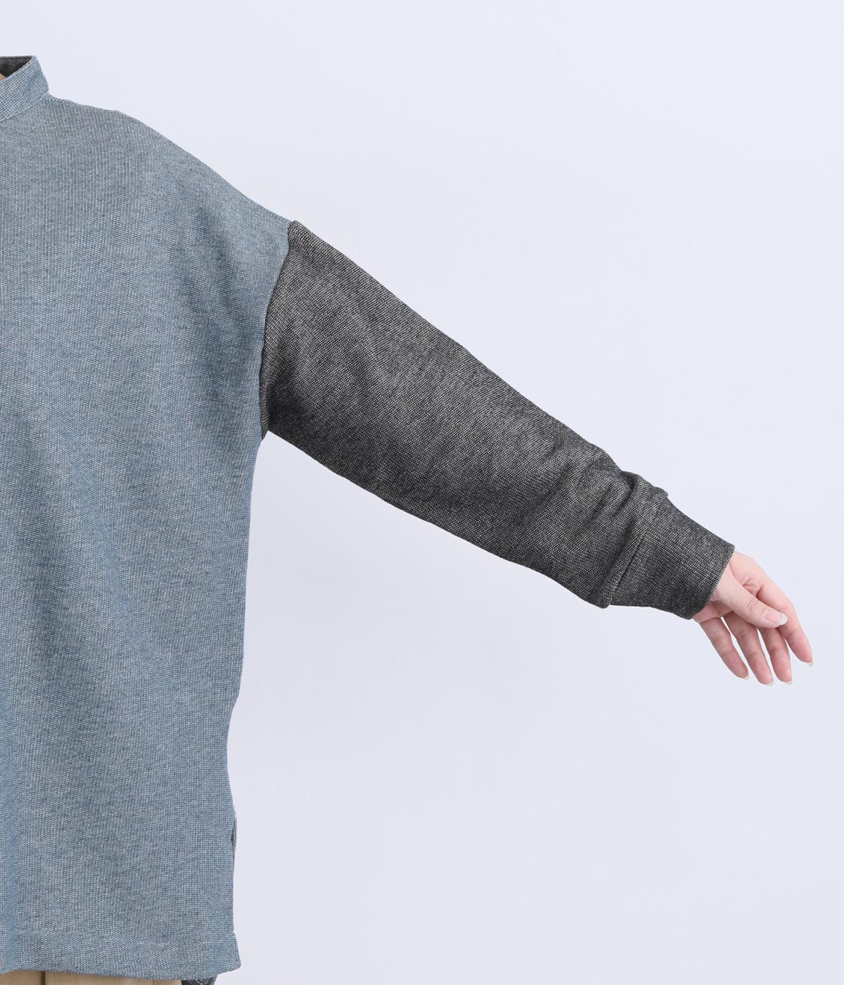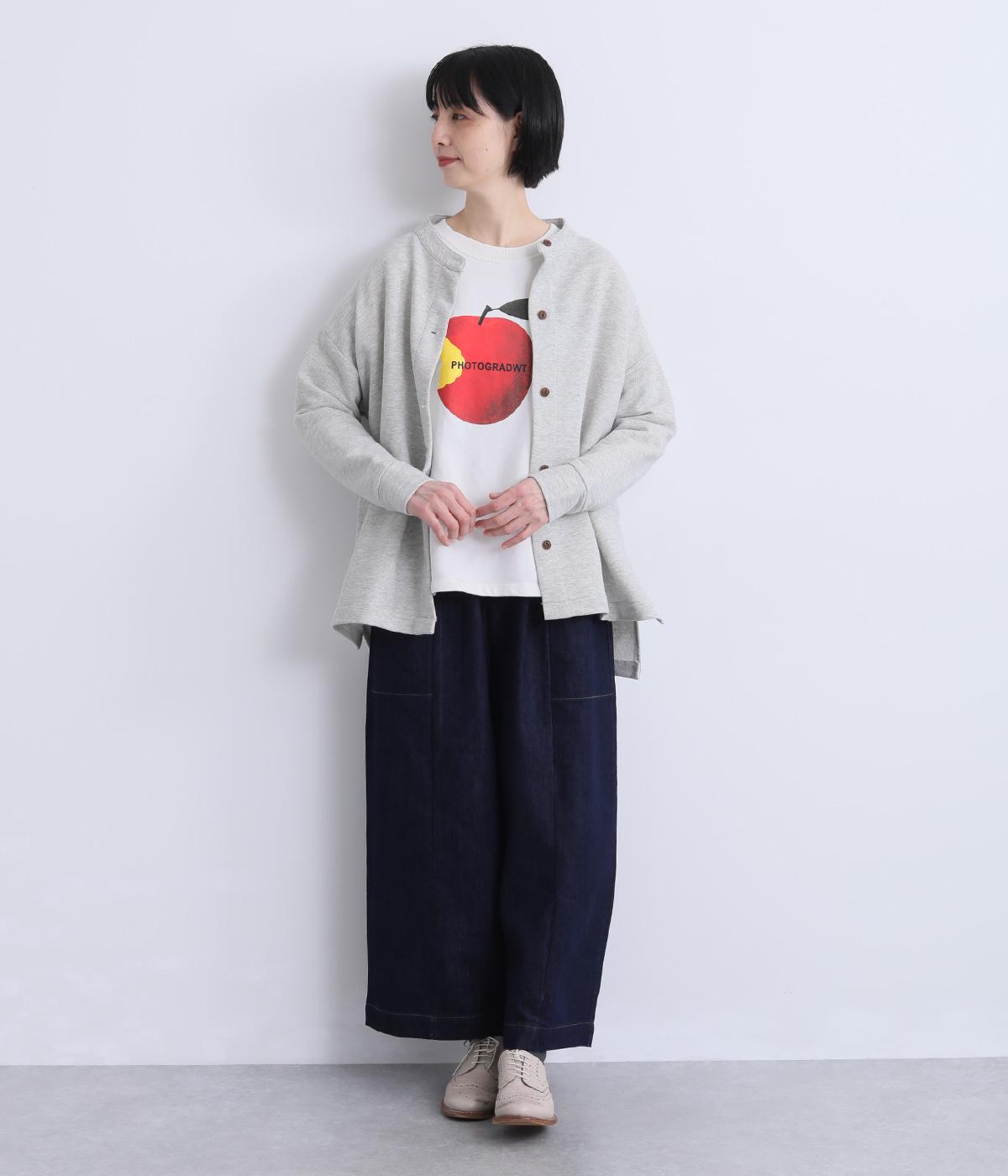 カジュアルでタフな表情をもたせたデニム風のコットンカットソーを使用。タテに伸びやすく着心地も考慮した生地でリラックス&イージーな仕上がり。