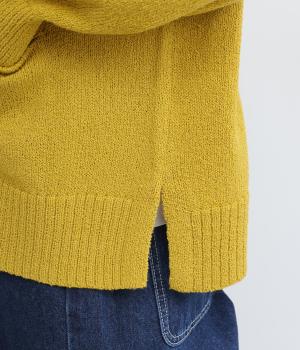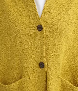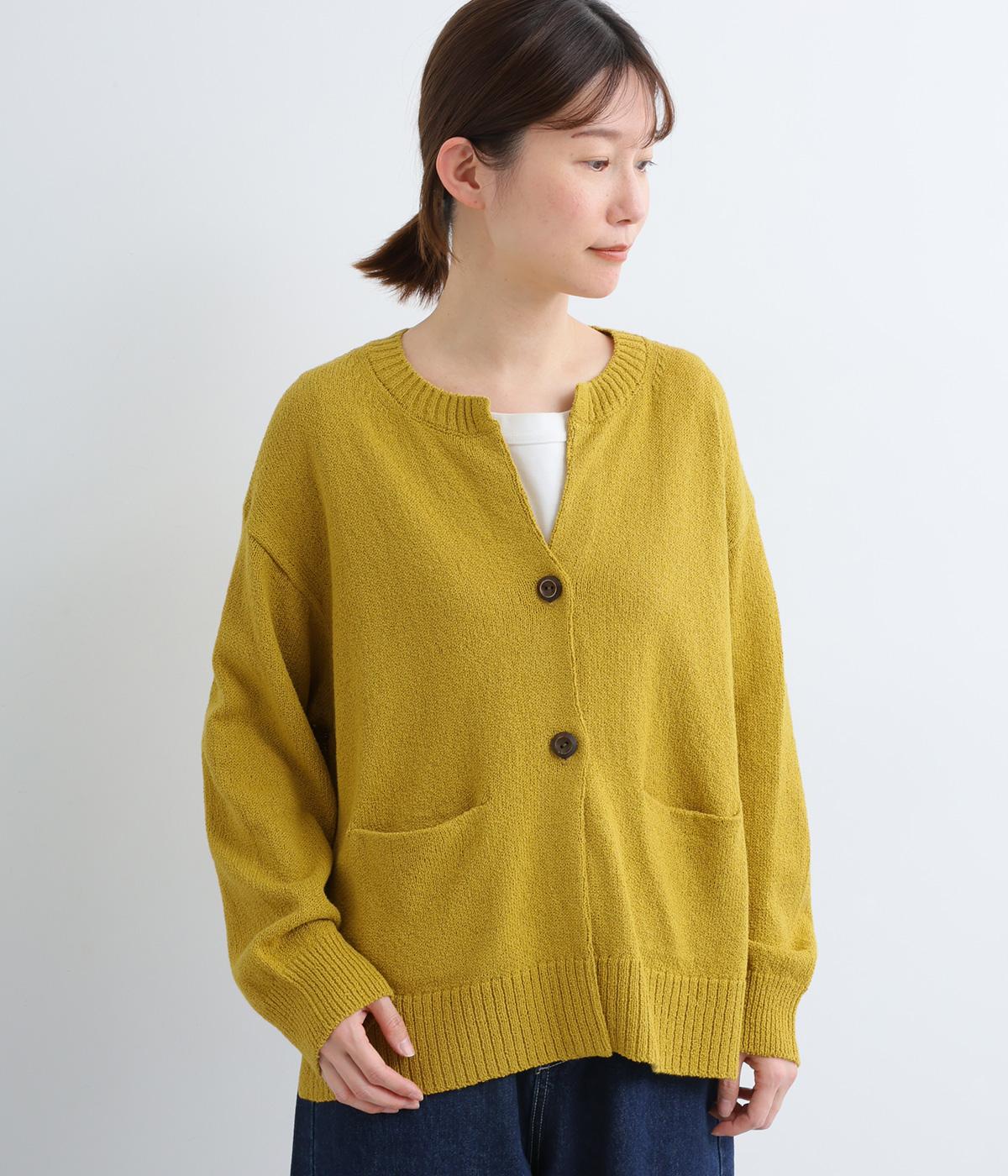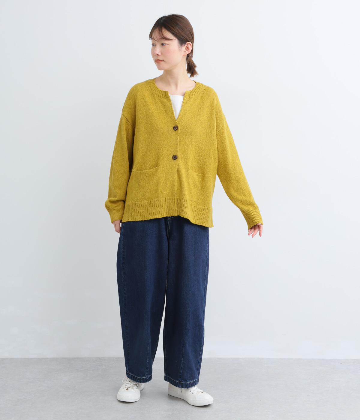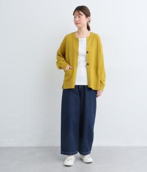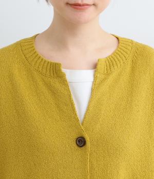 サッと羽織るだけでこなれたレイヤードスタイルが完成する2ボタンのカーディガンです。フロントのウッドボタンがさりげないアクセントに。すっきりと開きのある首元やサイドスリットが抜け感を添えます。