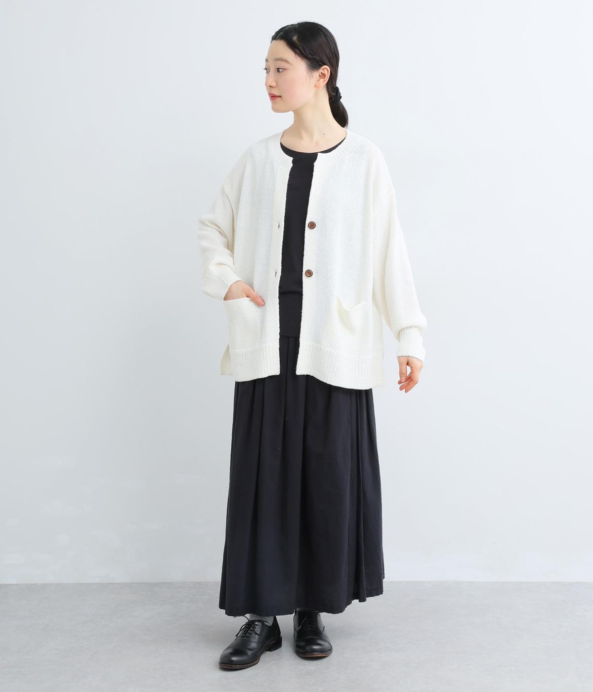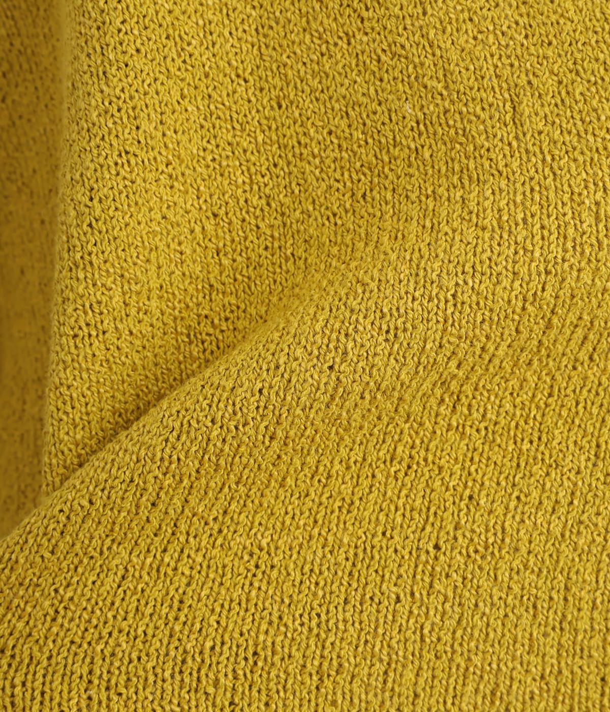 シャリッとした手ざわりでやわらかな着心地のニット生地です。さらりと軽やかで伸縮性があり、ふんわりと体にフィットする素材感です。