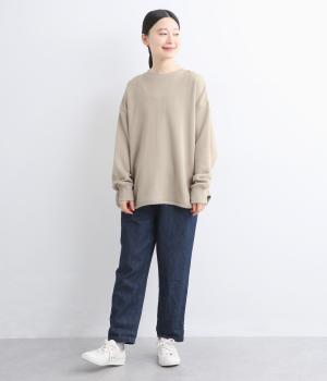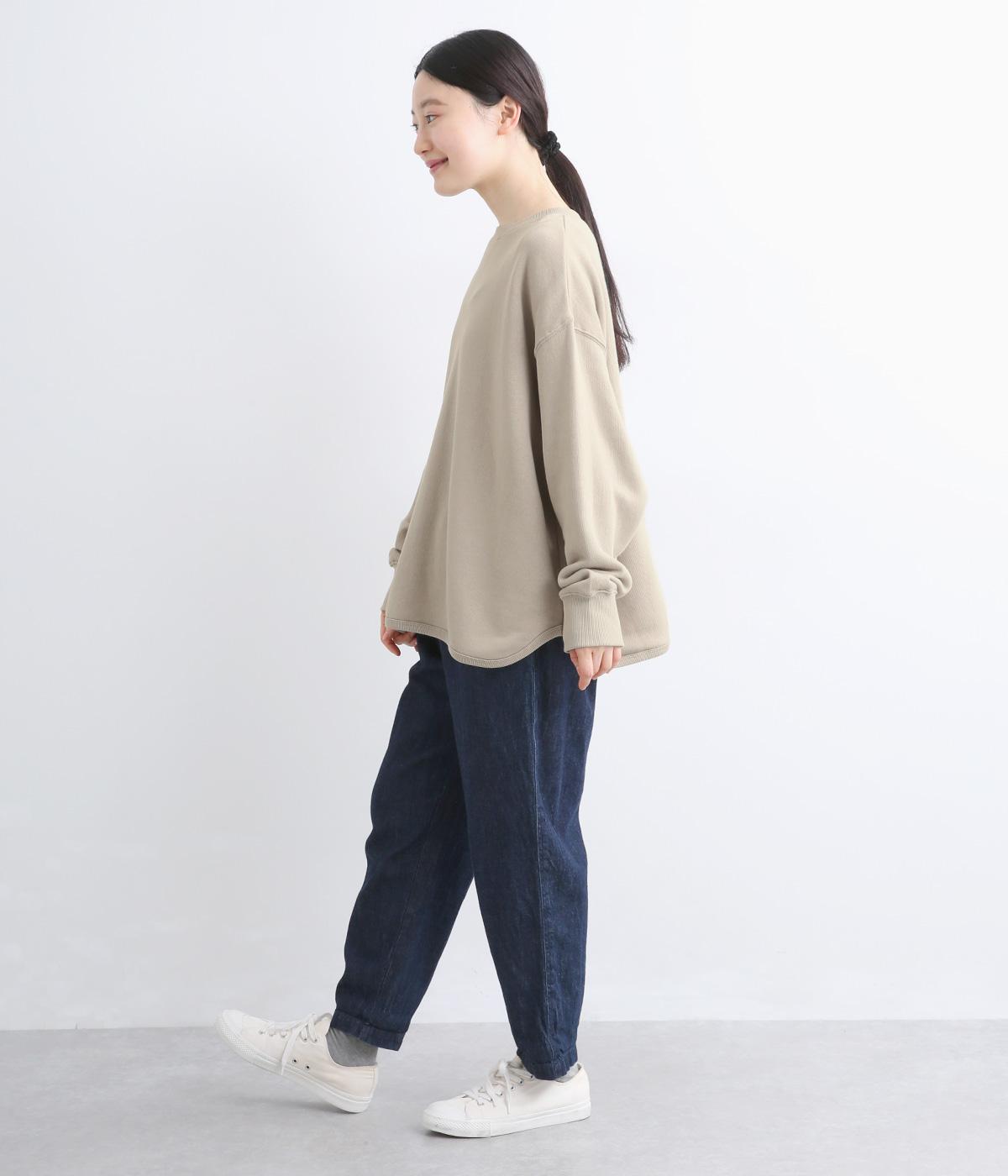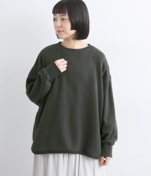 綿とレーヨンの柔らかさと落ち感に、リネンの清涼感とシルクのなめらかさが融合。パイル裏毛特有のふっくらとした肌ざわりと表情豊かな風合いが特徴の素材です。