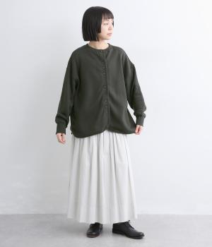 ふんわりとボリュームがありながらも軽やかな着心地のカーディガンを前後で着用可能な2wayで仕立てました。前開きは変則的なボタン配置がさりげない個性を添え、曲線を描く裾のラインがやわらなか表情を引き立てます。