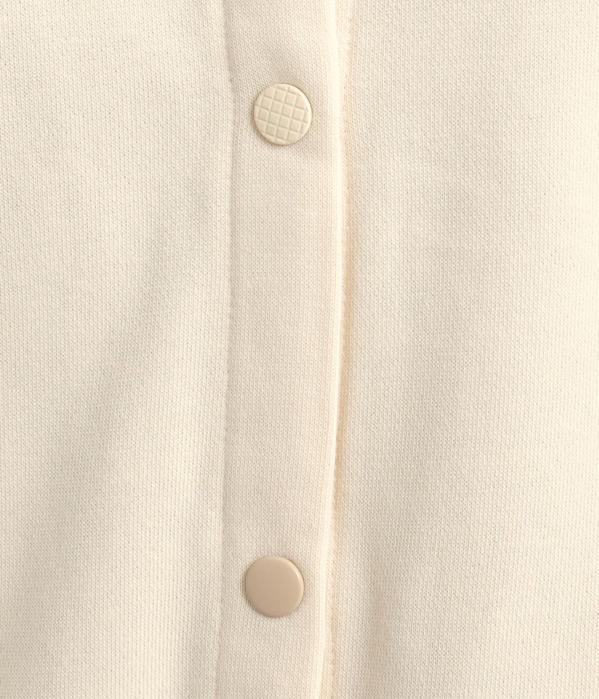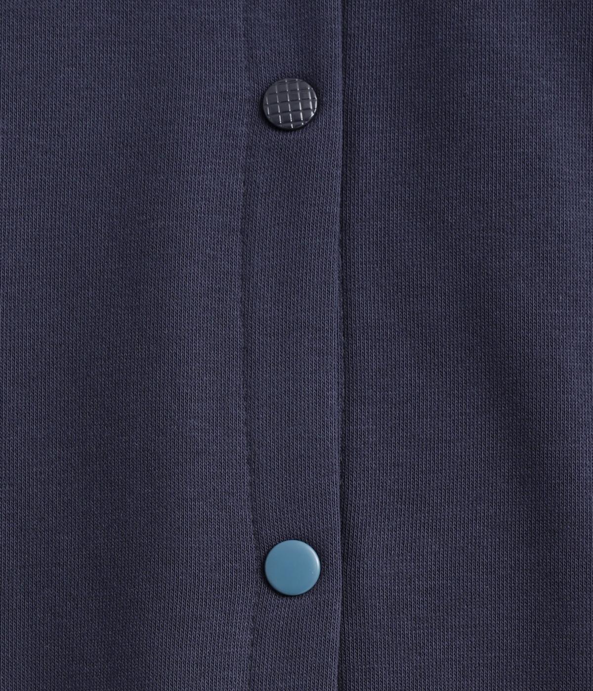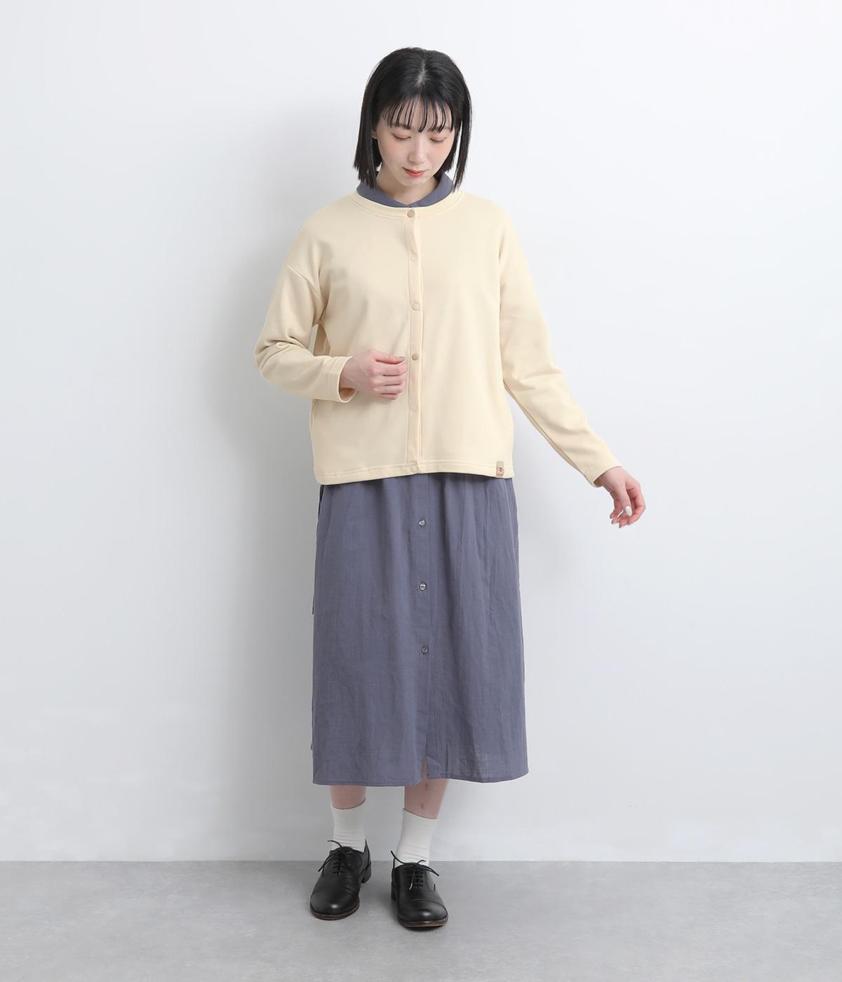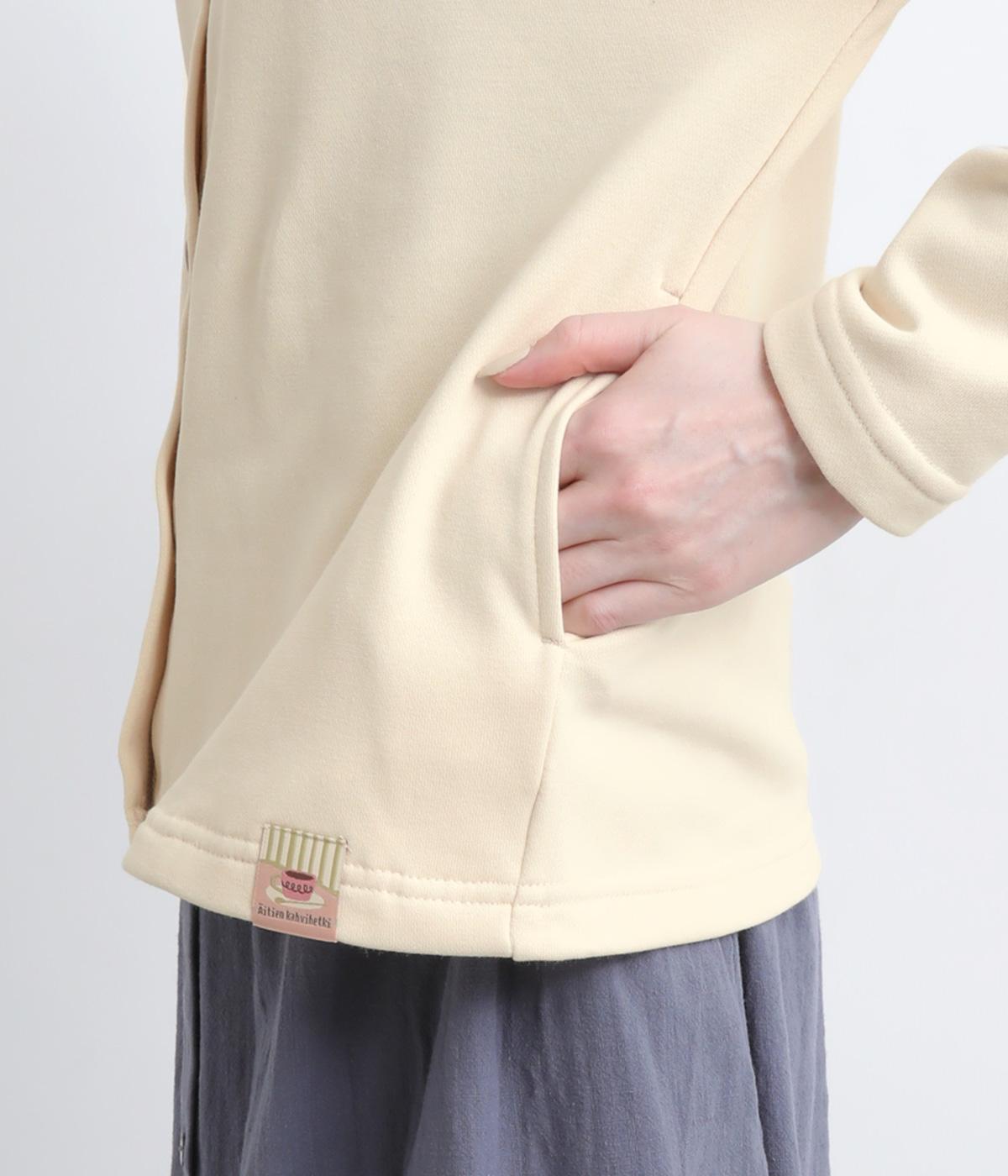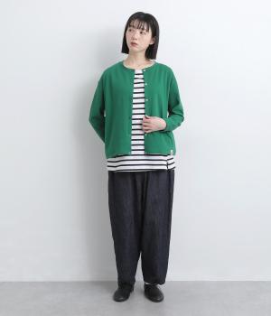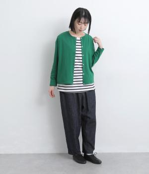 イージーケアな素材でデイリーに着まわせるカットソーカーディガン。配色ボタンやリングドット、ワッフルをイメージした彫り柄などさまざまなボタンを配してさり気なく個性を発揮。Tタイムのピスネームもポイントです。