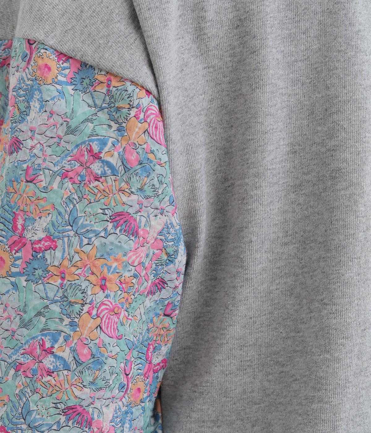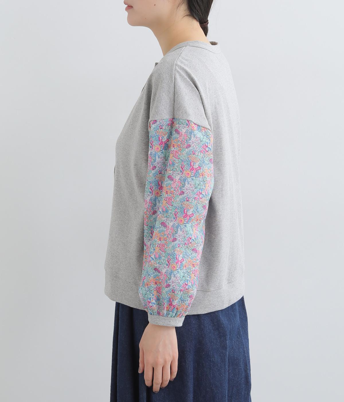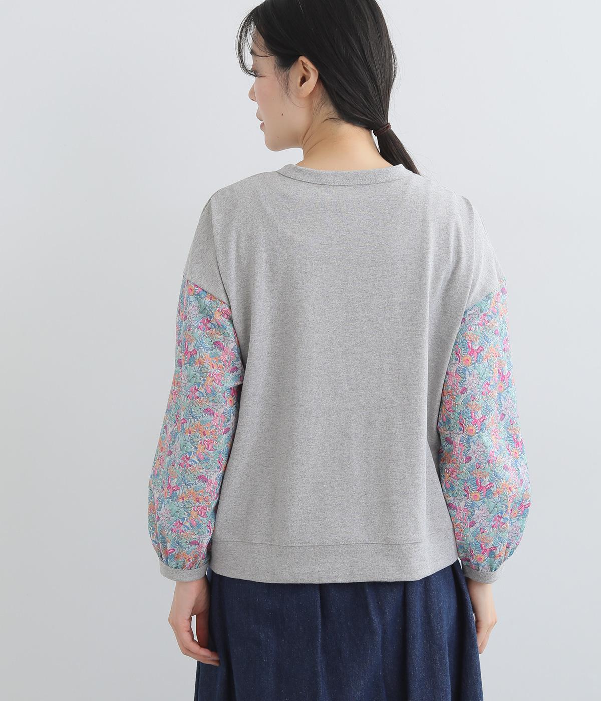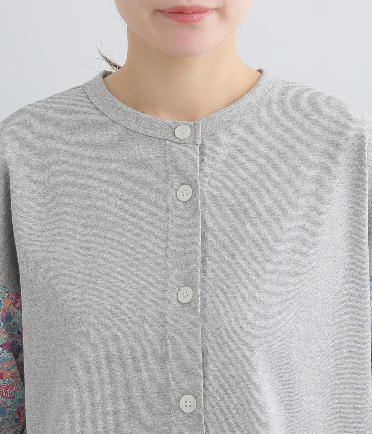 ほどよい厚みと適度なハリ感がある14/BD天竺素材を使用しています。カジュアルリラックスな雰囲気が特徴です。袖部分はふんわりと軽いシャツ素材の切り換えになっています。