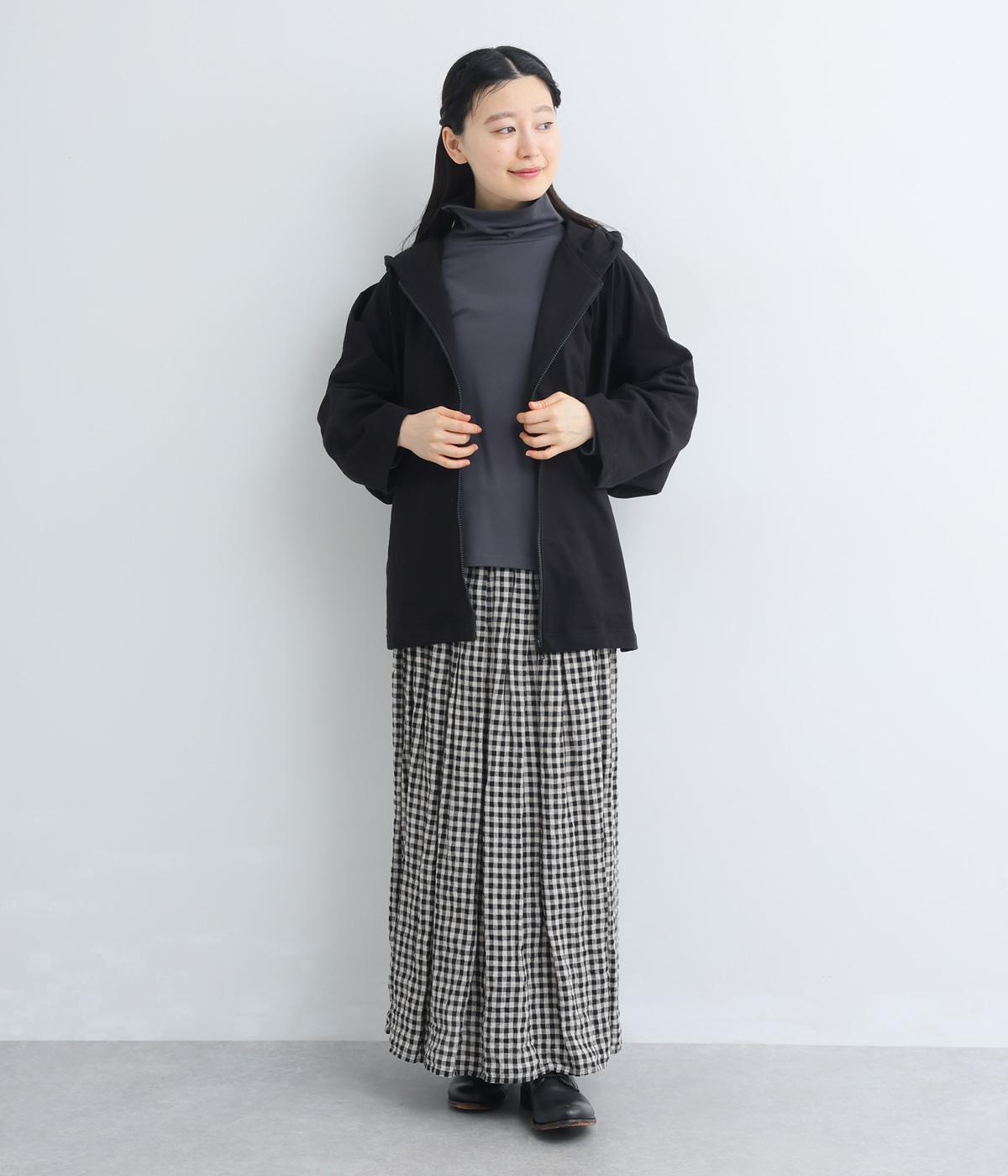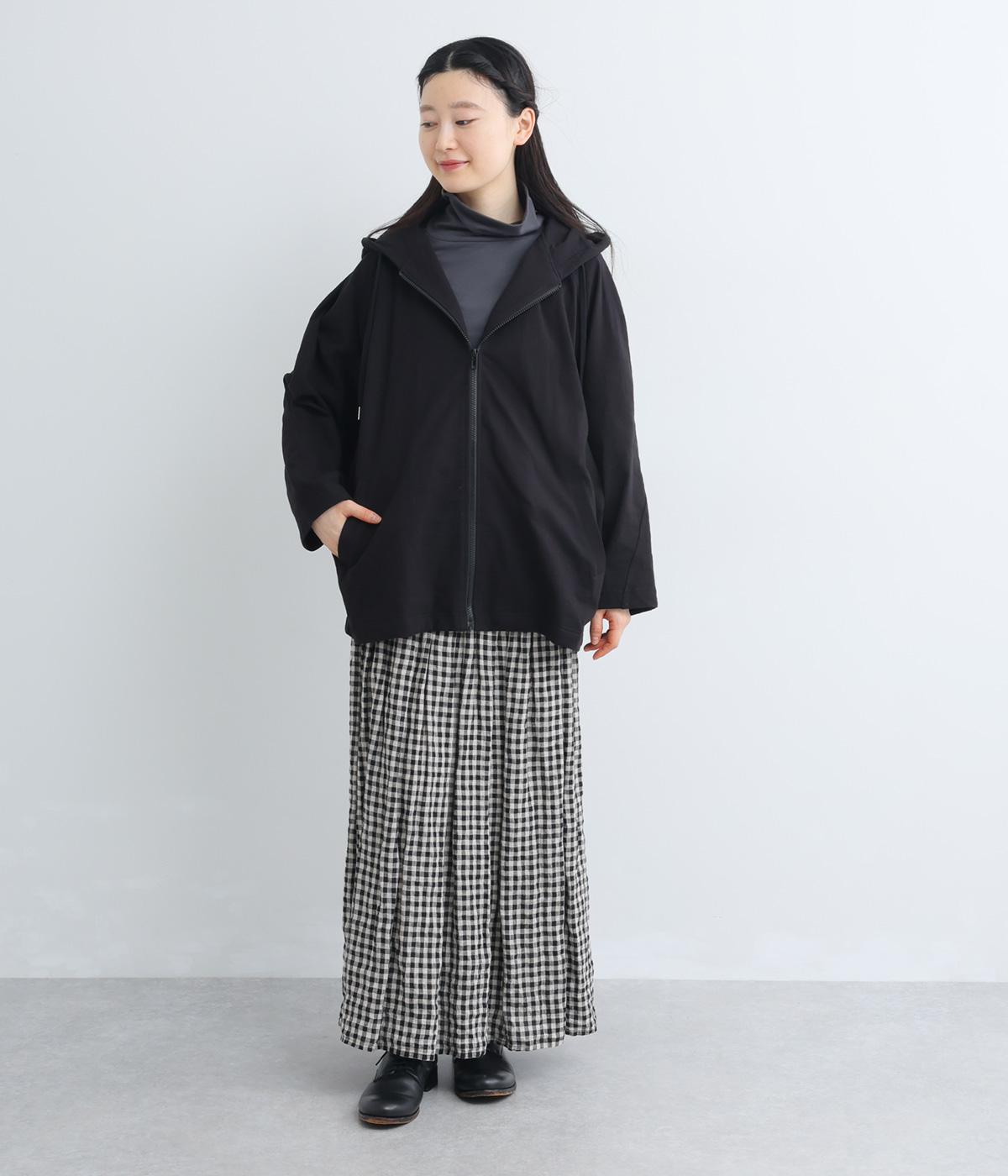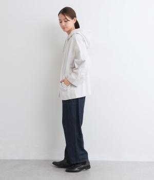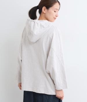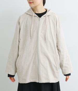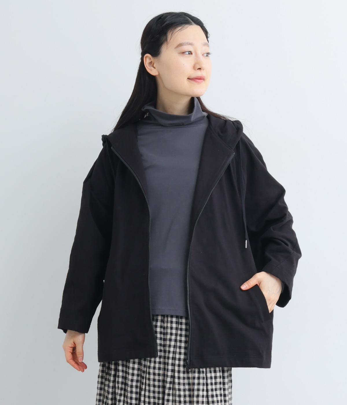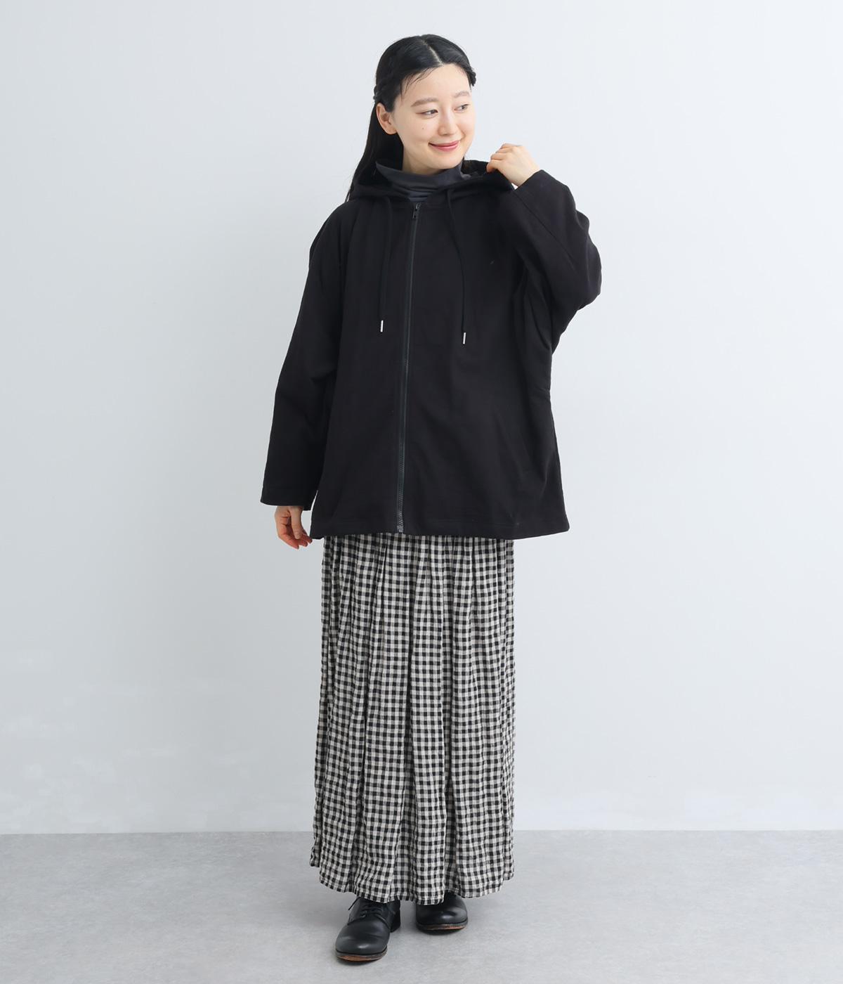 ゆったりとしたドルマンスリーブにワイドシルエットが特徴的なフードつきパーカー。がばっと羽織りやすいのでデイリーに活躍し、袖口や裾はあえてリブに切り替えずラフにまとめています。ファスナーも同色にまとめて統一感を。