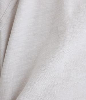 ナチュラルな風合いをより豊かに惹き立てた、ヴィンテージ感が特徴的なコットンスラブ天竺を使用。しっかりとした度詰め生地ながらも、着込んだようにくったりとしたユーズド感も魅力です。