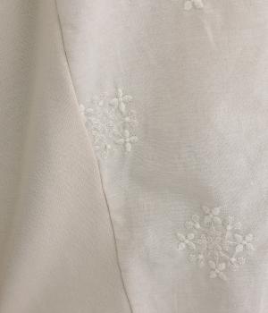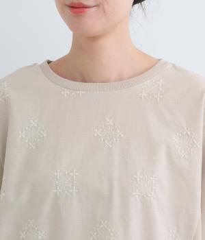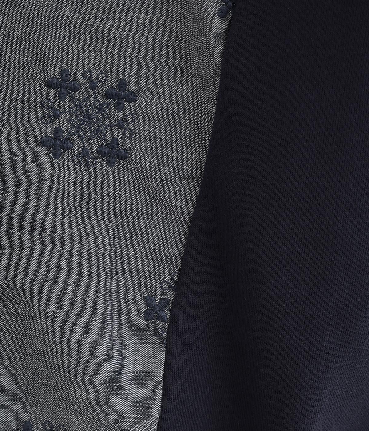 ふんわりとしたソフトな手ざわりが心地いいコットン生地に、刺しゅうをほどこしたリネン生地を組み合わせました。さらりと心地よく着られる、デイリーに寄り添う素材感です。