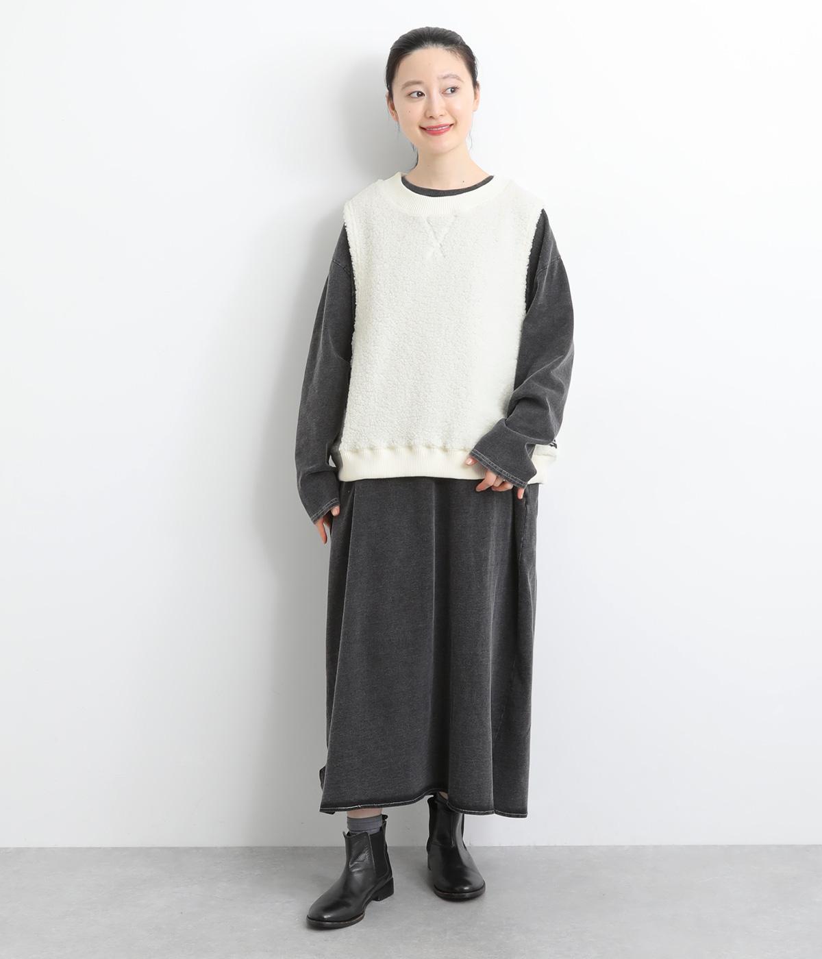 つぶつぶの優しい雰囲気の起毛感が魅力のボア生地です。やわらかな肌ざわりで軽やかな着心地が魅力。首元はリブ仕様で着脱のしやすさも◎。見た目にもあたたかく、季節感を楽しめる素材です。