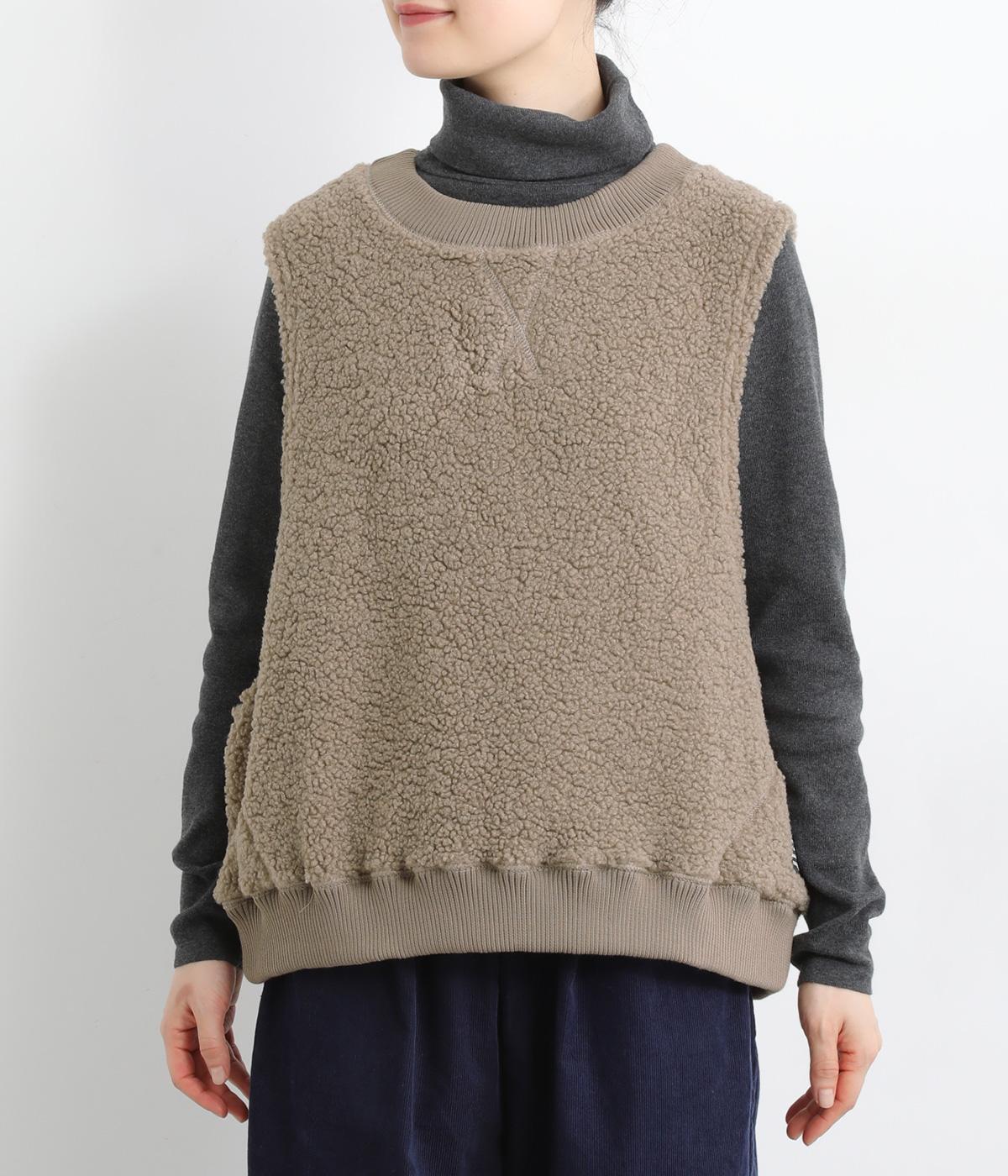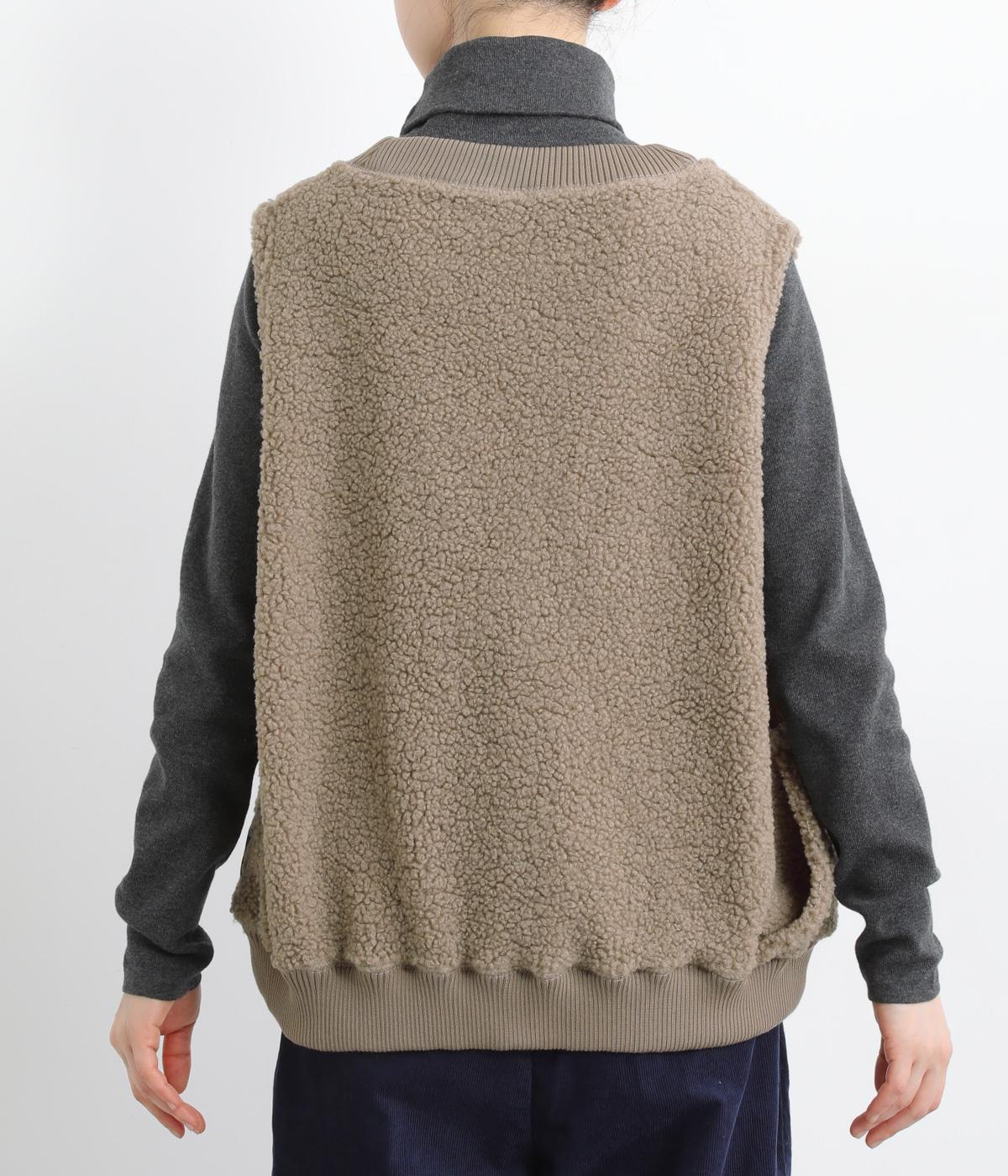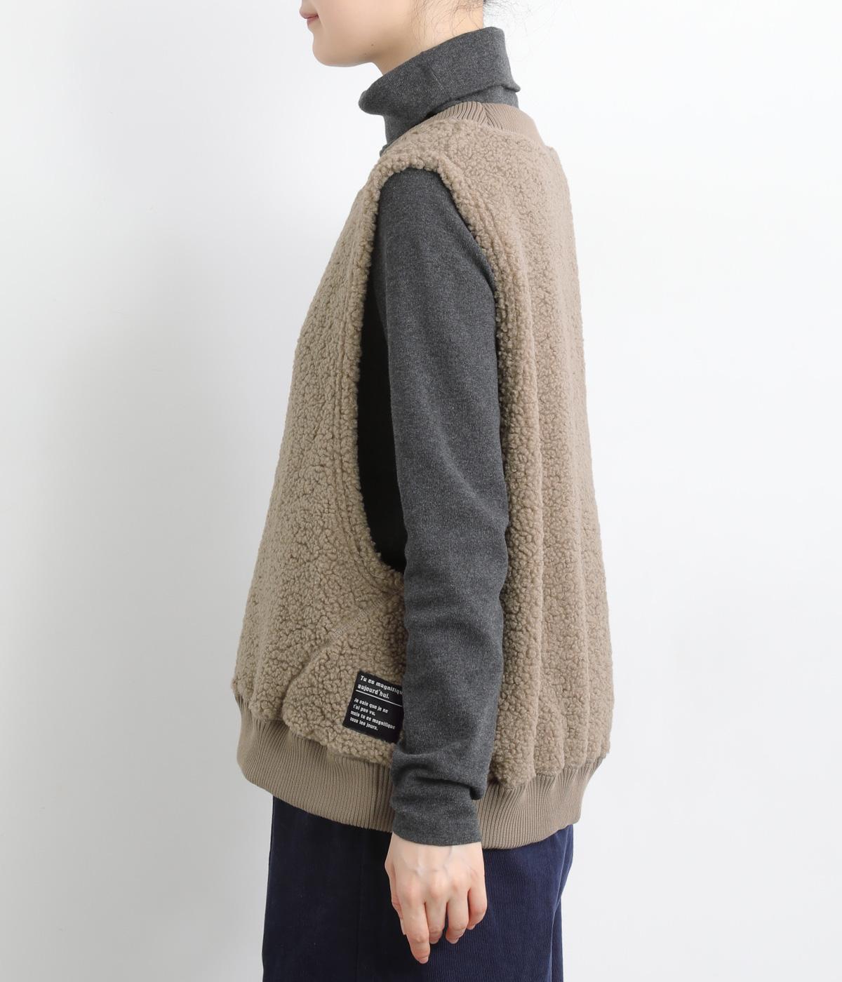 大きく開いたアームホールが特徴のボアベスト。こなれ感がありインナーも選びません。サイドのポケットが実用性も兼ね備えたアクセントになっています。重ね着スタイルに取り入れやすく、着こなしの幅が広がります。
