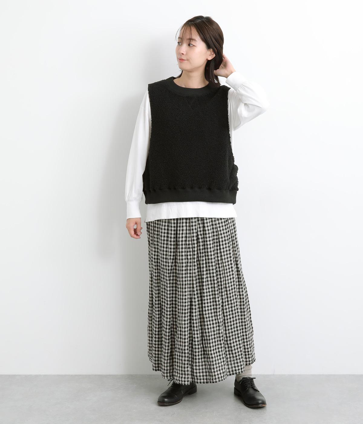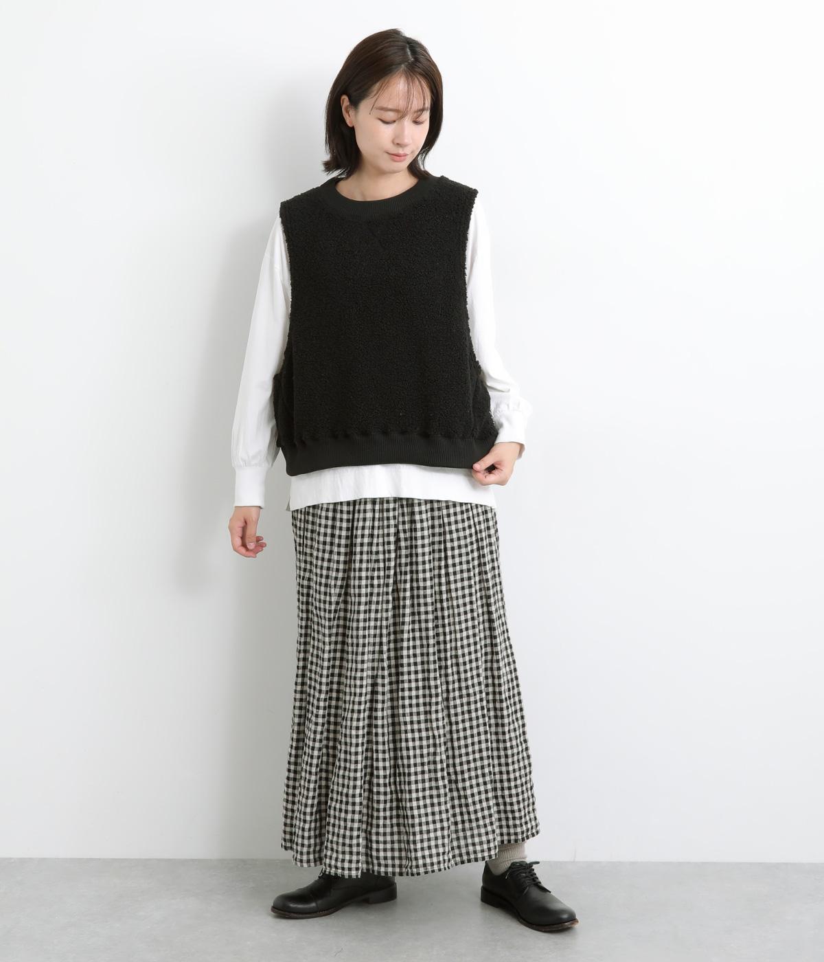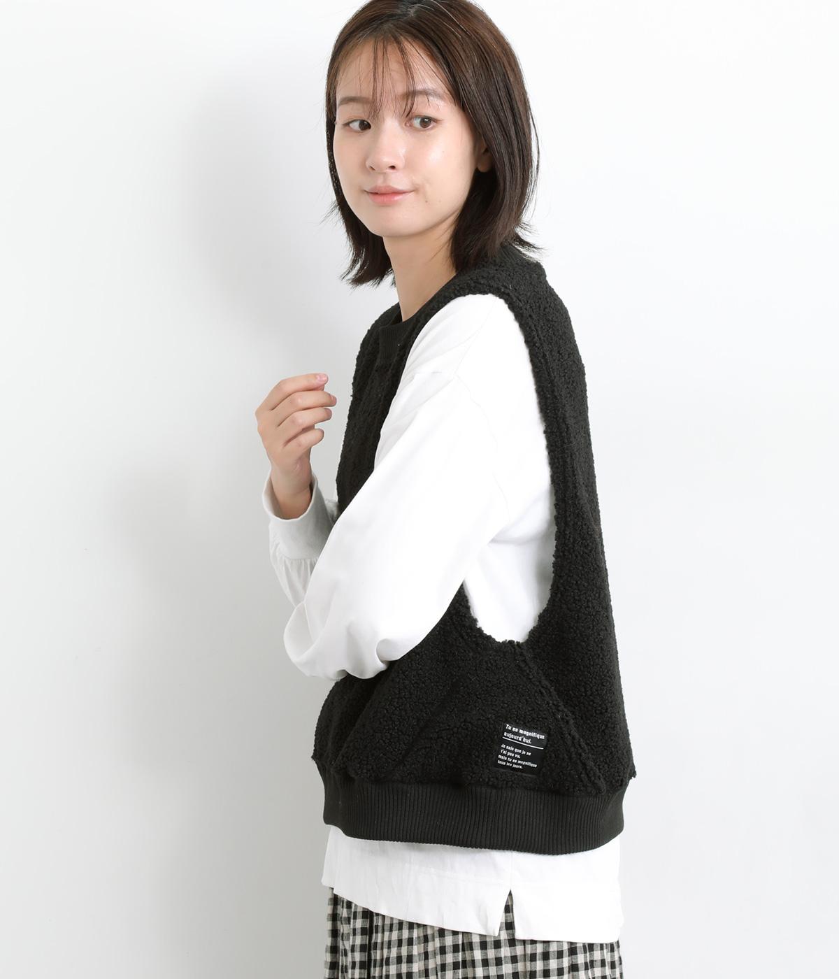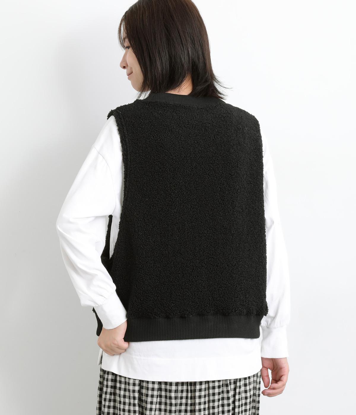 大きく開いたアームホールが特徴のボアベスト。こなれ感がありインナーも選びません。サイドのポケットが実用性も兼ね備えたアクセントになっています。重ね着スタイルに取り入れやすく、着こなしの幅が広がります。