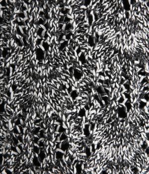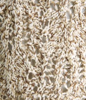 綿にポリエステルをミックスして軽やかに仕立てた混紡ニット。ほどよく伸びて着心地がよく、リーフ柄編みの表情と抜け感のバランスがいい編み立てです。