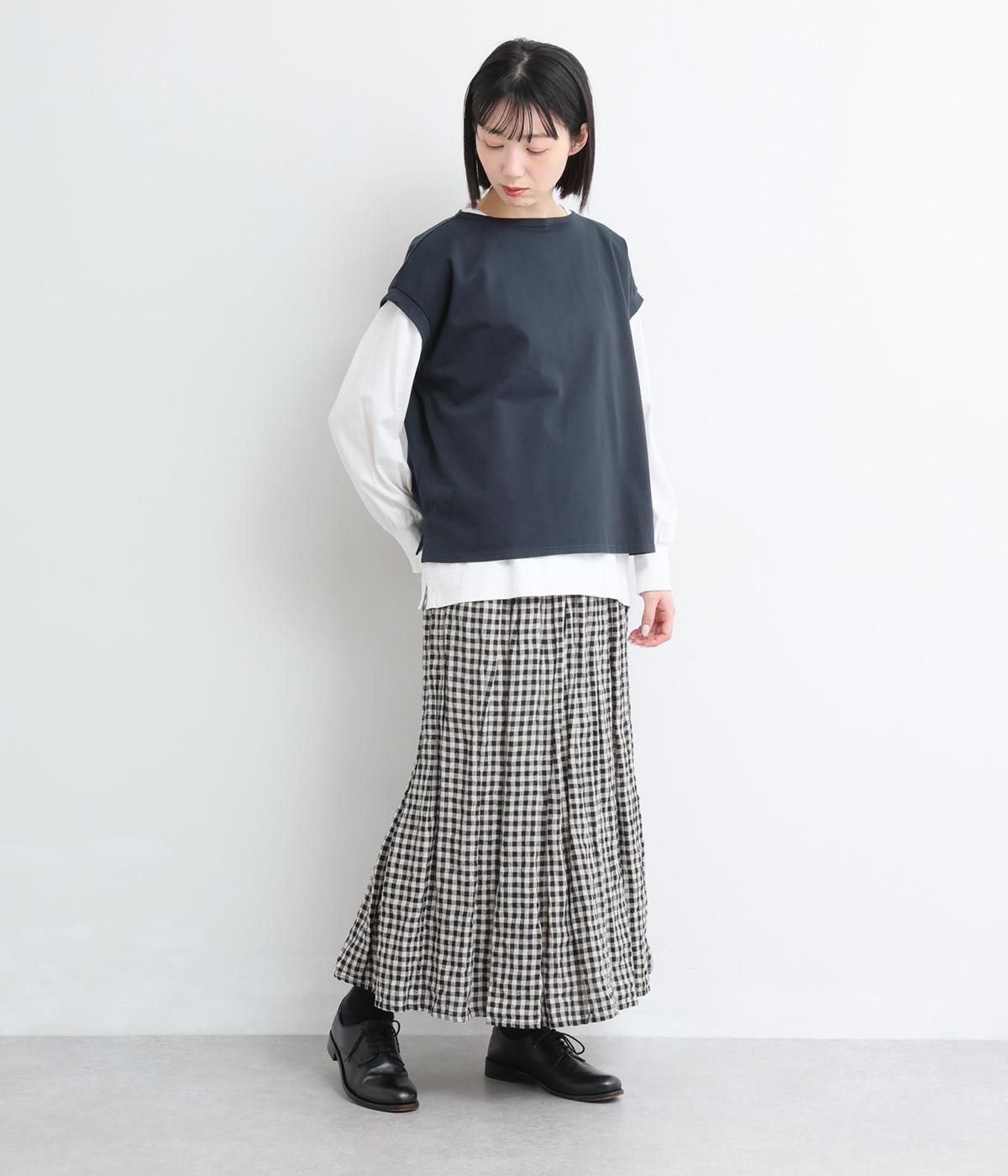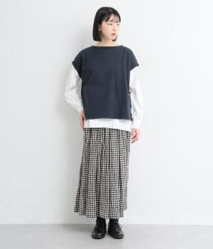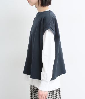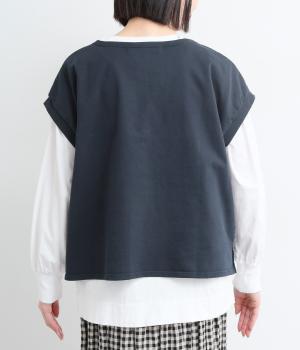女性らしいやわらかな印象を与えるフレンチスリーブのベストです。ほどよいハリのある生地でくったりし過ぎず、洒落感のある表情に。すっきりと見える丈感にもこだわり、パンツにもスカートにもなじむバランスに仕上げました。
