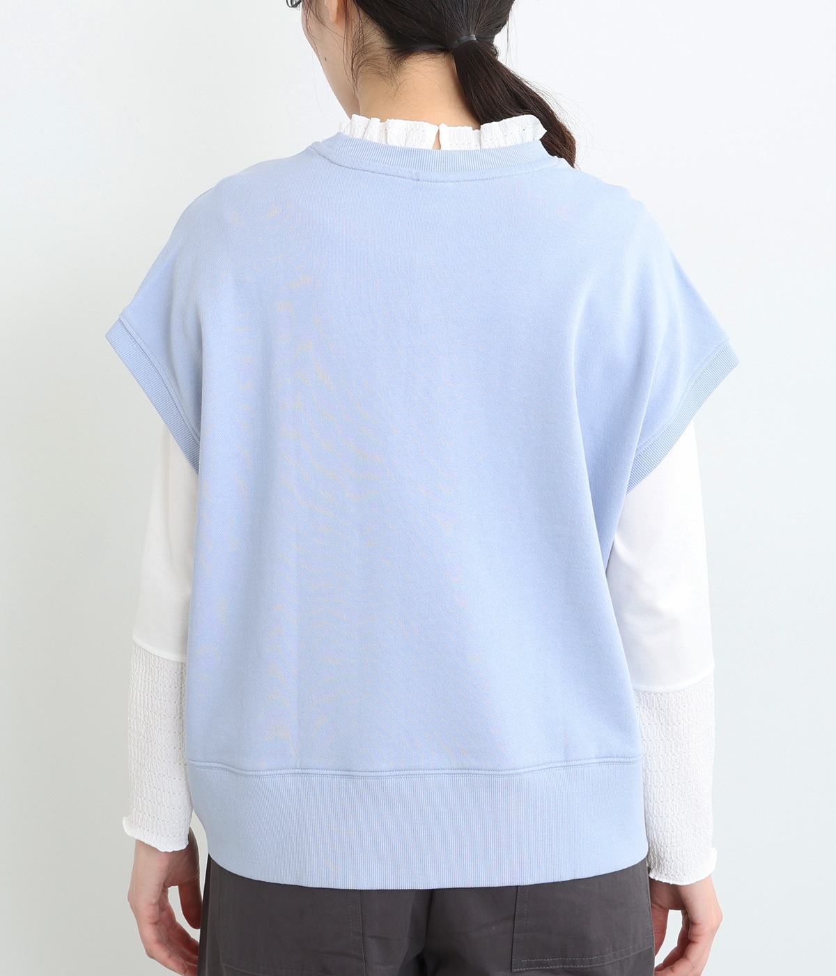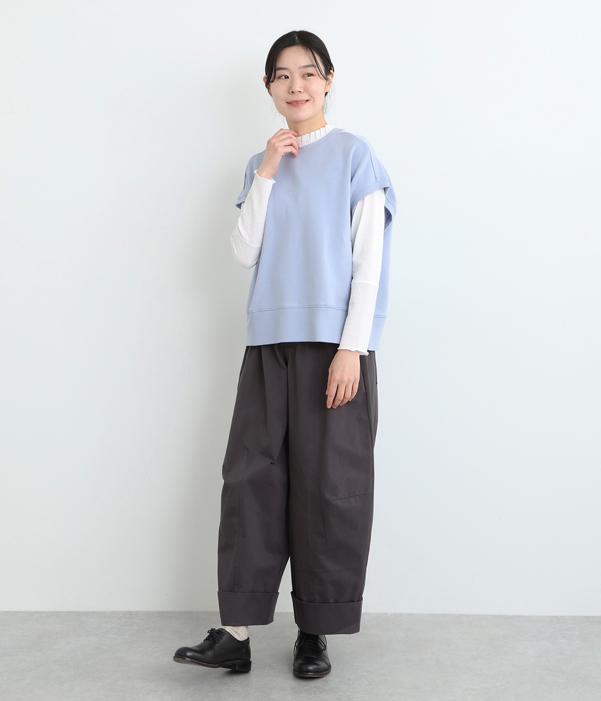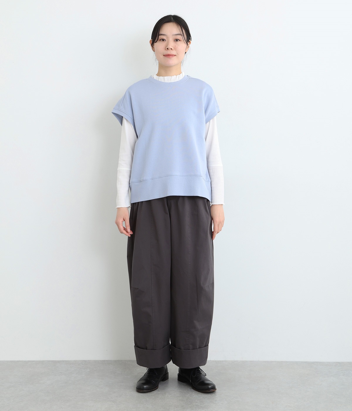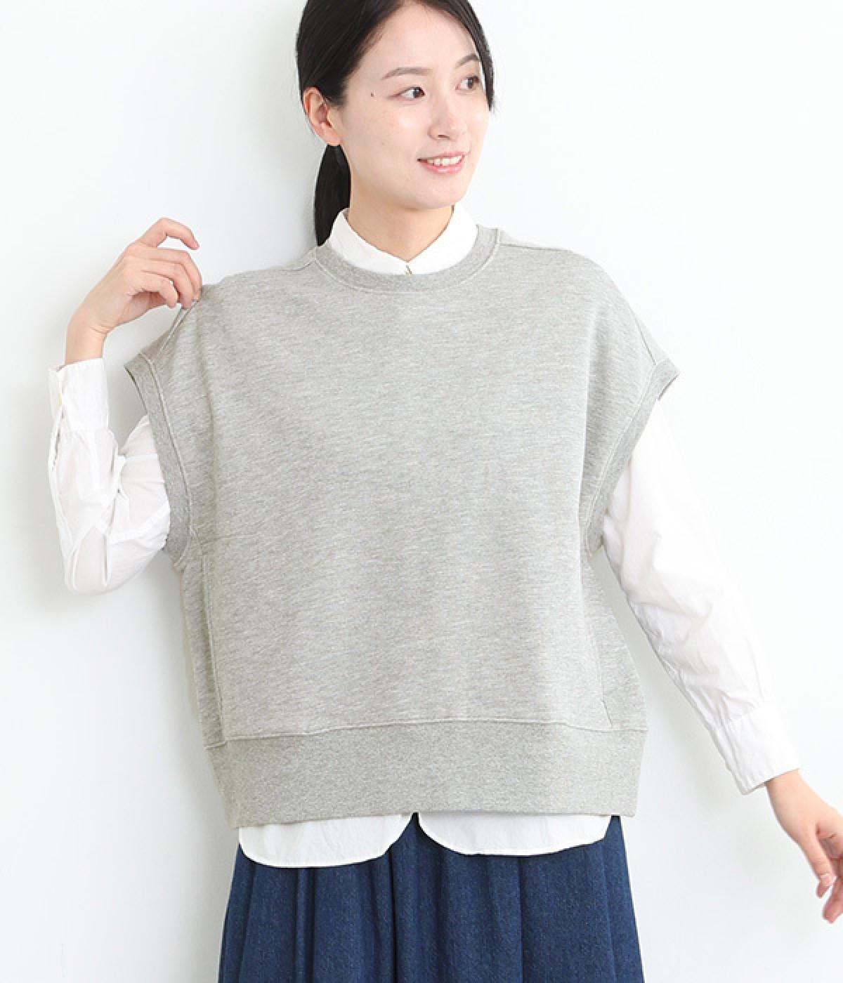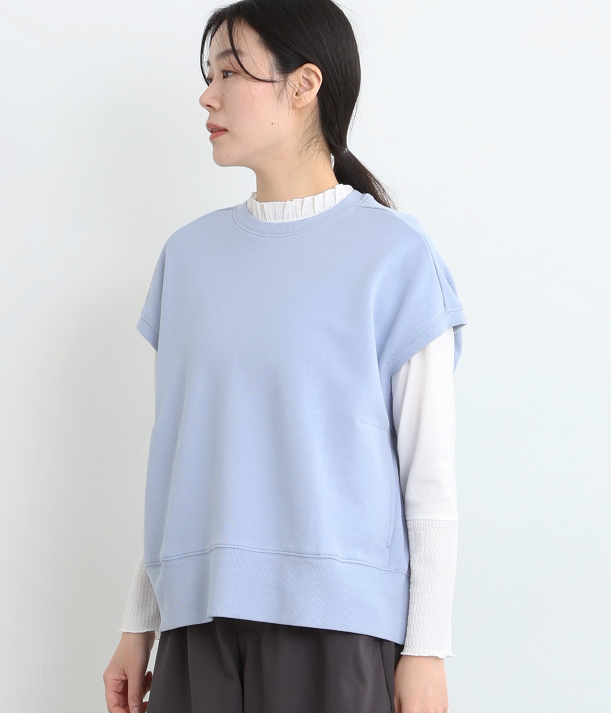 オールシーズン着まわせる、やわらかな質感の裏毛素材を使用しています。ブリーチ加工をほどこすことで、ヴィンテージのような風合いに仕立てているのも特徴です。