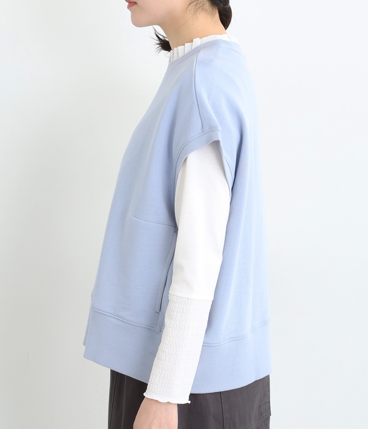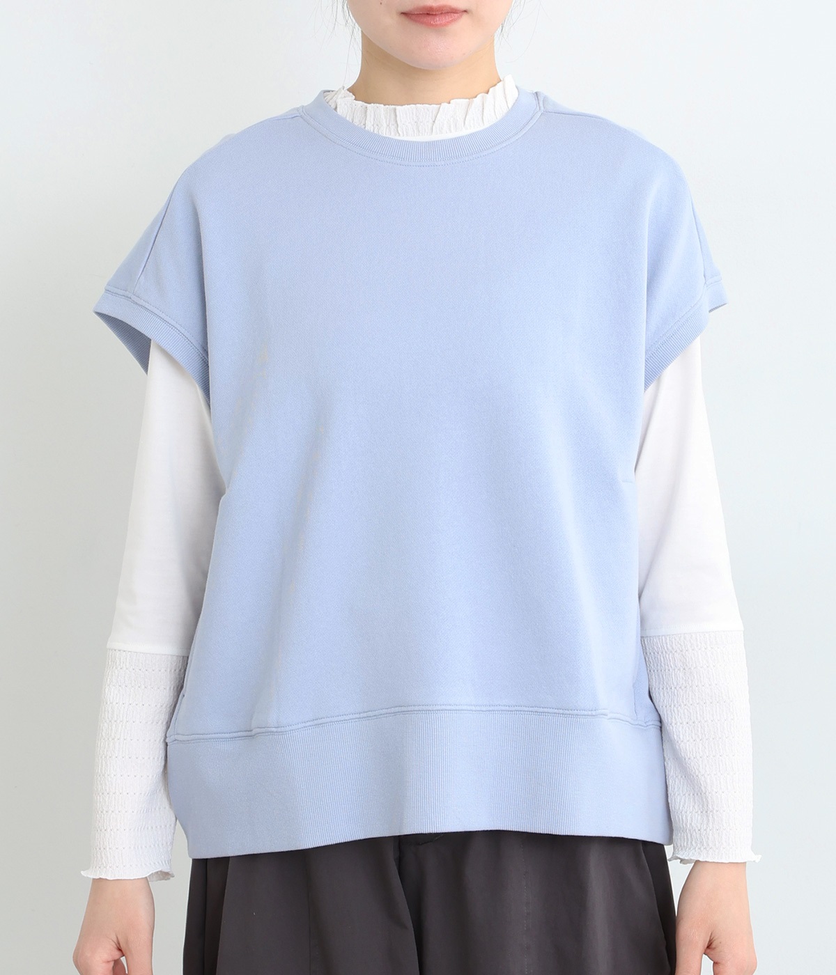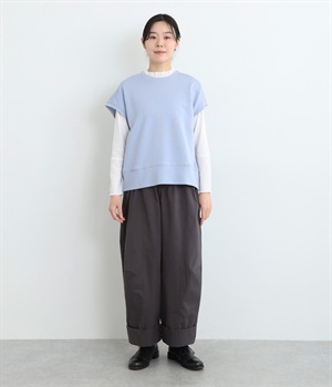 ゆったりとしたリラクシーなボックスシルエット。襟元と袖口、裾をリブで切り替えてアクセントを加えています。スカート、パンツともに合わせやすくいつものスタイリングを新鮮に仕上げてくれる一枚です。