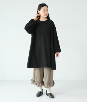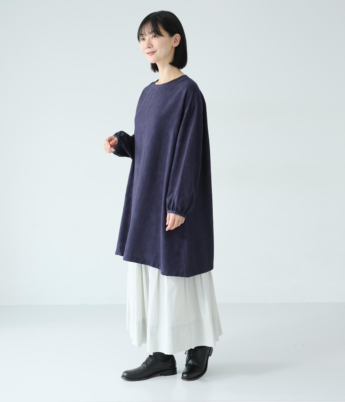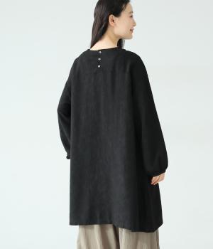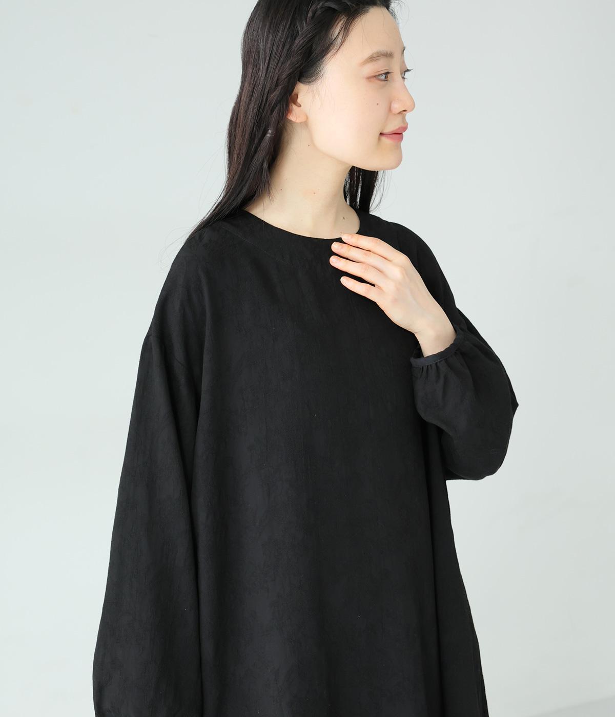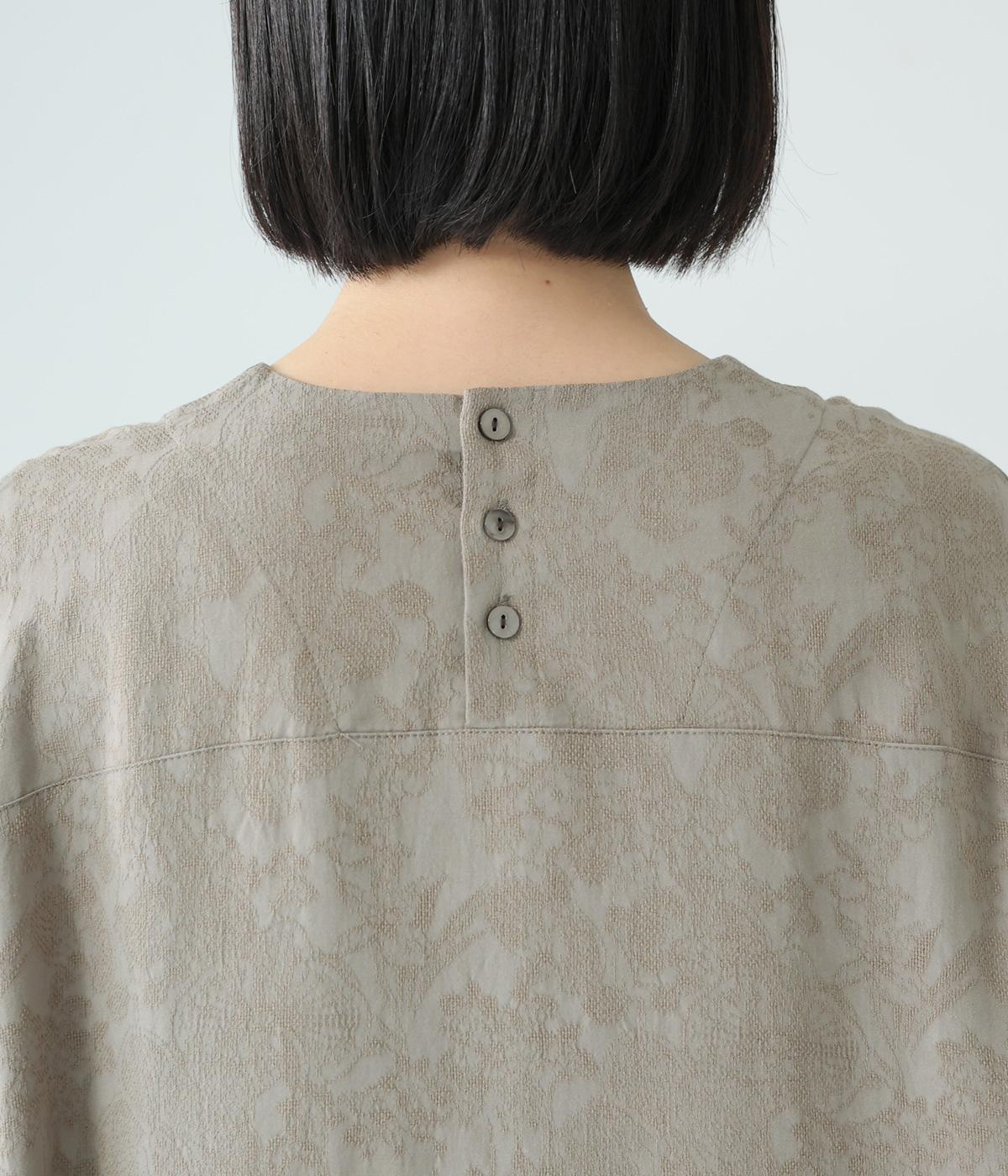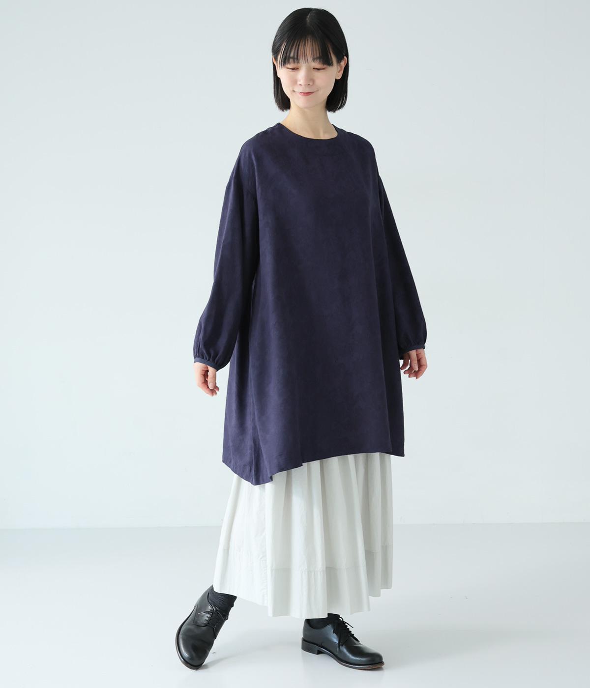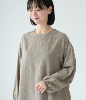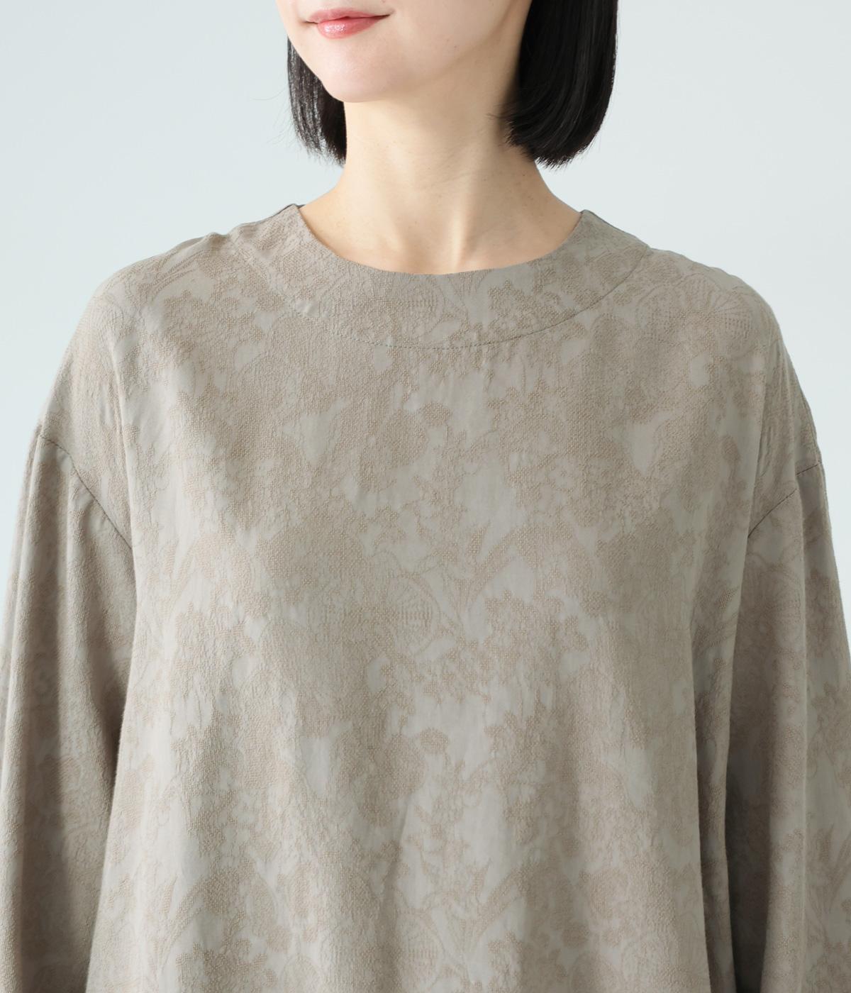 シンプルな型が、表情豊かな生地を引き立てます。たっぷりの生地がつくるドレープが優雅な雰囲気を後押しし、パイピングで仕立てた袖口がカジュアルなアクセントに。幅広いスタイリングになじむ一枚です。