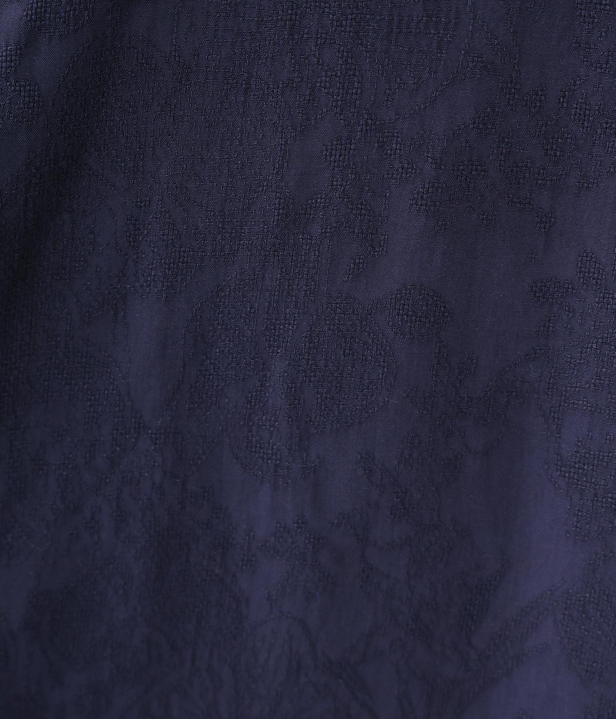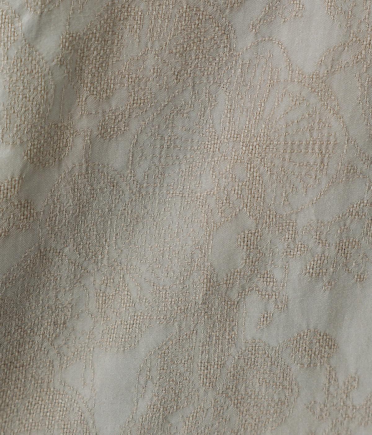 やや薄手で軽やかな混紡生地に、刺しゅう風に表現した花柄を織り込みました。しなやかな落ち感が陰影を生み、ジャカードならではの立体感と相まって、奥行きのある表情に仕上げています。
