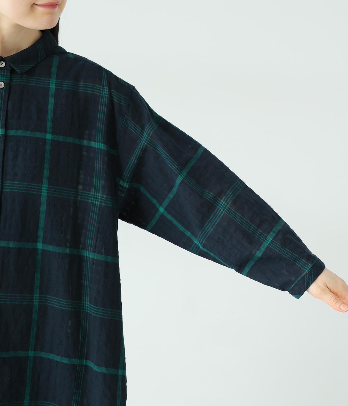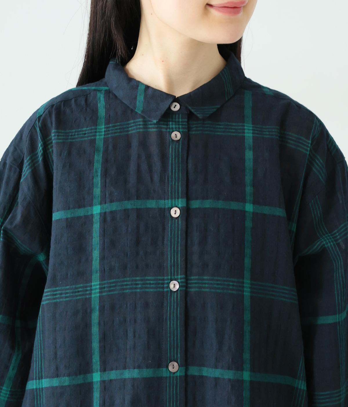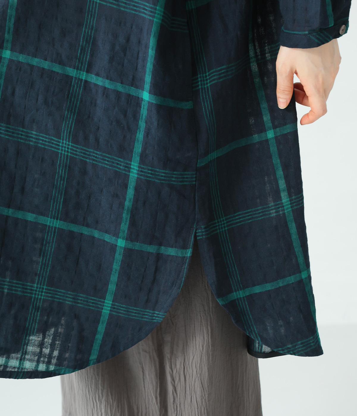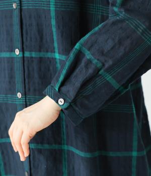 ドライタッチで清涼感のあるコットンリネン。かたさが軽減された、ふっくらとやわらかな肌ざわりです。シボ感のあるナチュラルな風合いがチェック柄に奥行きをもたらします。